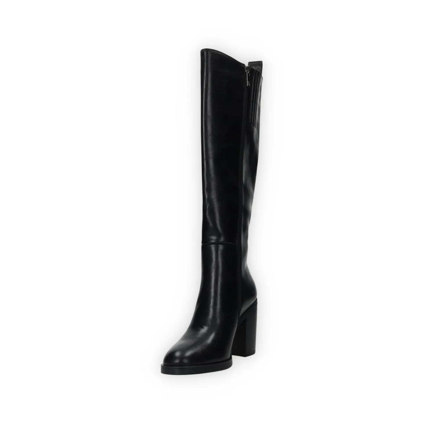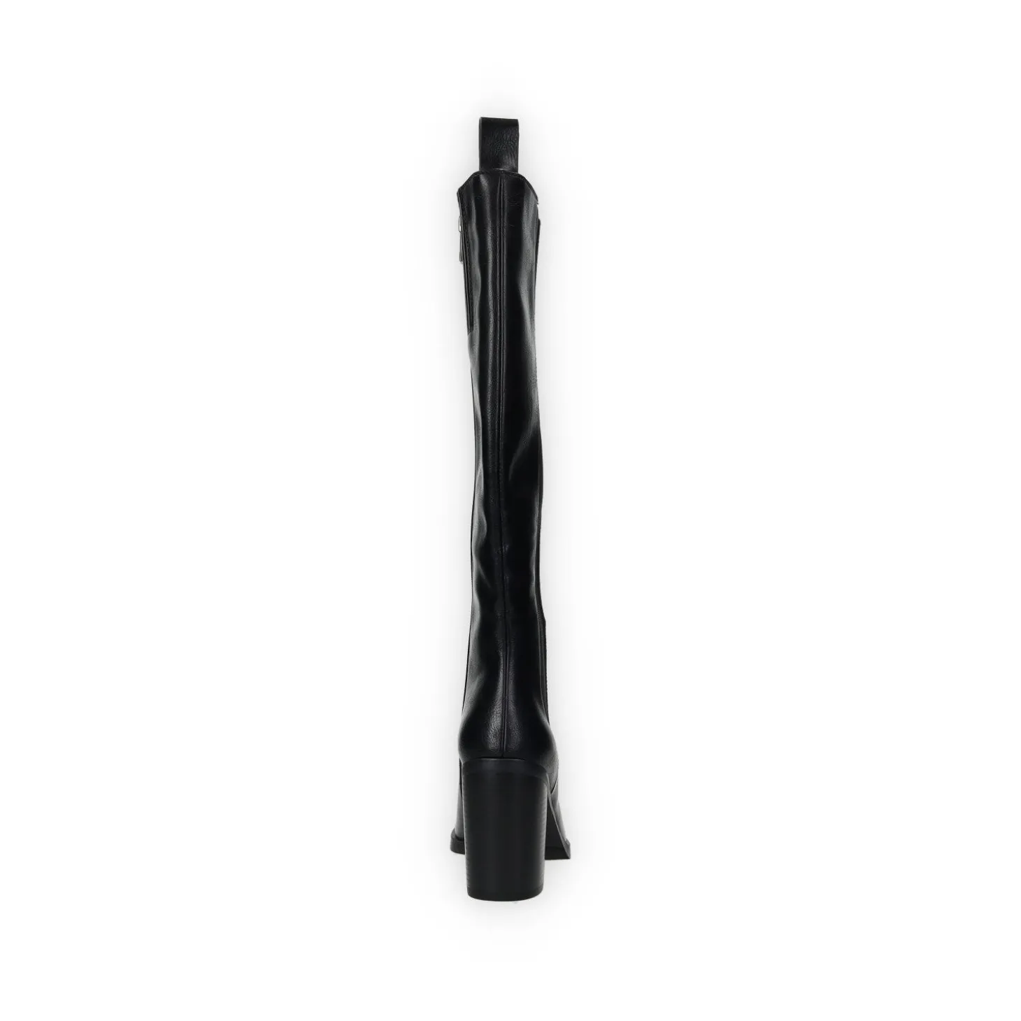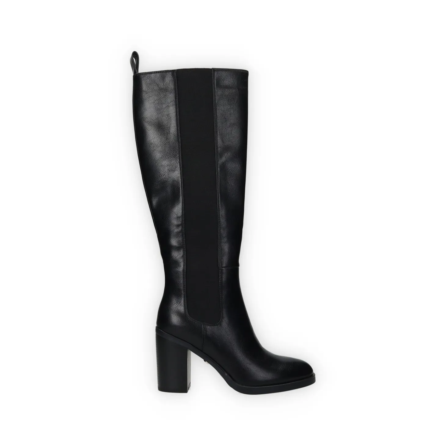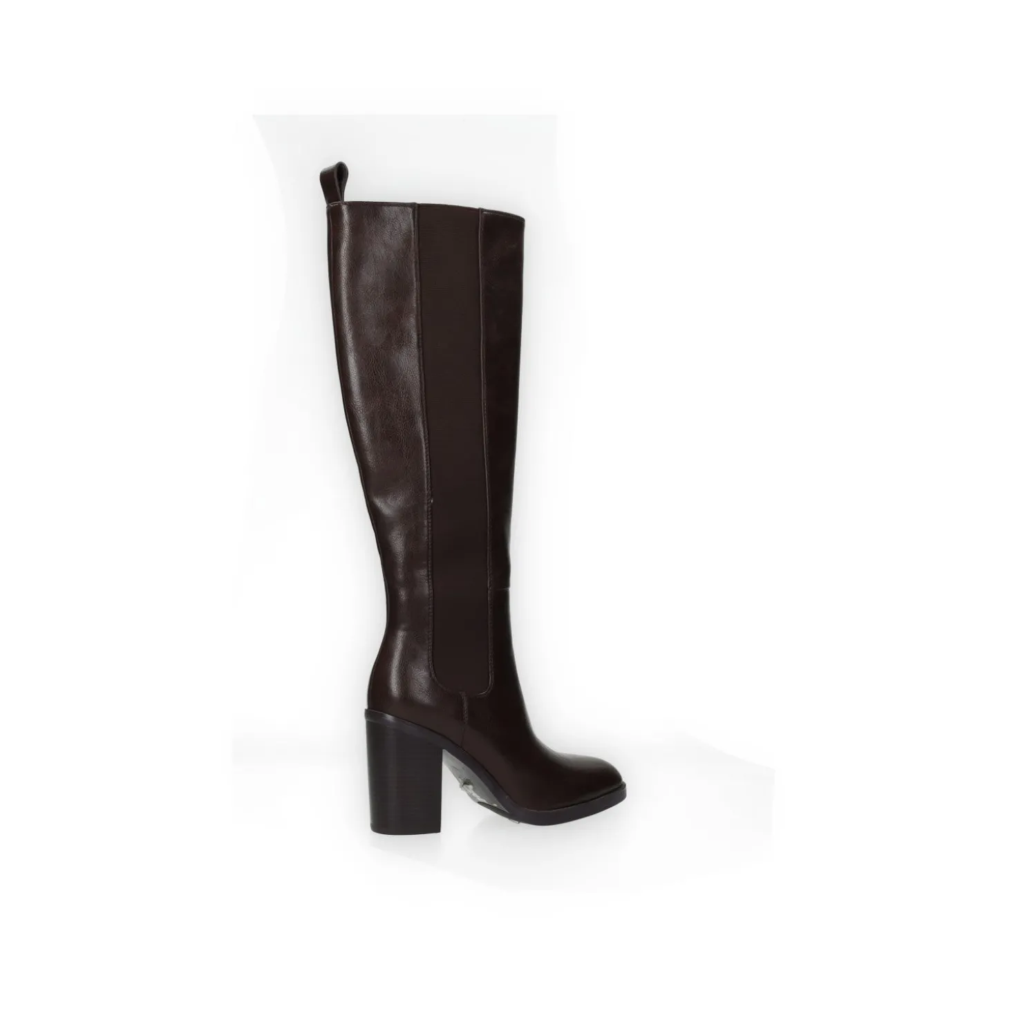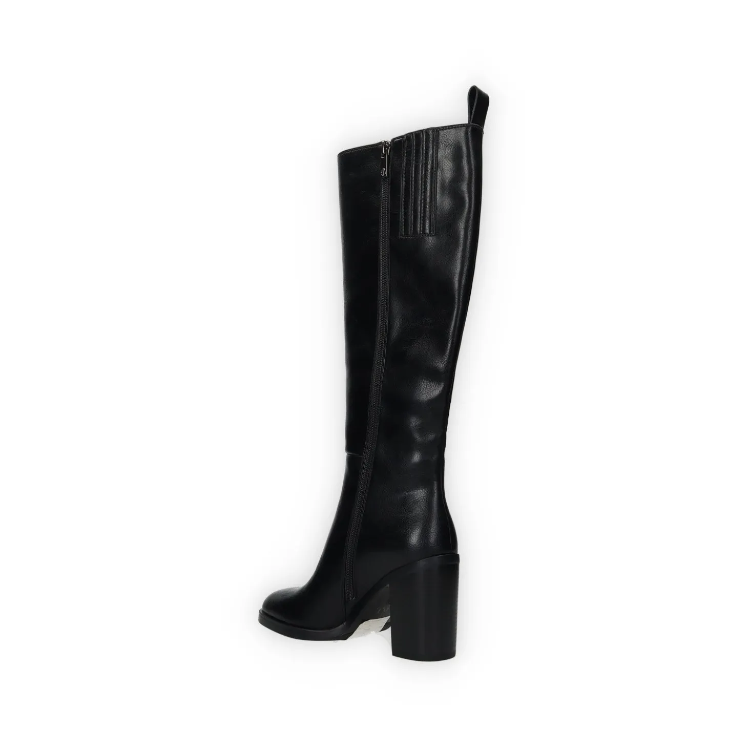 Stivali in ecopelle con tacco alto 6 cm. tirante sul retro e fasce elasticizzate laterali