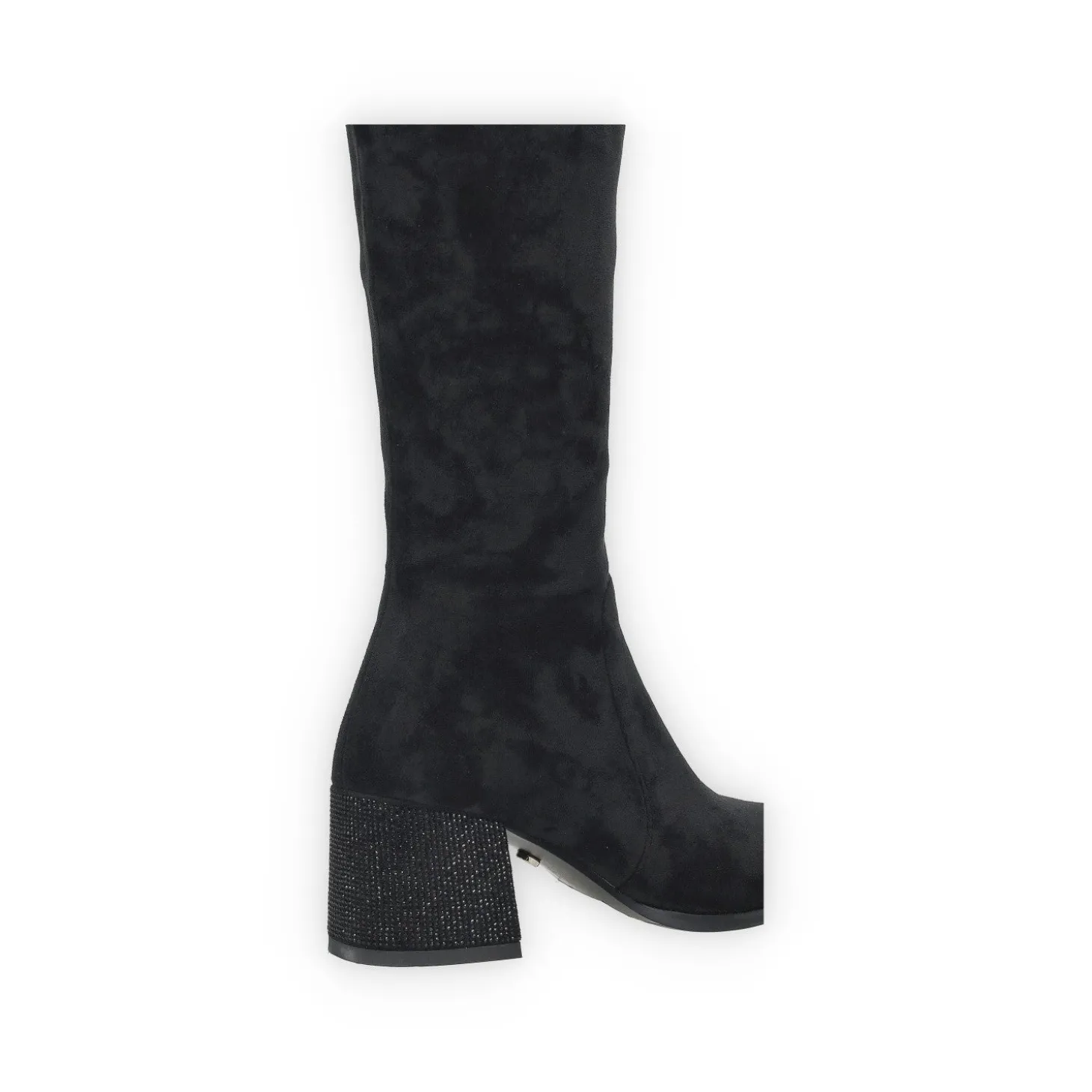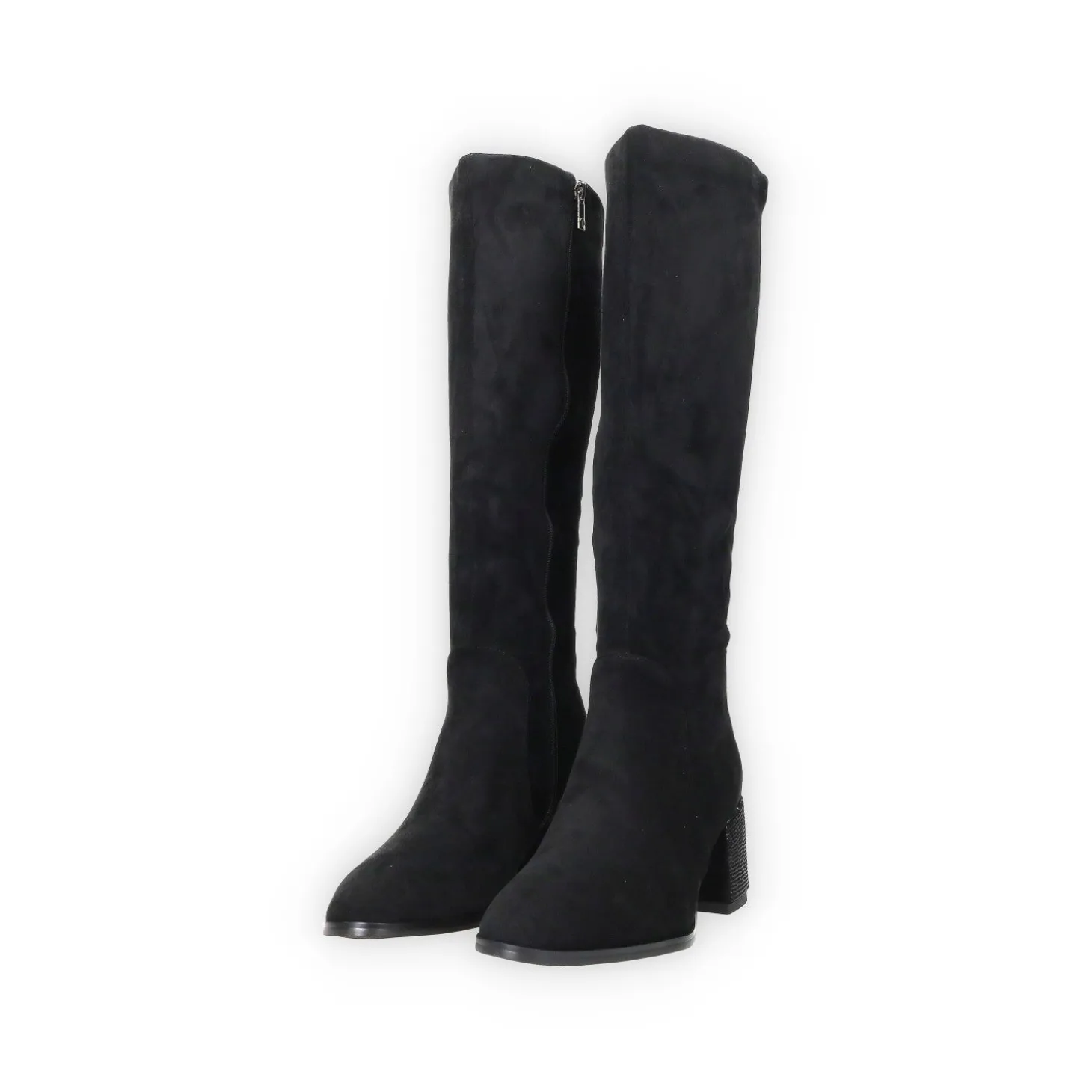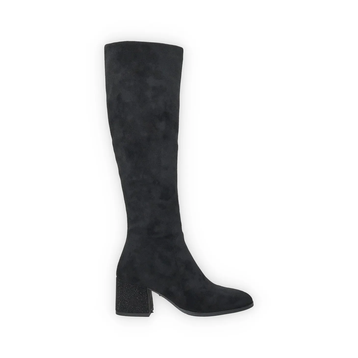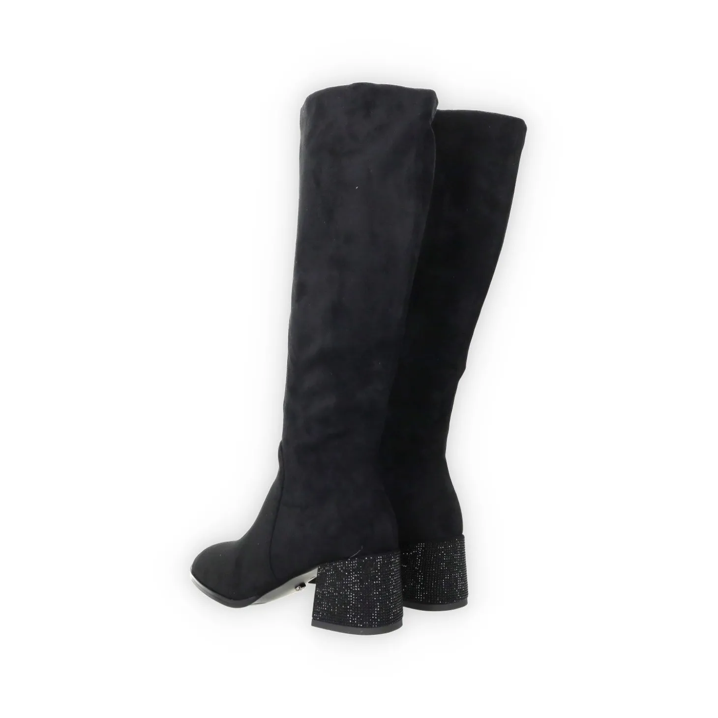 Stivali alti in microfibra con tacco alto 6 cm e strass.