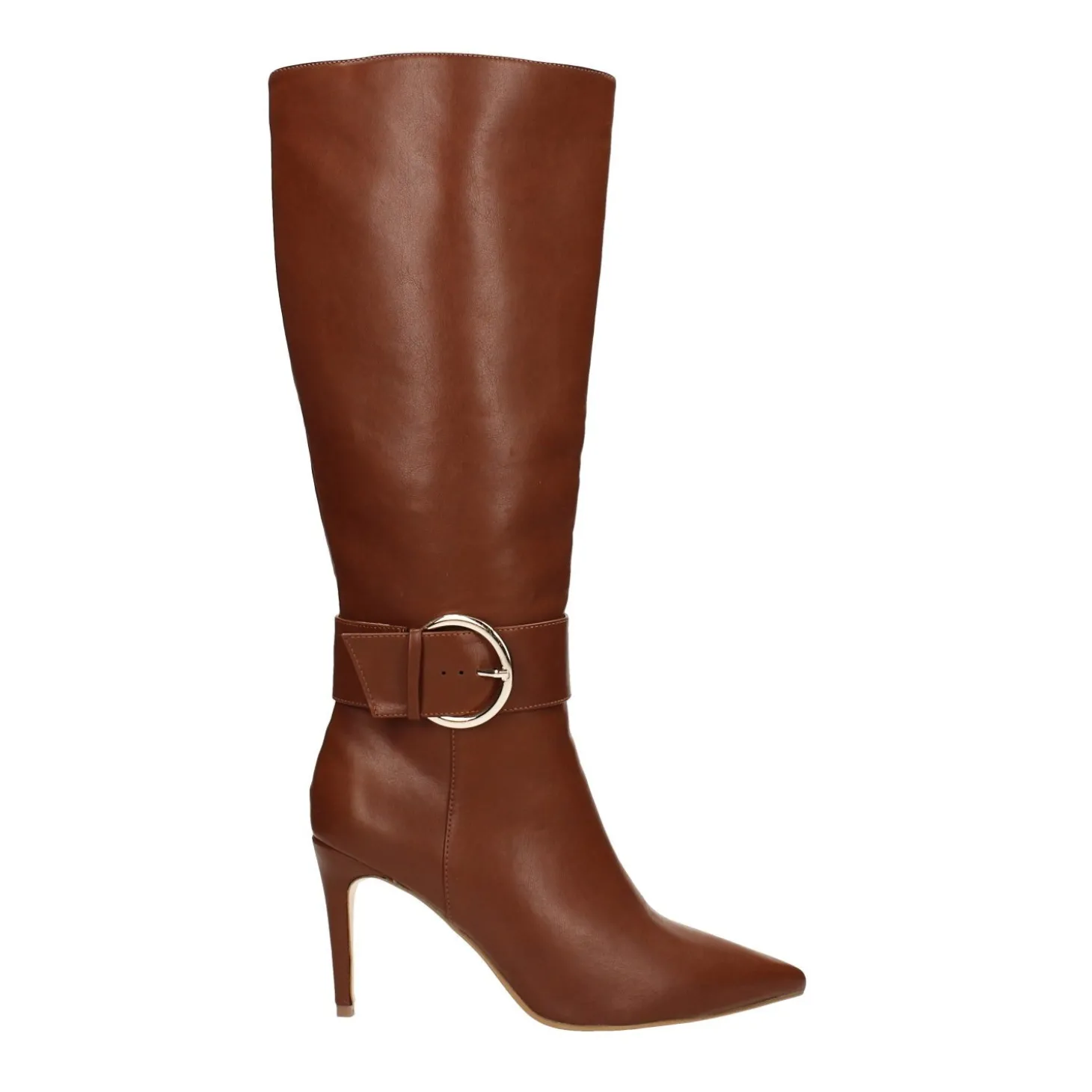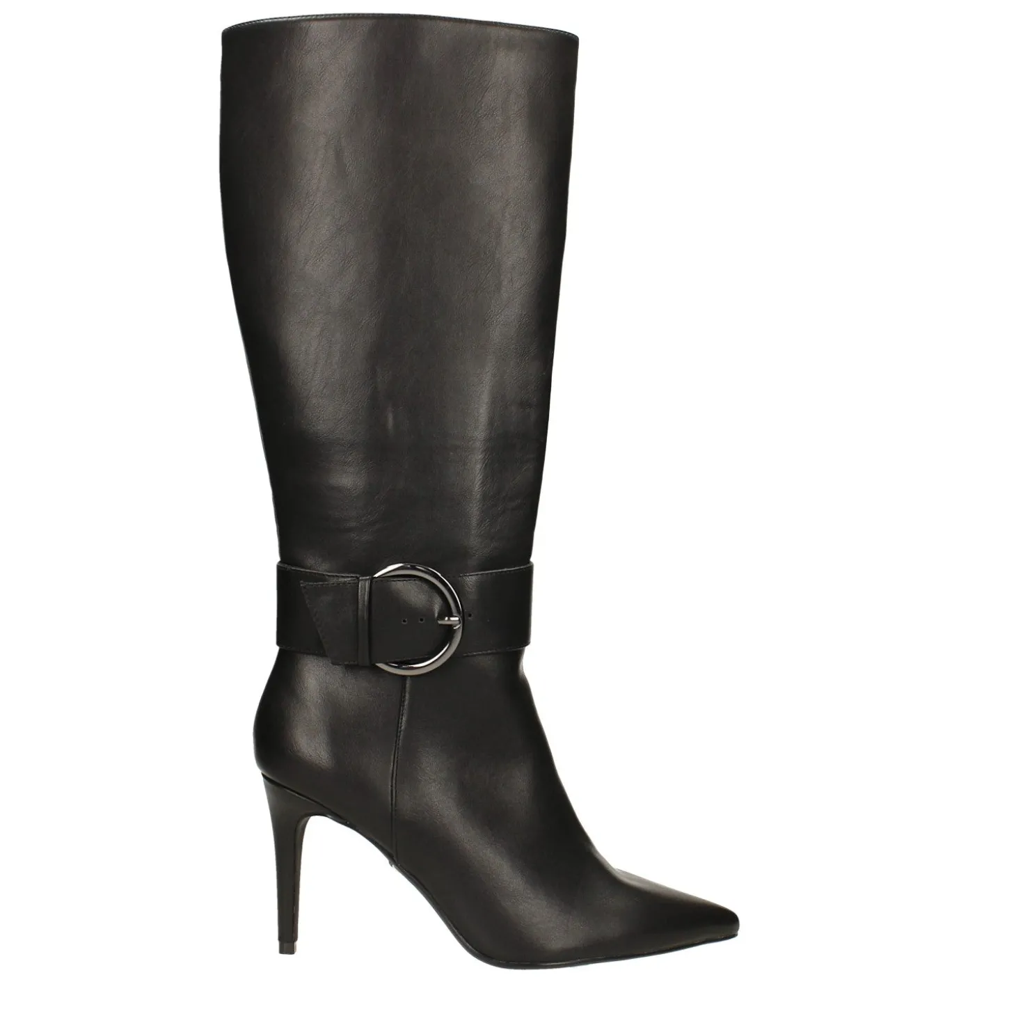 Stivali a punta con fibbia.Zip laterale interna.Sottopiede in vera pelle.Altezza gambale:39cmCirconferenza gambale:43cmAltezza tacco: 9cm