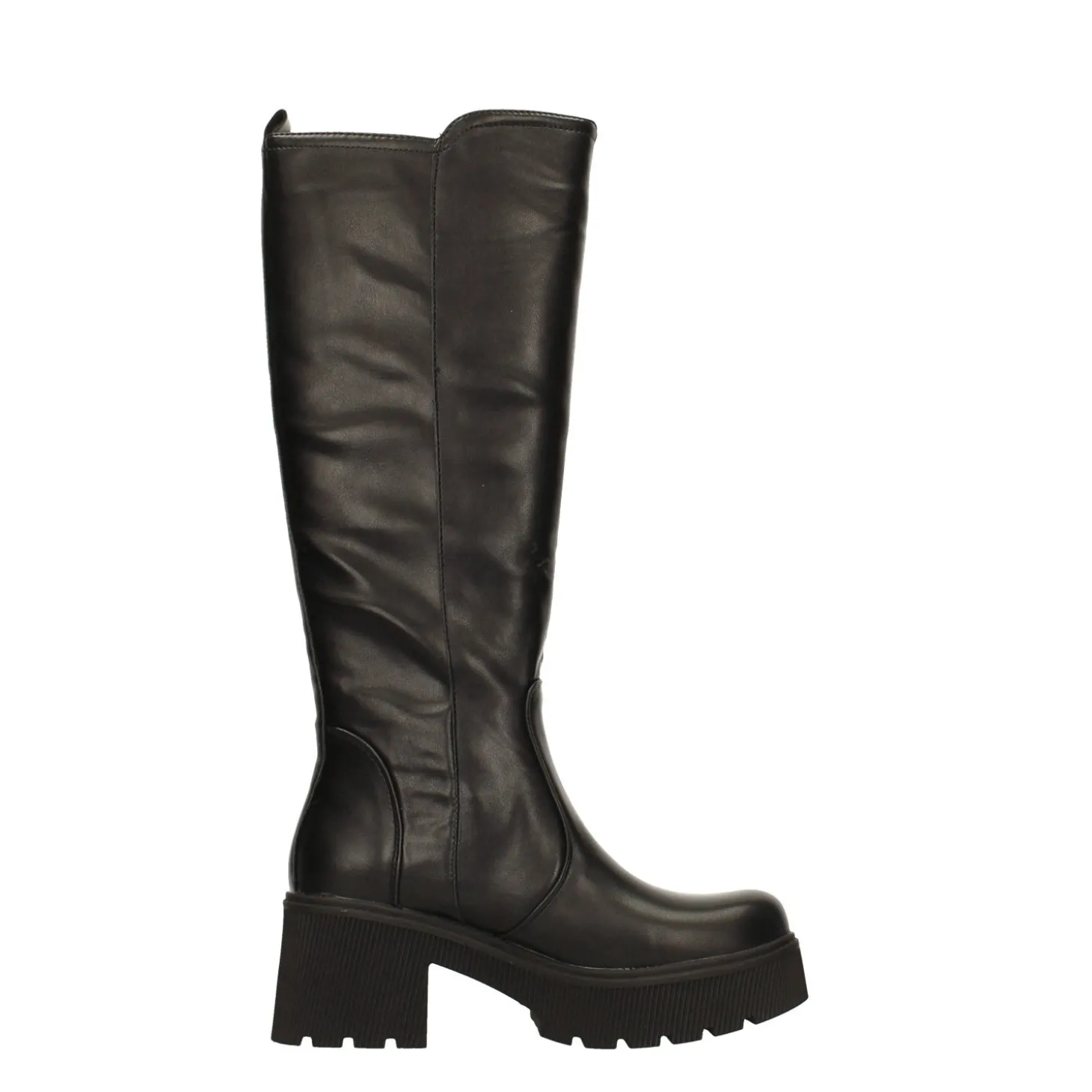 Stivali. Zip laterale esternaSuola platform in gommaAltezza gambale: 38cmCirconferenza gambale: 36cmAltezza tacco: 6cmAltezza plateau: 2.5cm