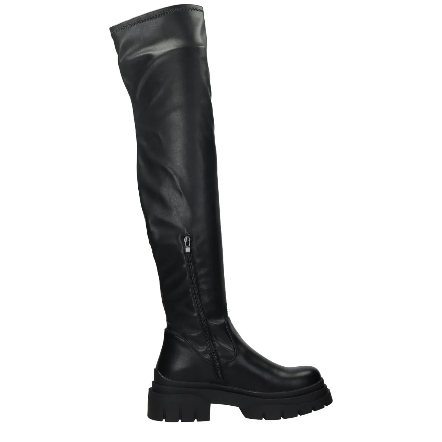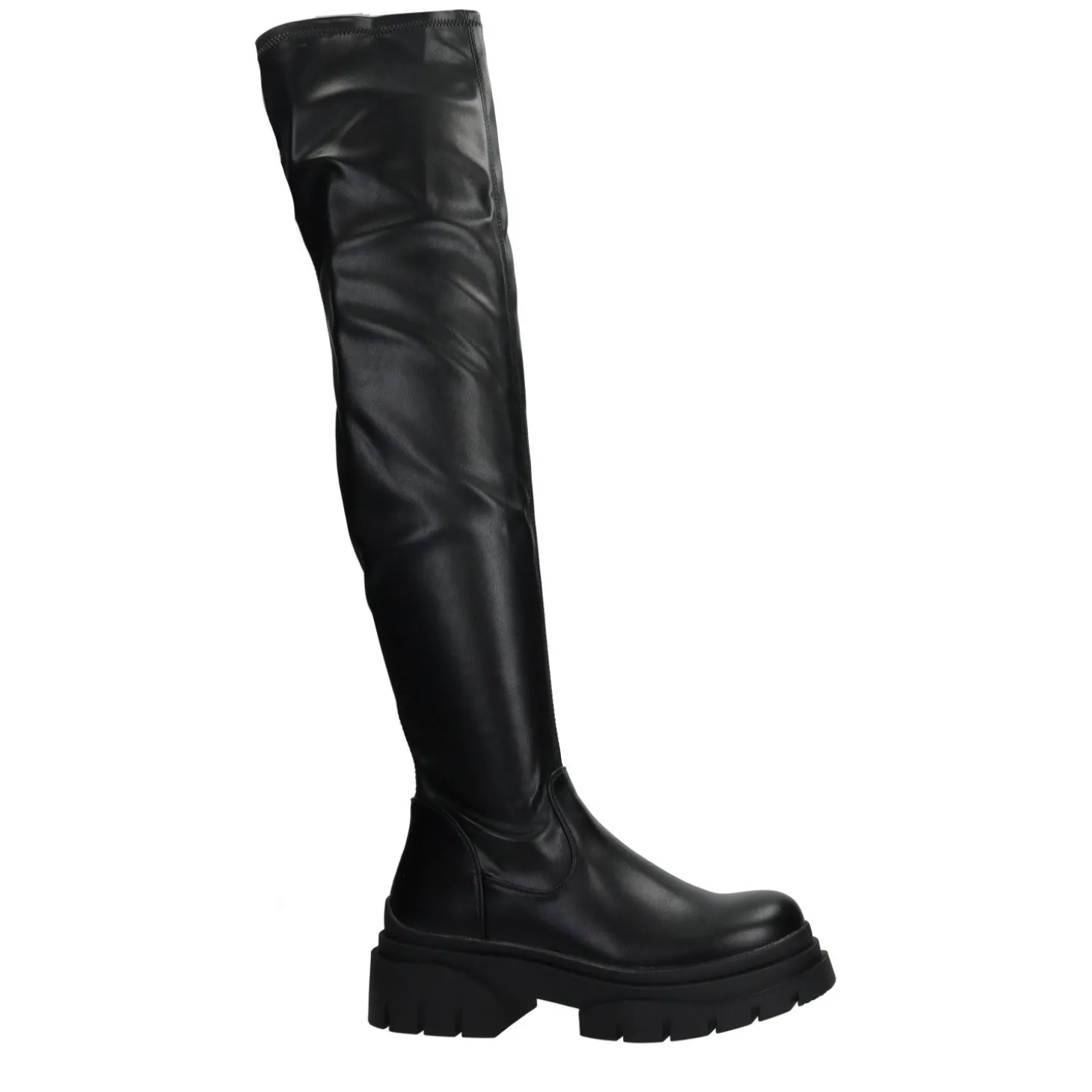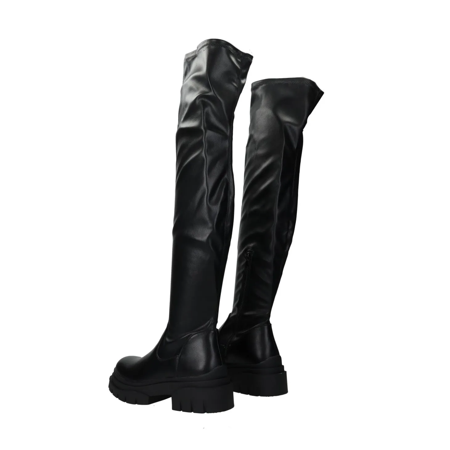 Stivali cuissardes con suole in gomma e una tomaia con finitura lucida.Chiusura con cerniera.Altezza gambale: 60mCirconferenza gambale: 30cmAltezza tacco: 5cmAltezza plateau: 3cm