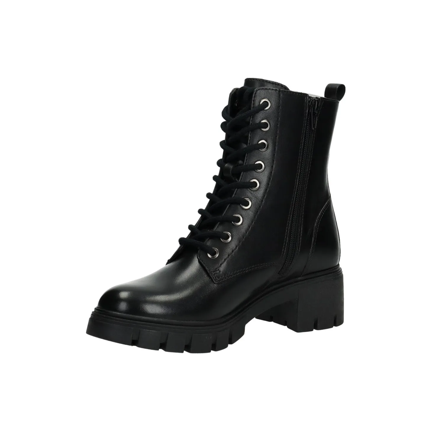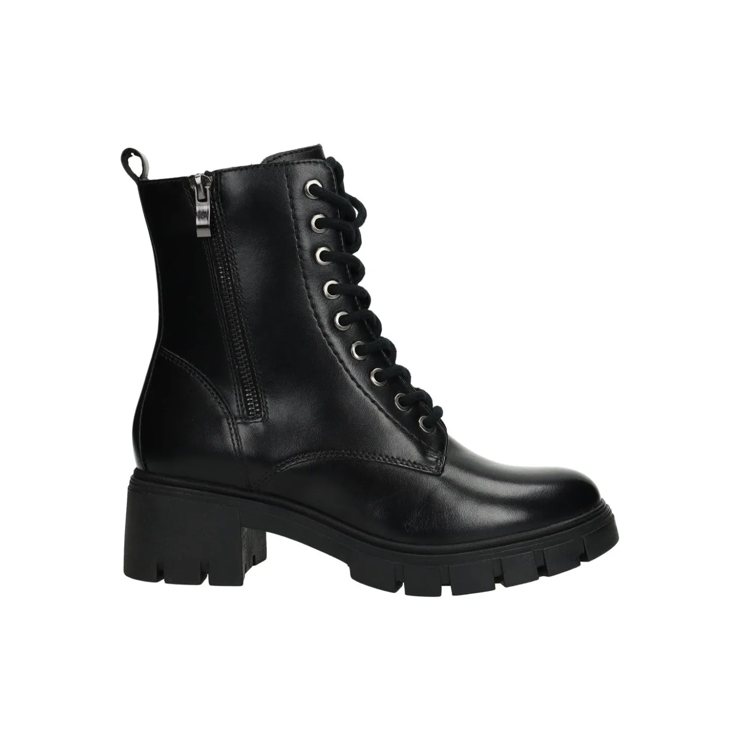 Anfibi in vera pelle con tacco medio di 5 cm