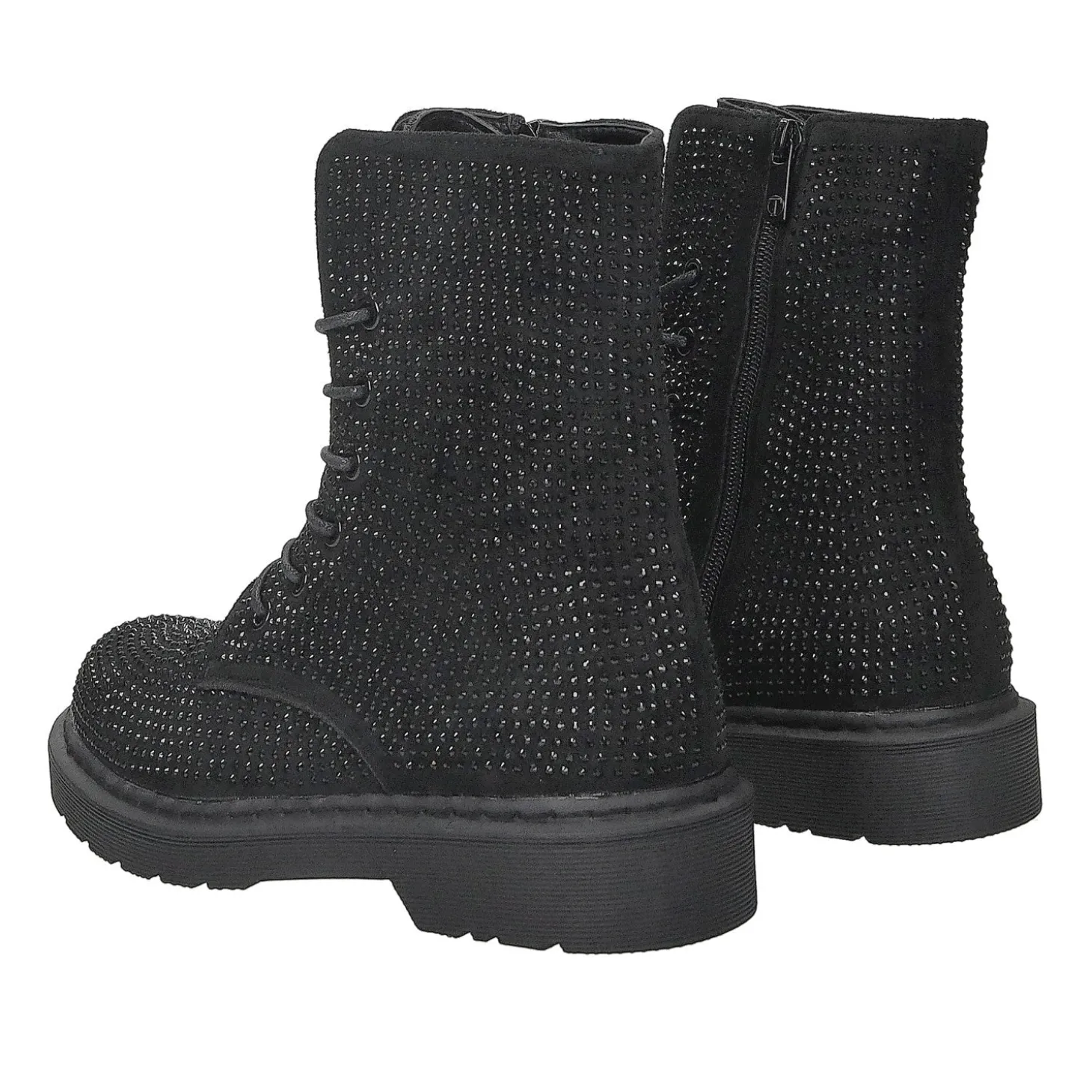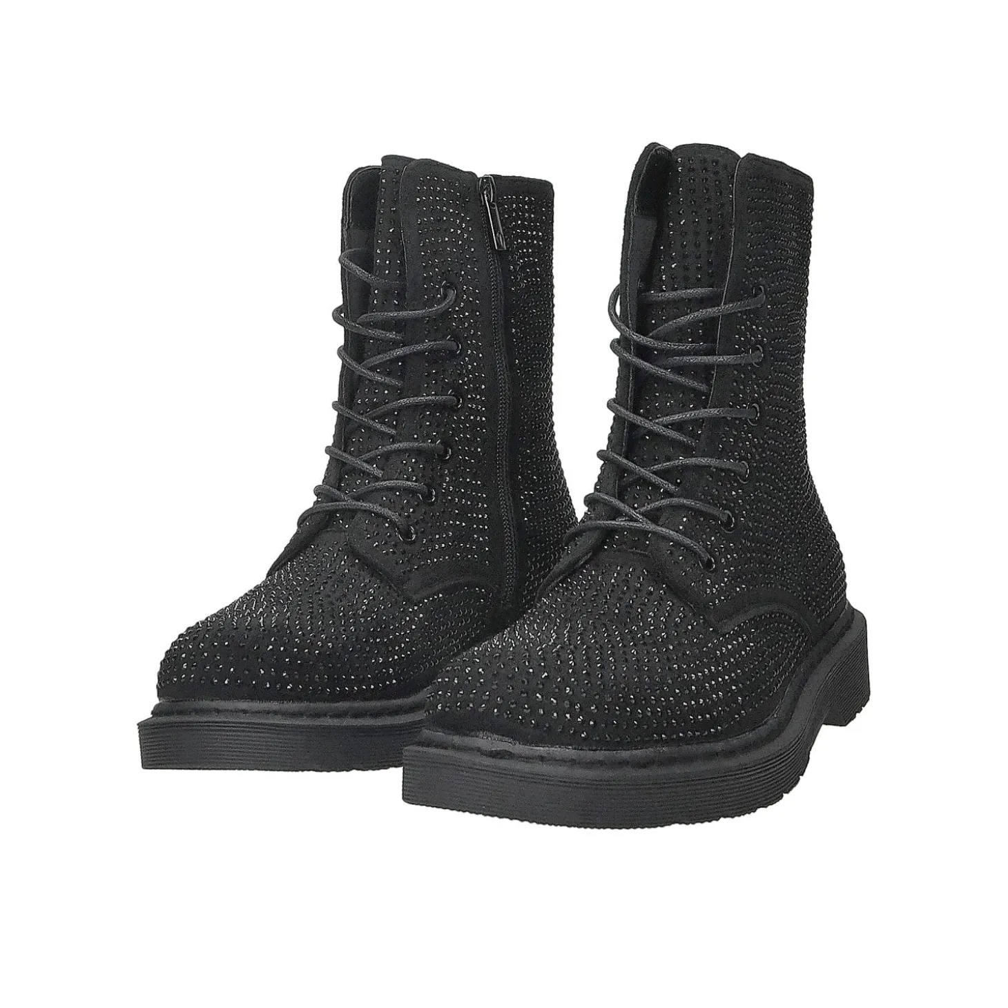 Per un look invernale mozzafiato.Stivaletti con chiusura stringata e ricoperti da strass.Dal fascino contemporaneo. è perfetto con un outfit trendy da città.Altezza gambale: 15mCirconferenza gambale: 27cmAltezza tacco: 3cmAltezza plateau: 2cm