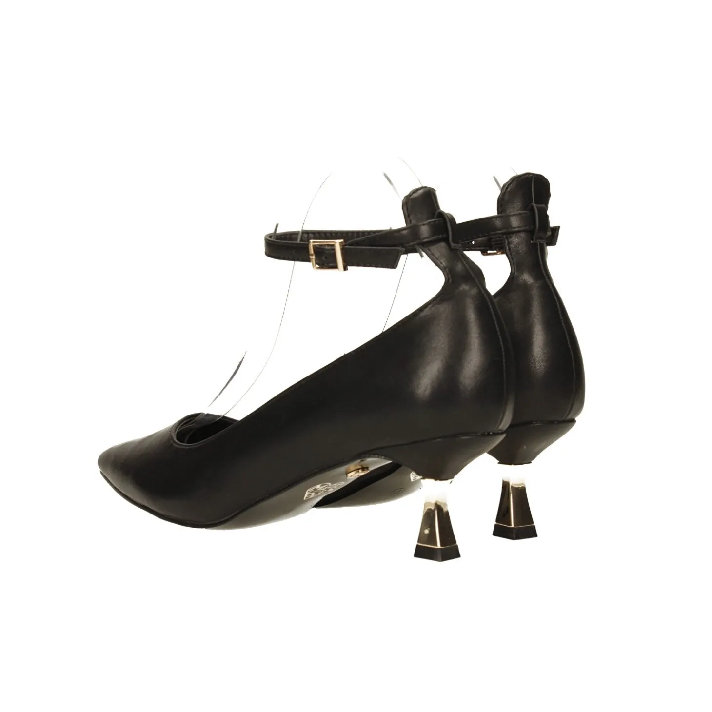 Décolleté a punta con scollo tondo e cinturino alla caviglia.Tacco dorato specchiato alto 6cm