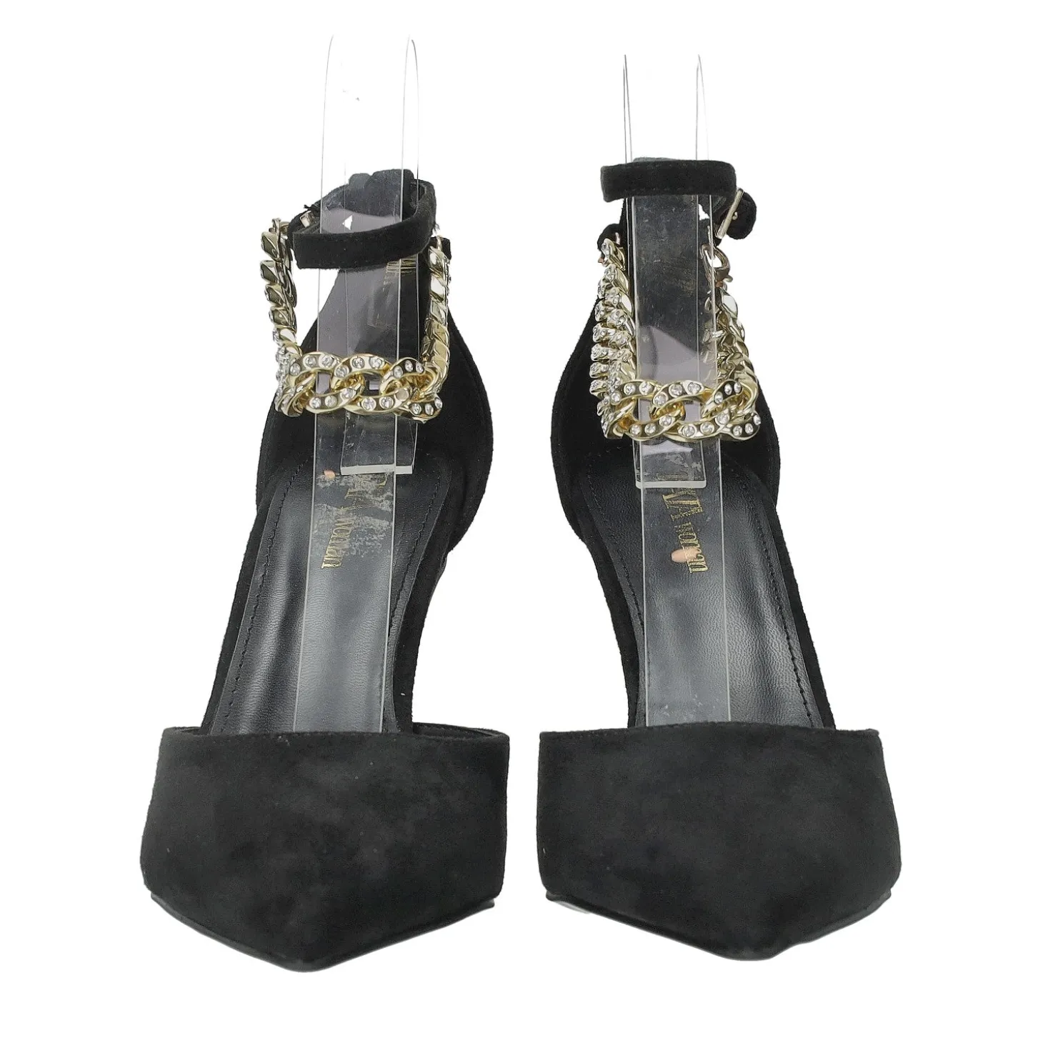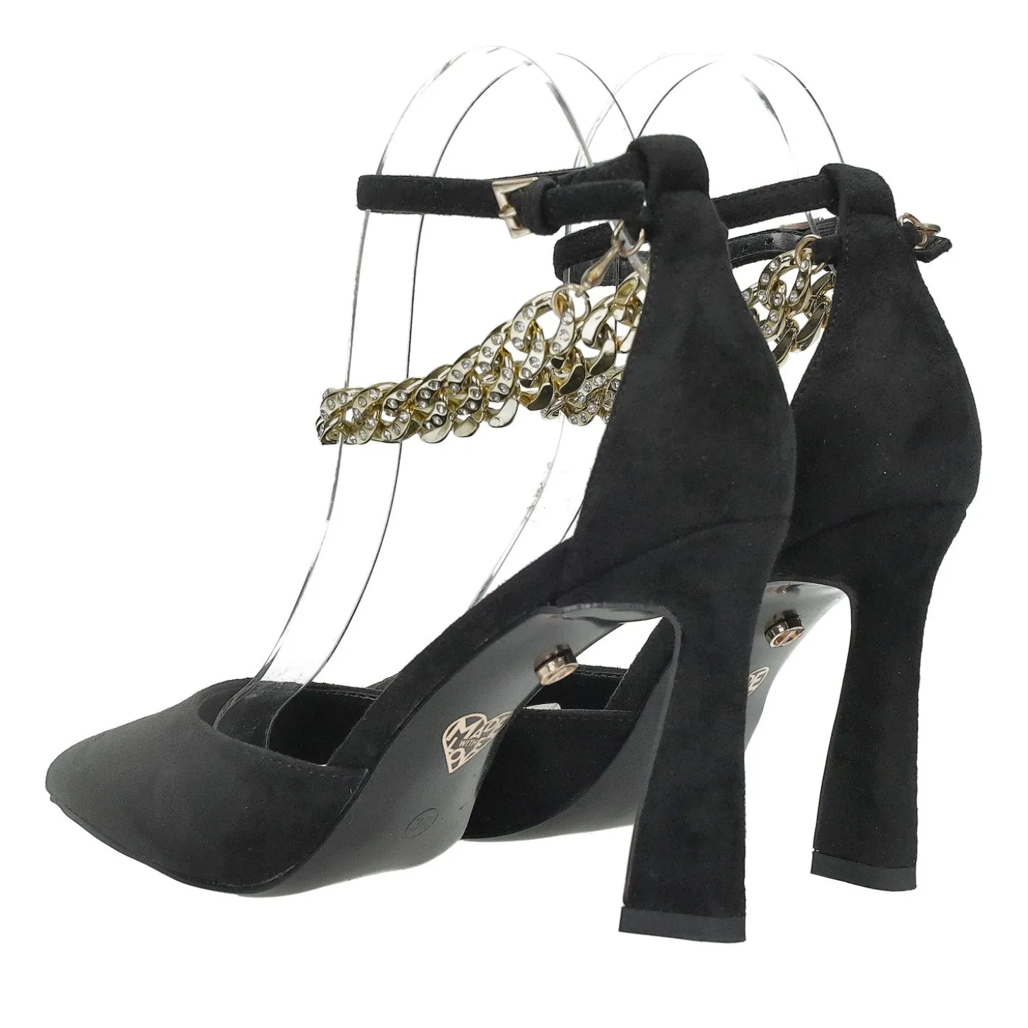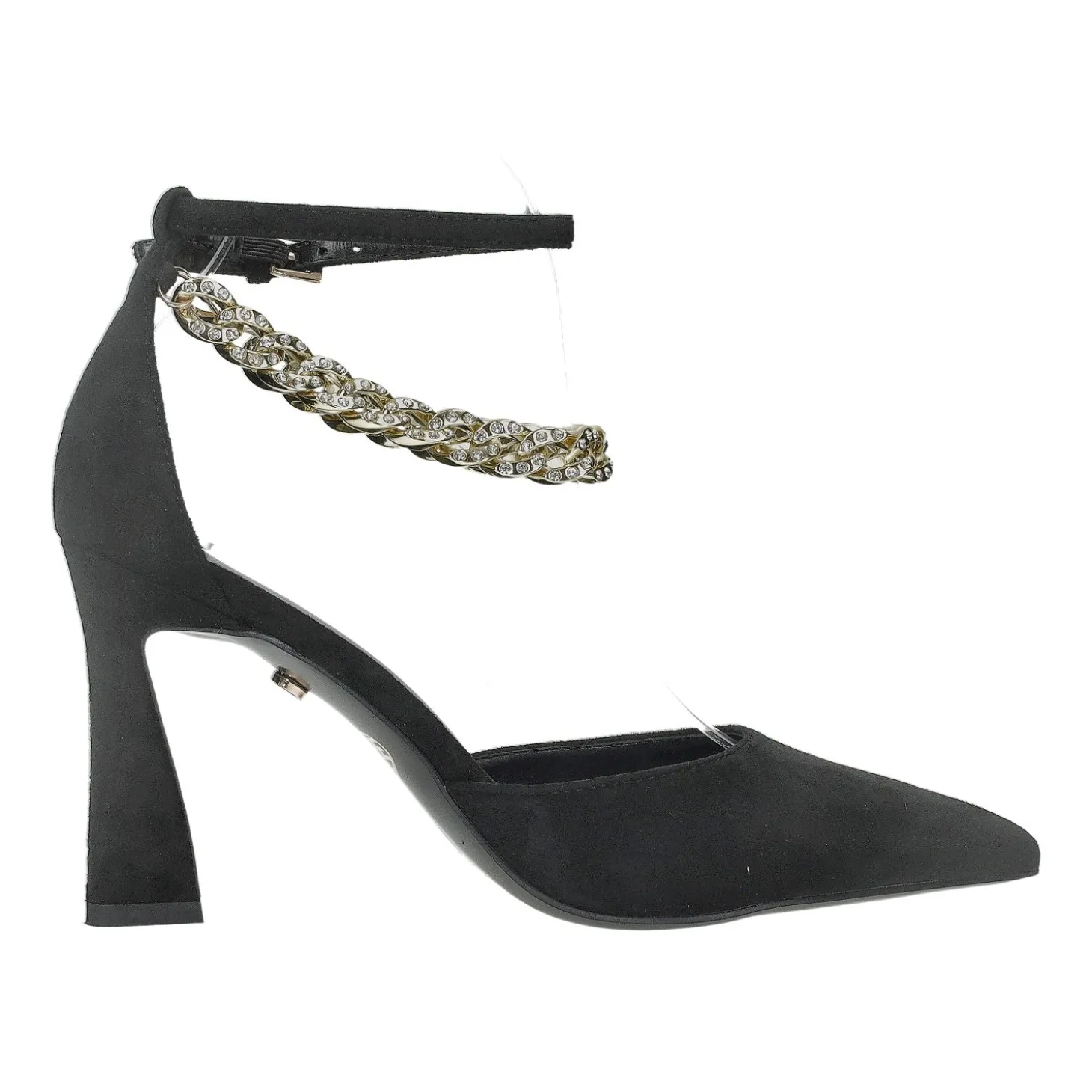 Le décolleté sono un’aggiunta che non può mancare nella vostra collezione di scarpe. Il modello è presentato con tacco comodo a rocchetto. Doppio cinturino con catena intrecciata impreziosita di strass.Altezza tacco: 9cm
