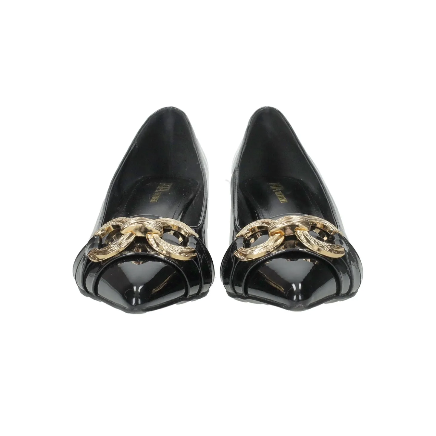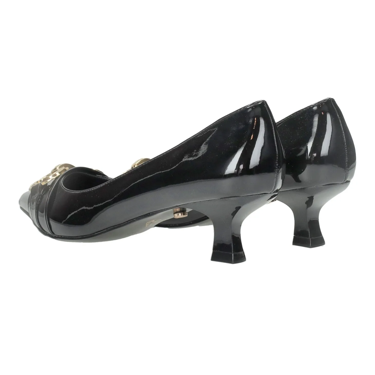 Gli inconfondibili tacchi scultorei riuniscono il meglio di due mondi: glamour e comfort .Il modello è presentato con tacco comodo a rocchetto. Dettaglio morsetto sulla parte frontale.Altezza tacco: 5.5 cm