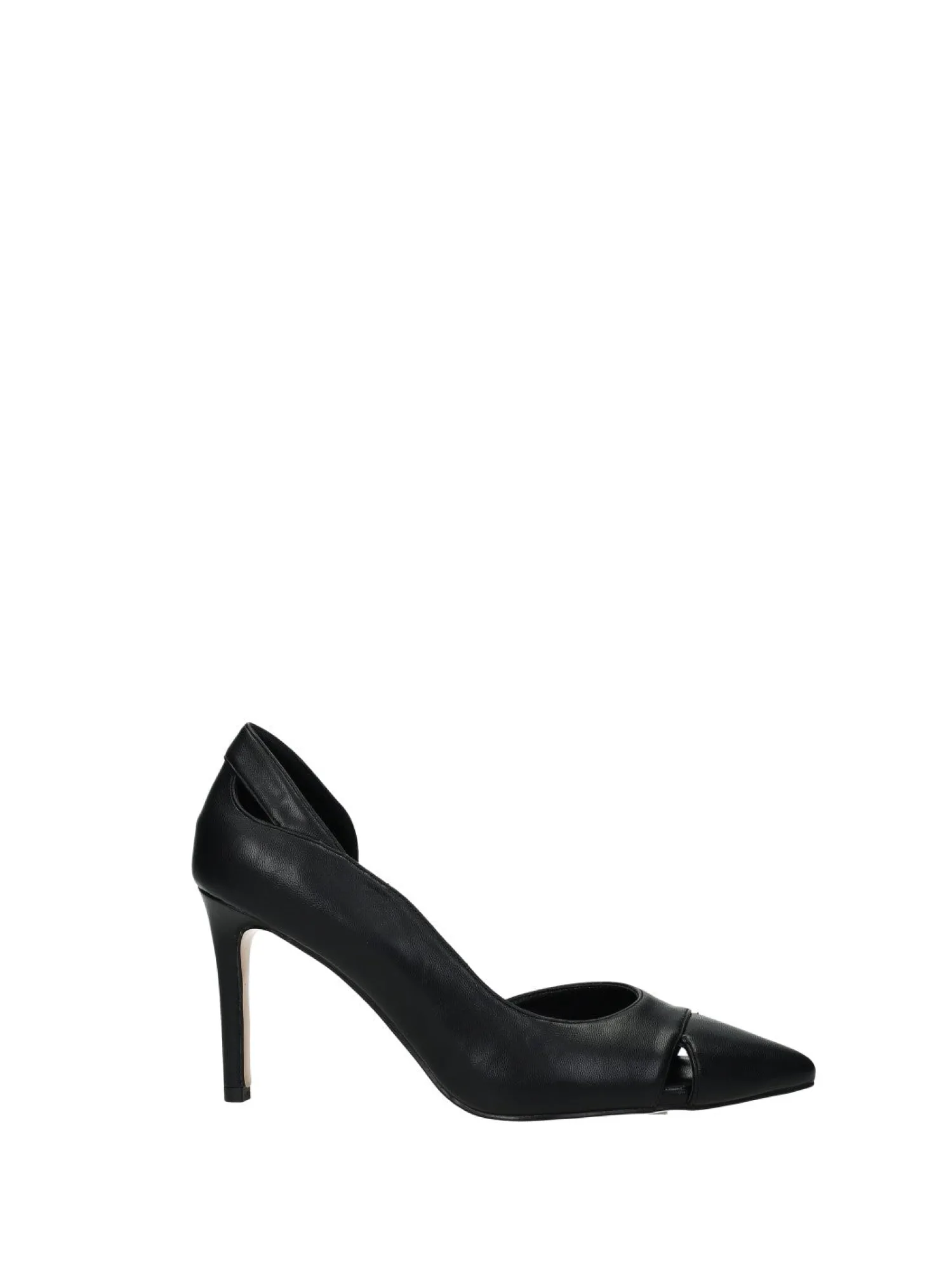 Décolleté effetto pelle con punta a contrasto e tacco di 8 cm.