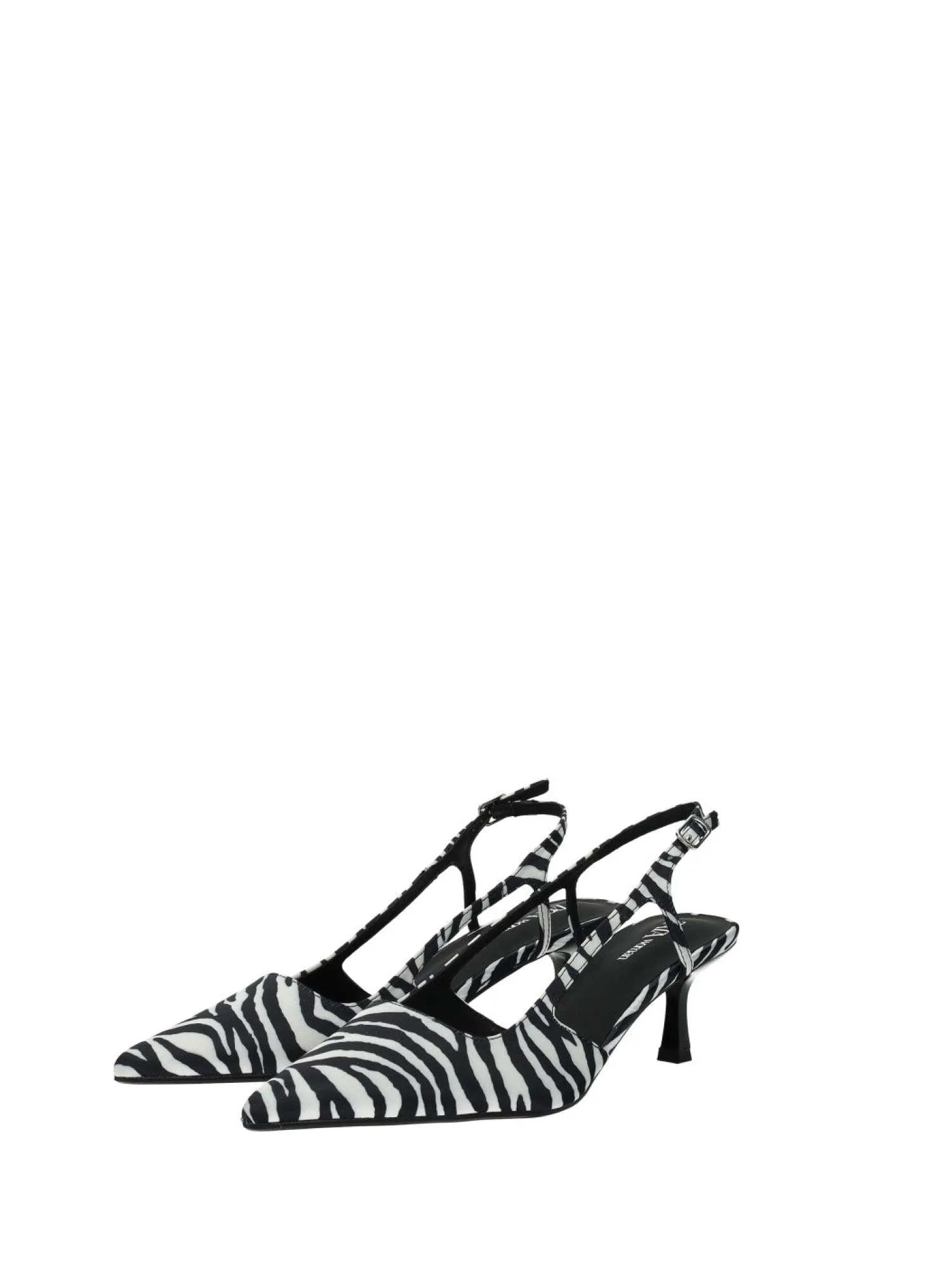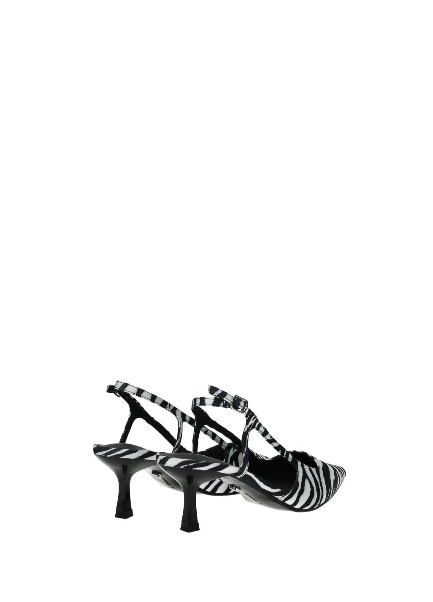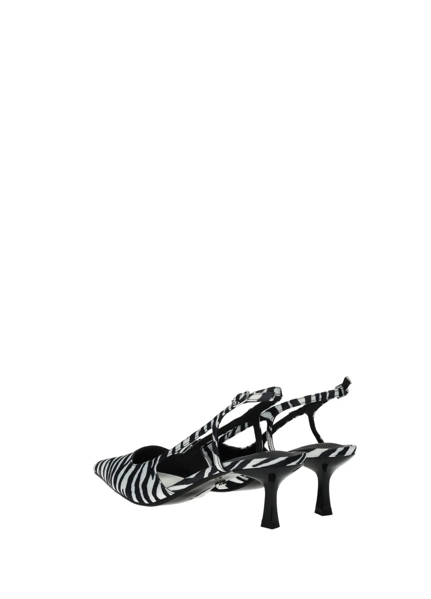 Décolleté slingback in raso con tacco di 5.5 cm e stampa zebrata.