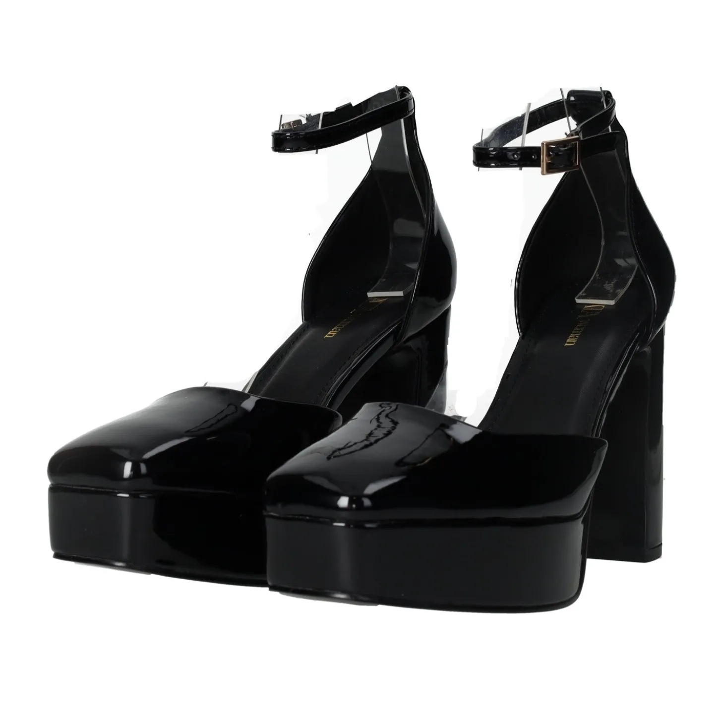 Décolleté in con chiusura altezza caviglia mediante una piccola fibbia.Realizzate in morbida pelle verniciata. avvolge il piede e ne delimita i contorni. Un tacco chunky comodo e un plateau basso completano il modello.Altezza tacco: 10.5 cmAltezza plateau: 3 cm
