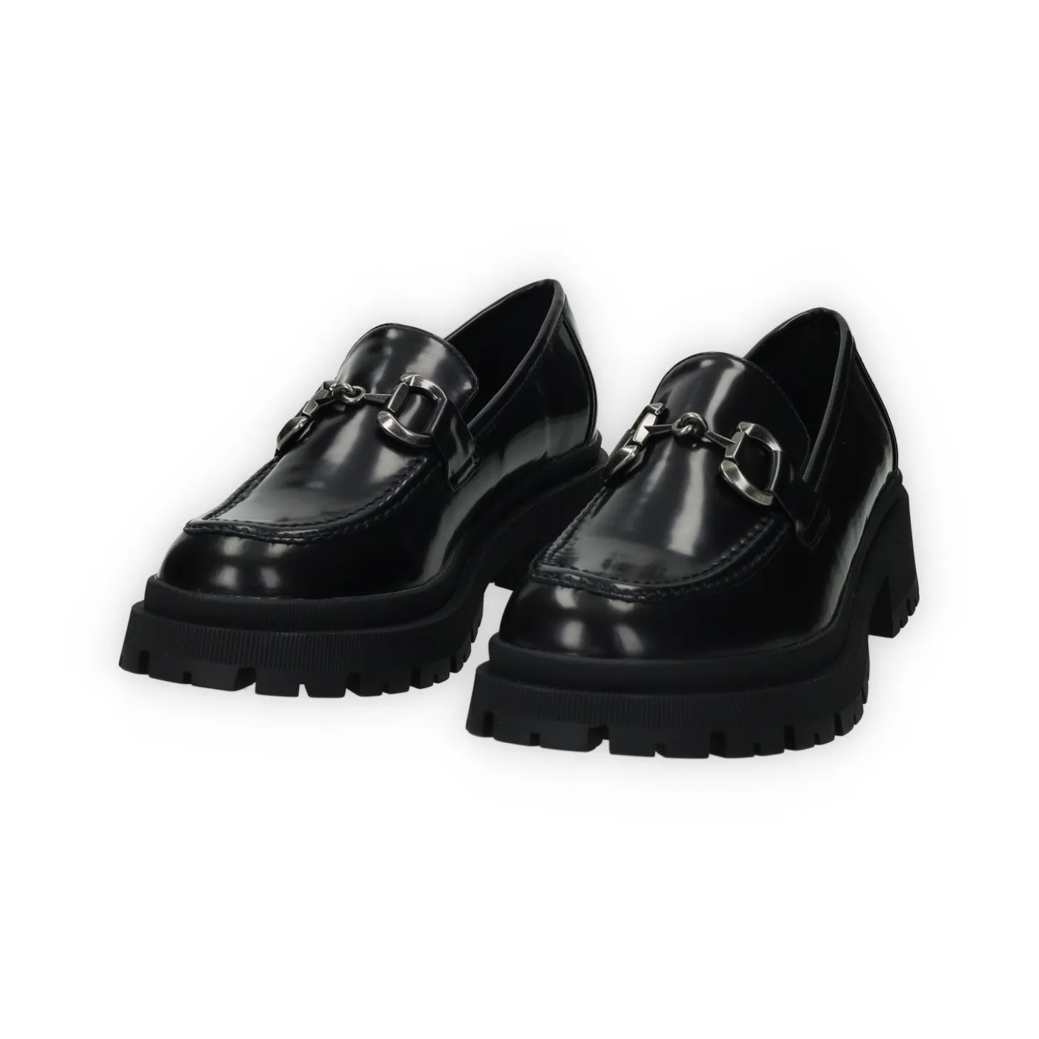 Mocassini in ecopelle con morsetto e tacco di 5cm.