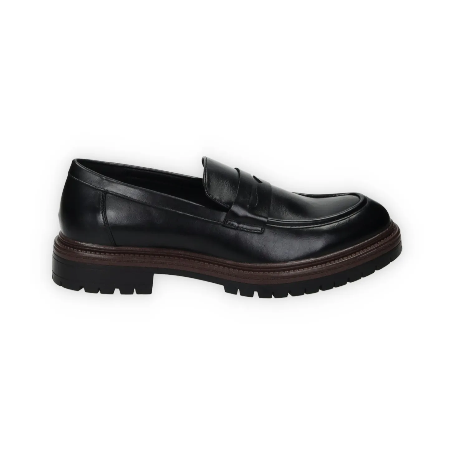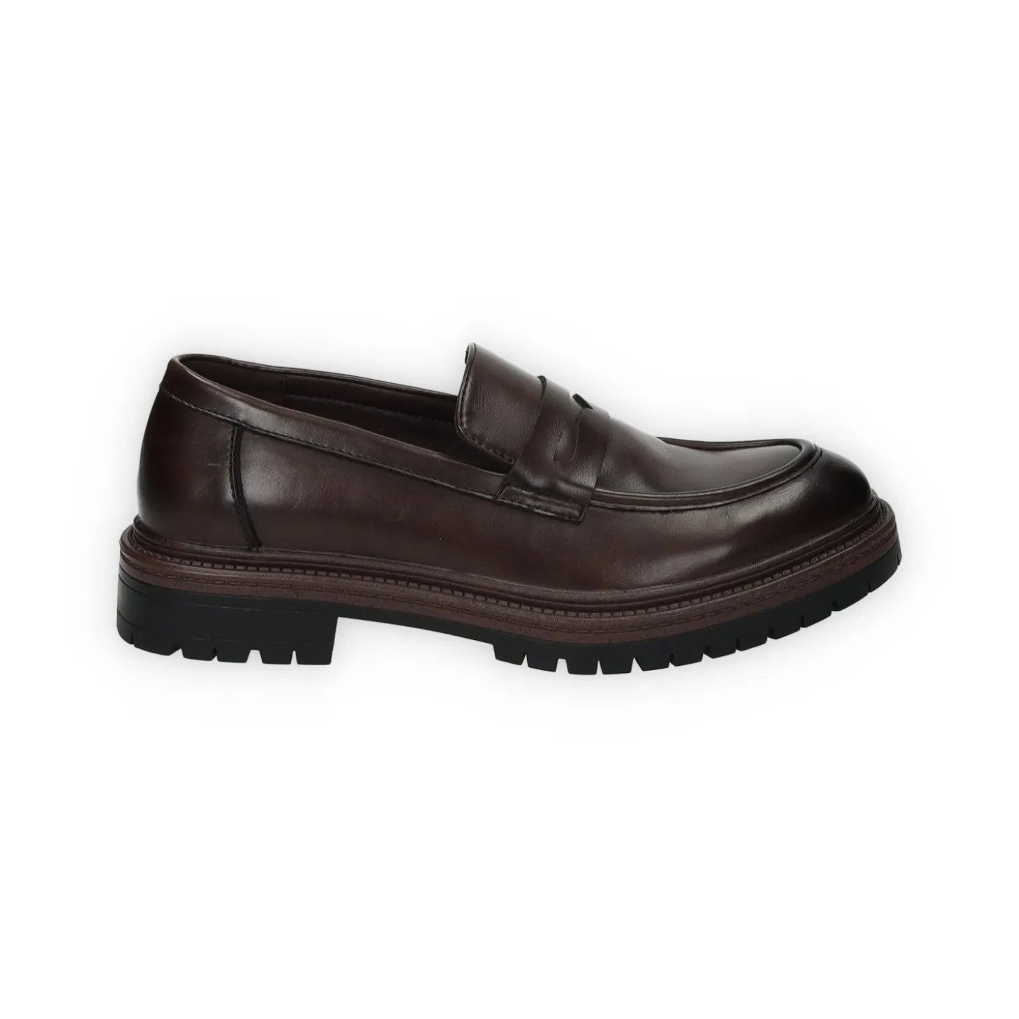 Mocassini in ecopelle con fondo in gomma di 3 cm.
