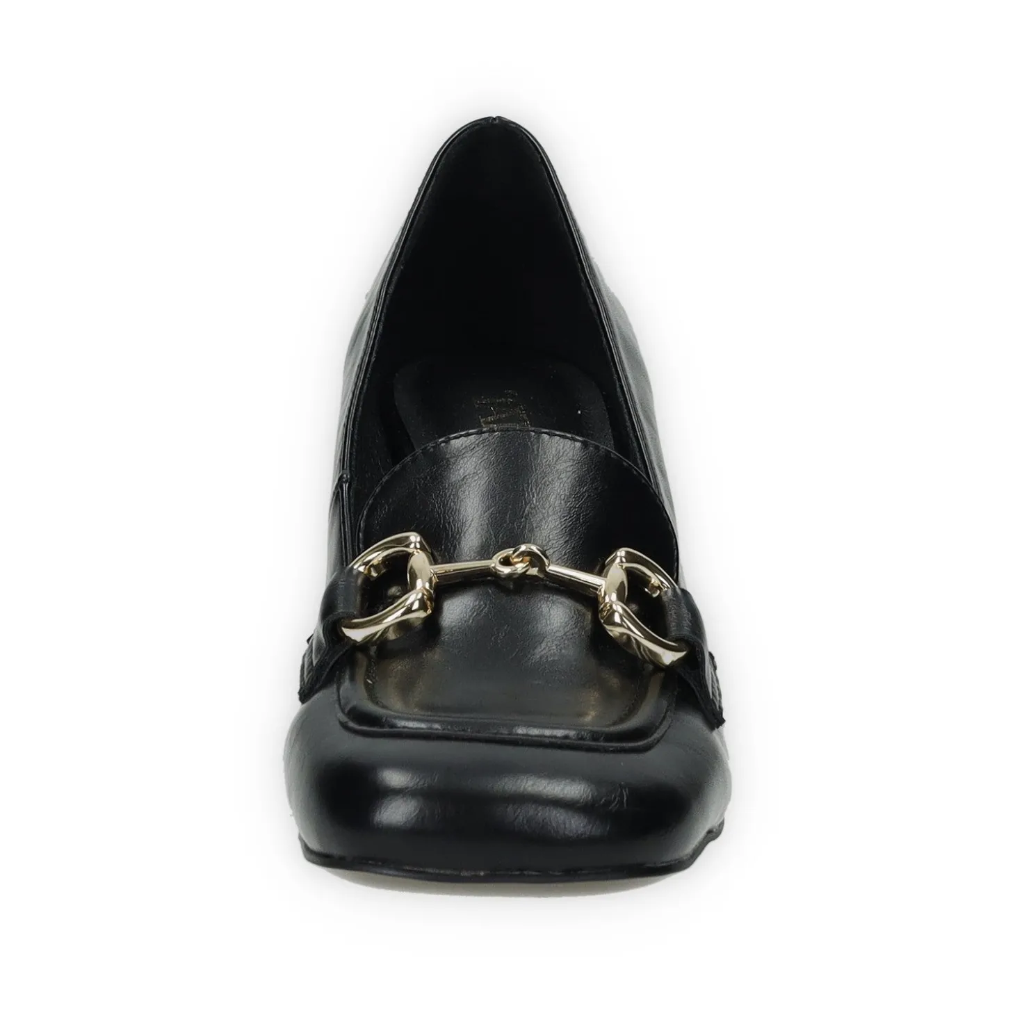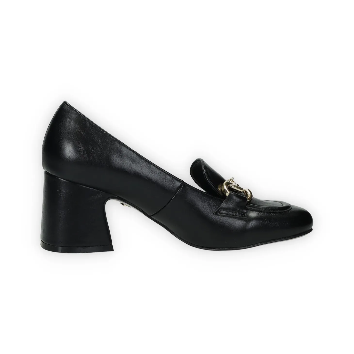 Mocassini in ecopelle con inserto in metallo etacco di 5 cm.