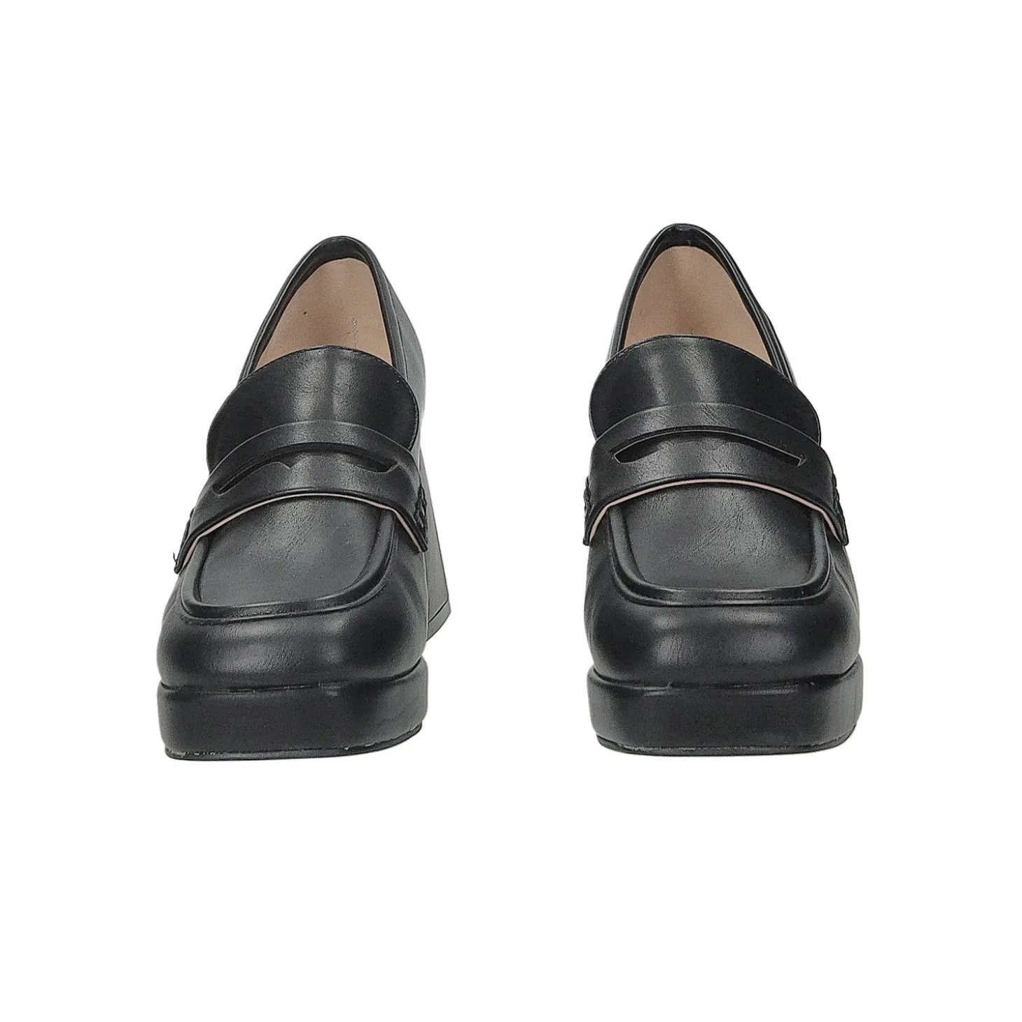 Mocassini con fibbia frontale.La migliore ispirazione che la donna ha tratto dal guardaroba maschile.trasformando i mocassini in un accessorio quotidiano.Altezza tacco: 8cmAltezza plateau: 2cm