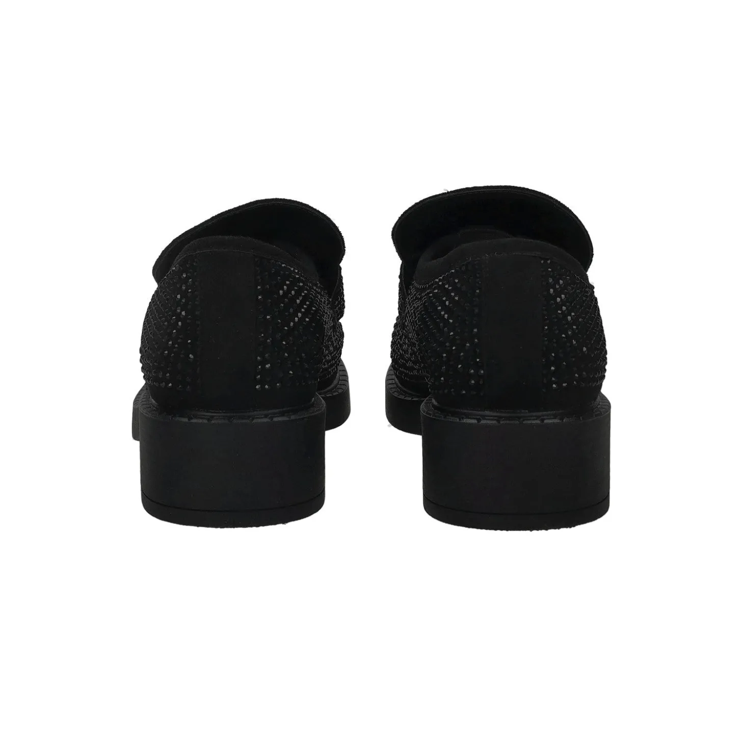 Aggiungi un tocco speciale ai tuoi nuovi outfits della stagione grazie ai nostri esclusivi mocassini.Impreziositi da brillanti cristalli applicati su tutta la tomaia e rivelano una punta arrotondata e una suola chunky in gomma carrarmato. Perfetti per i tuoi looks glam-rockAltezza tacco: 3 cm