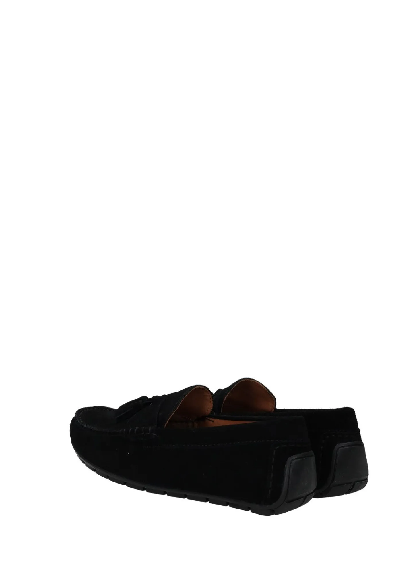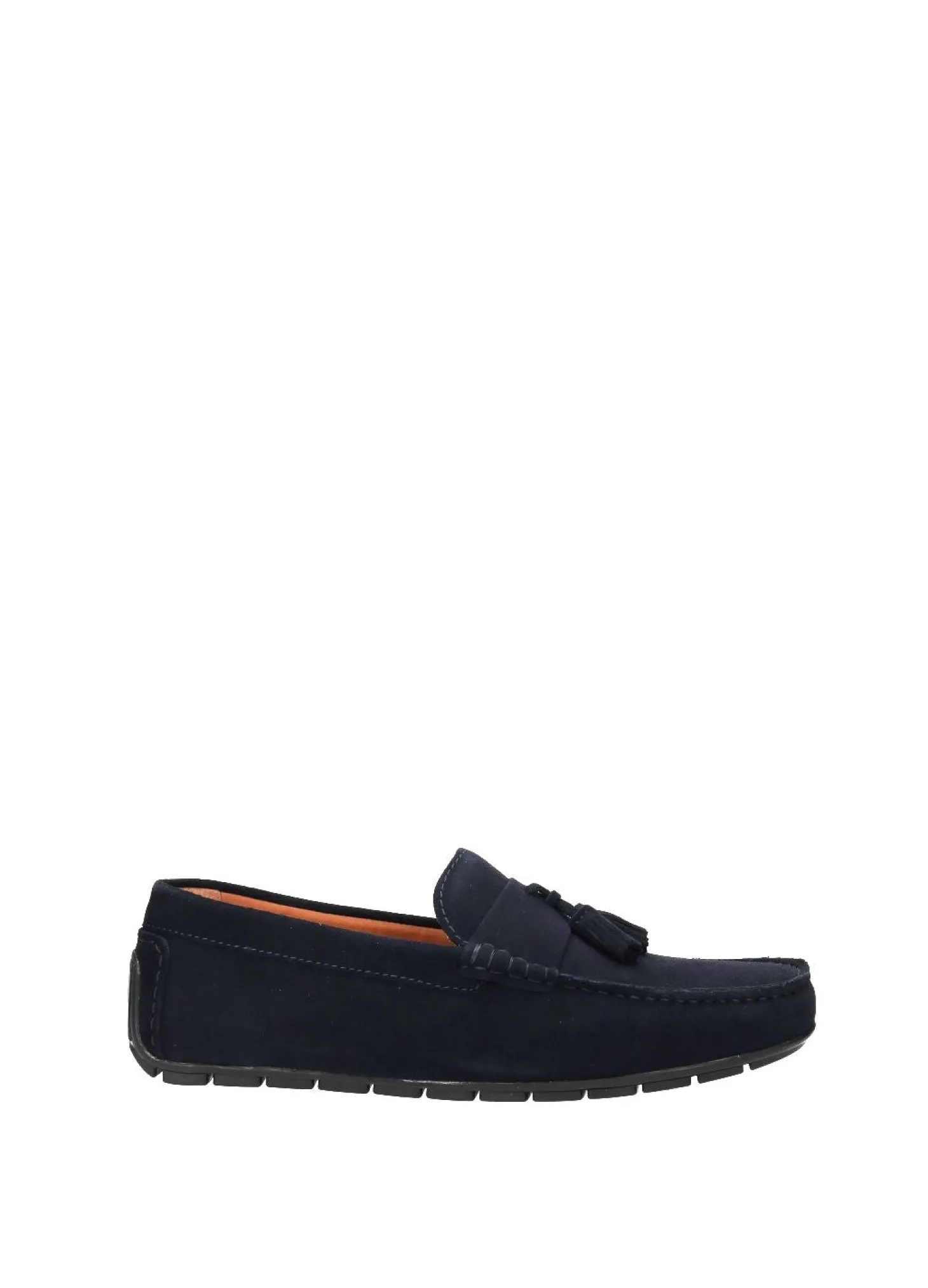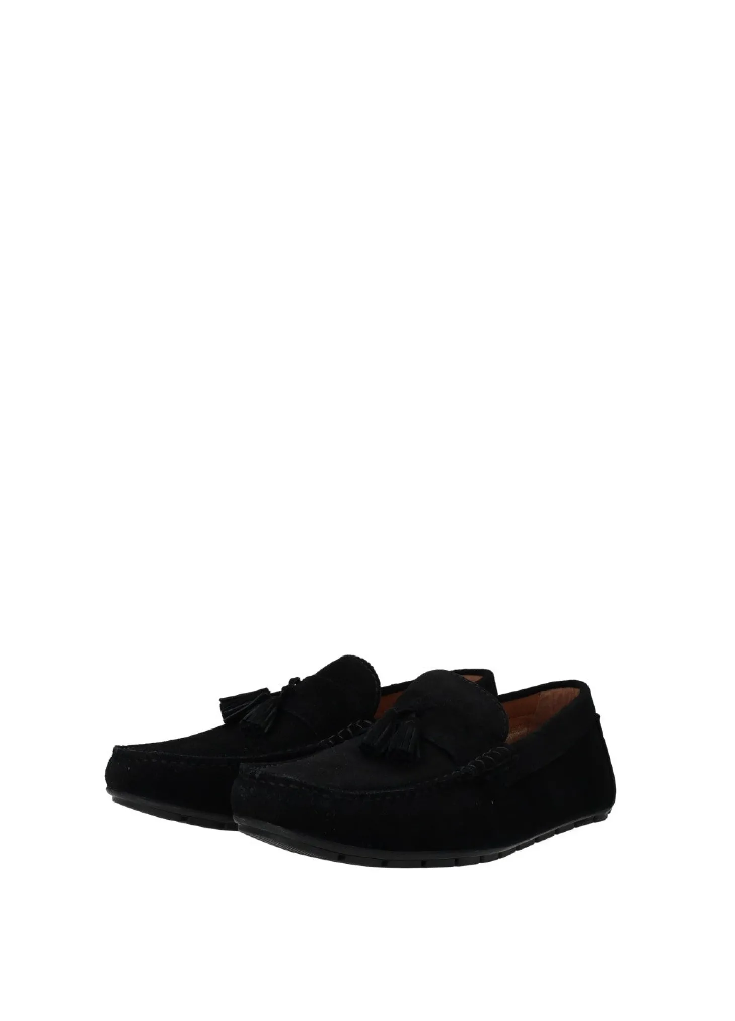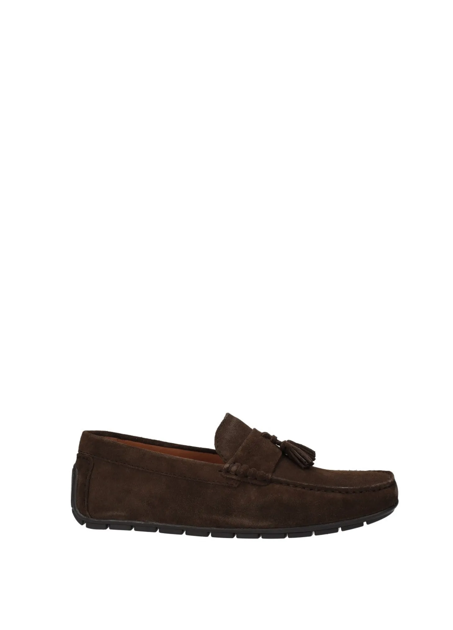 Mocassini in pelle scamosciata con nappine e fondo in gomma.