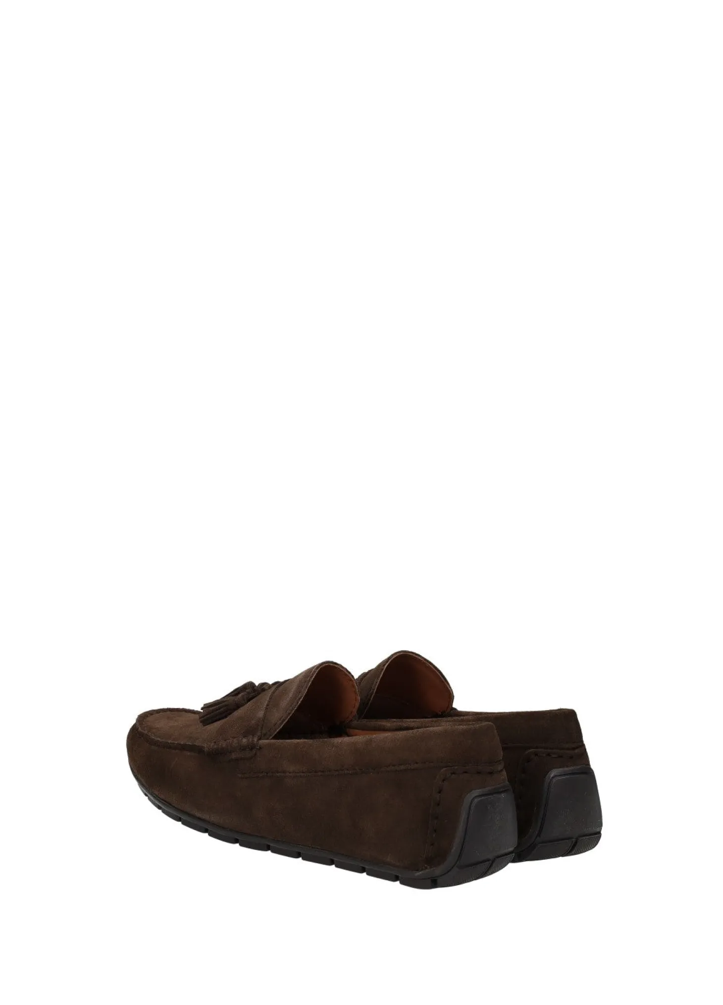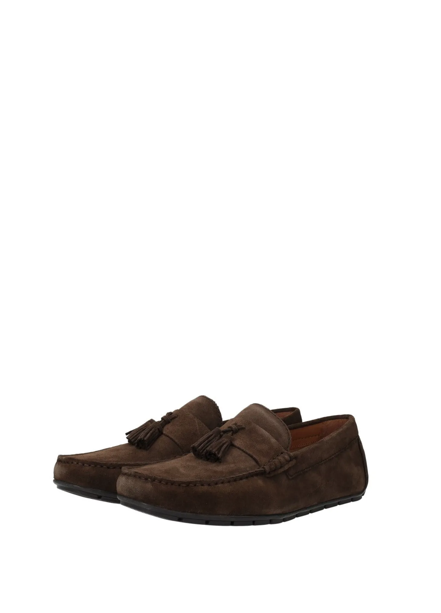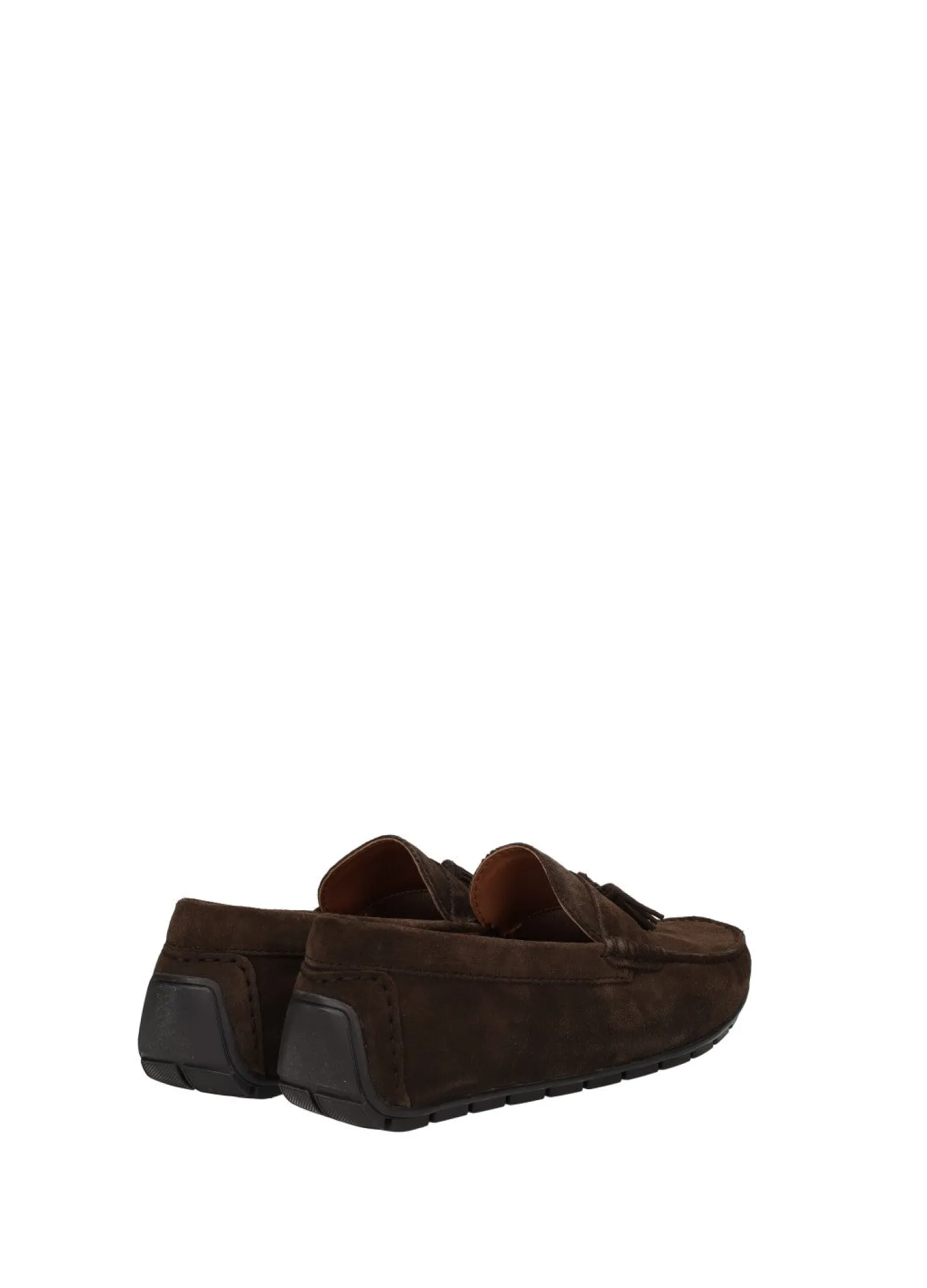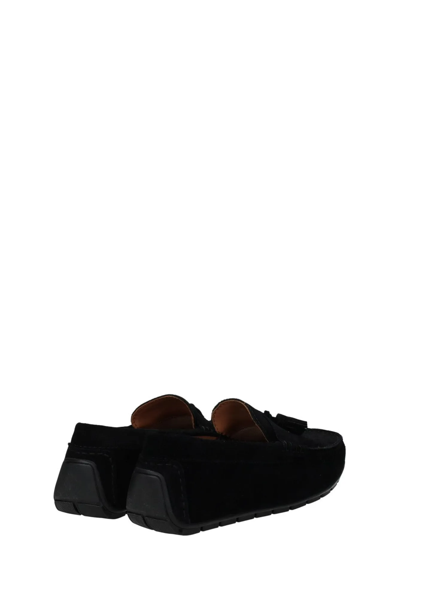 Mocassini in pelle scamosciata con nappine e fondo in gomma.