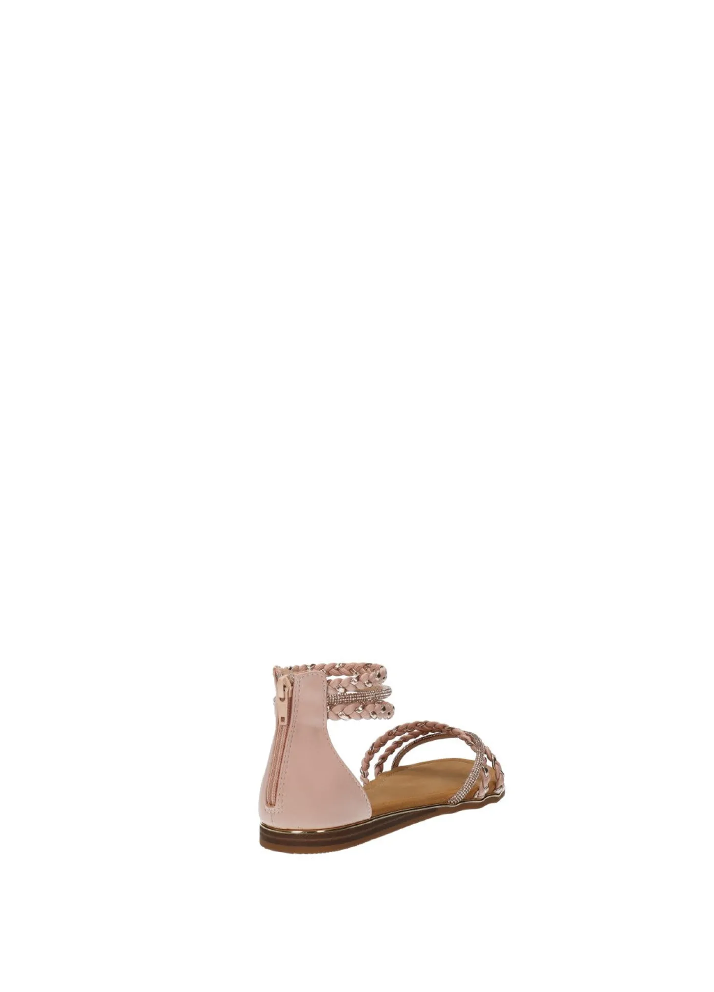 Sandali bassi con strass. cerniera sul retro e fondo in gomma.