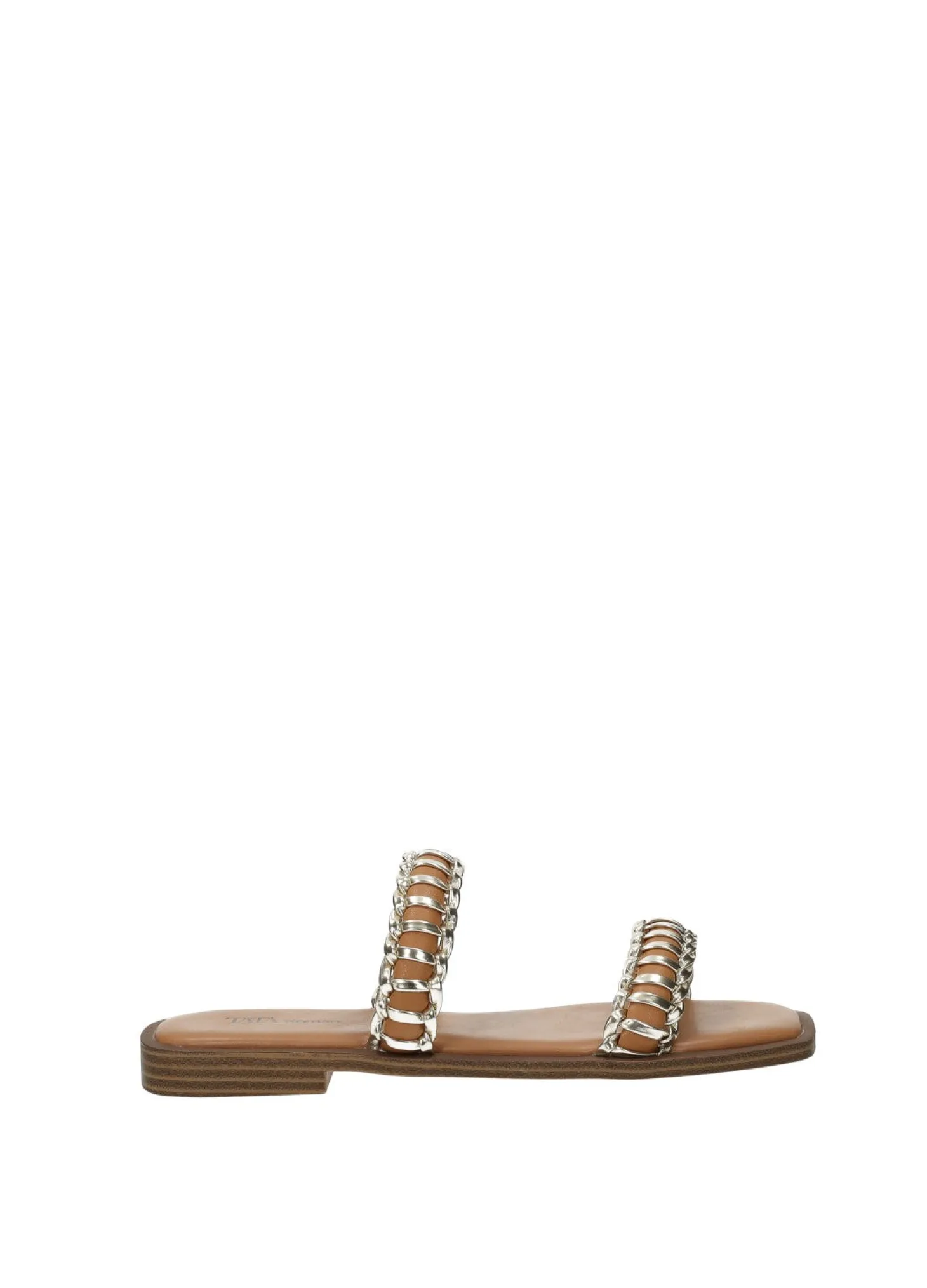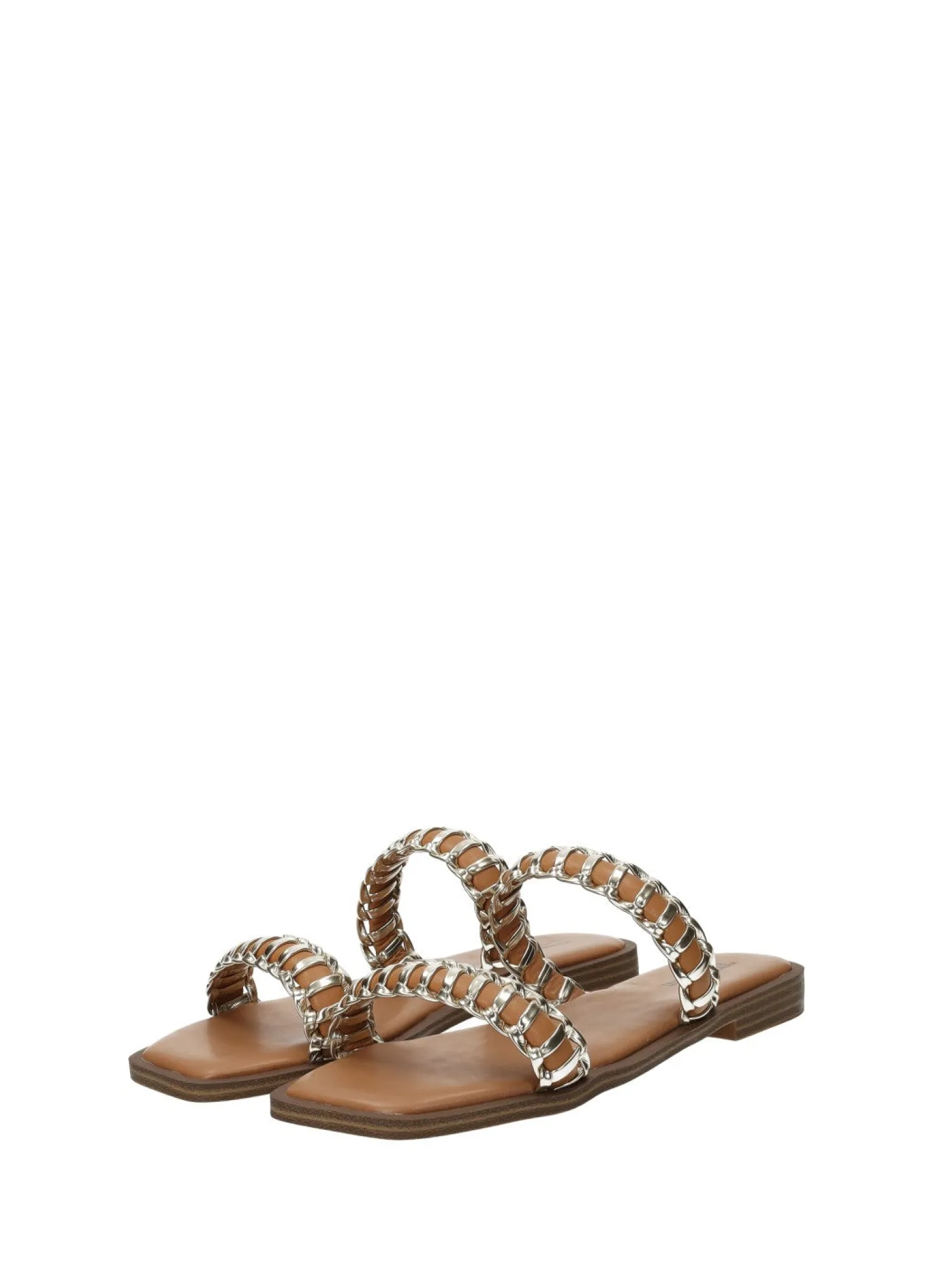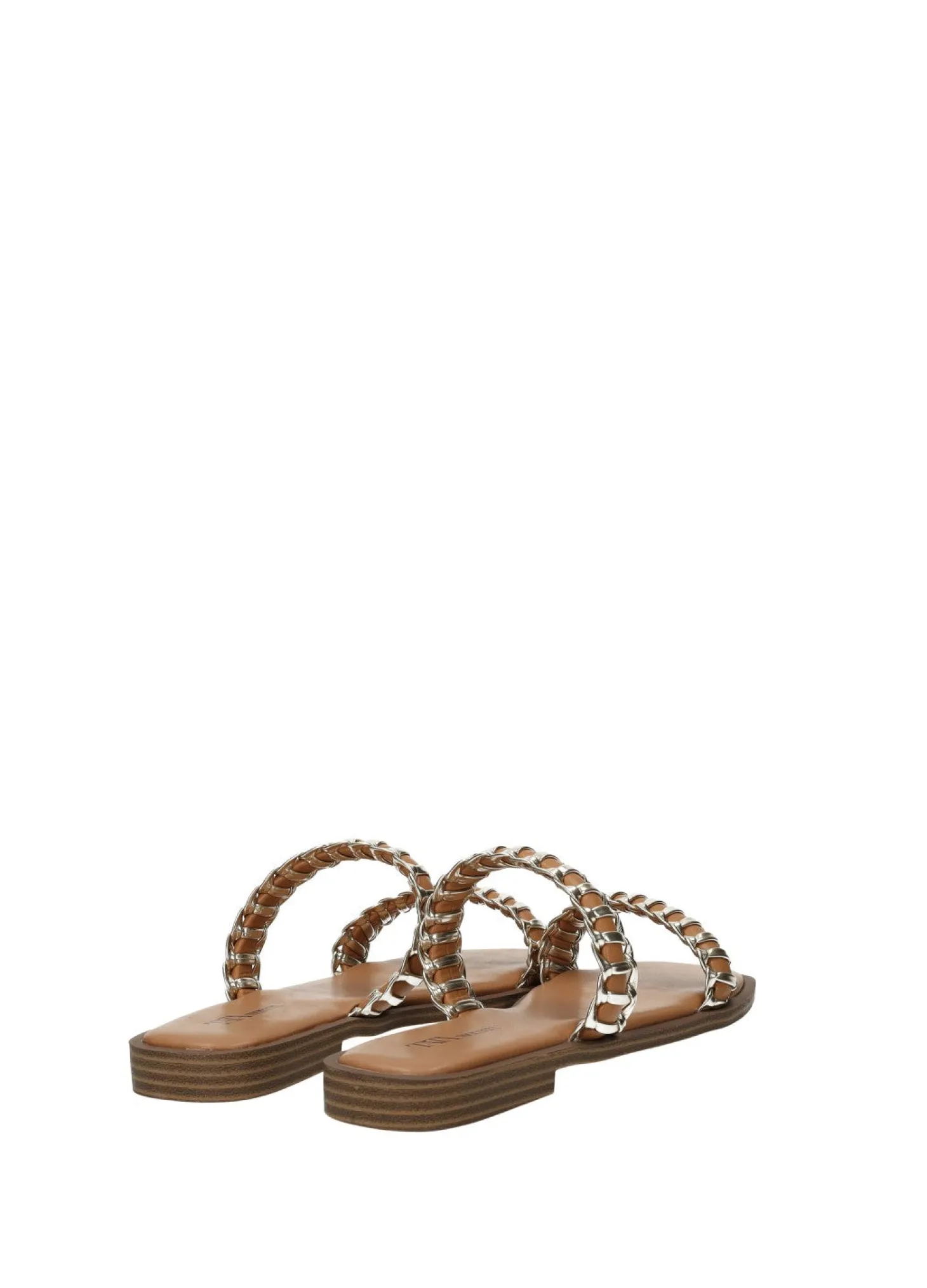 Sandali effetto pelle con fasce decorate e fondo in gomma.