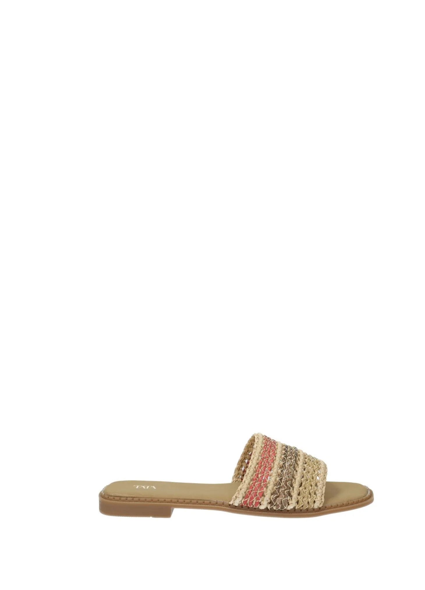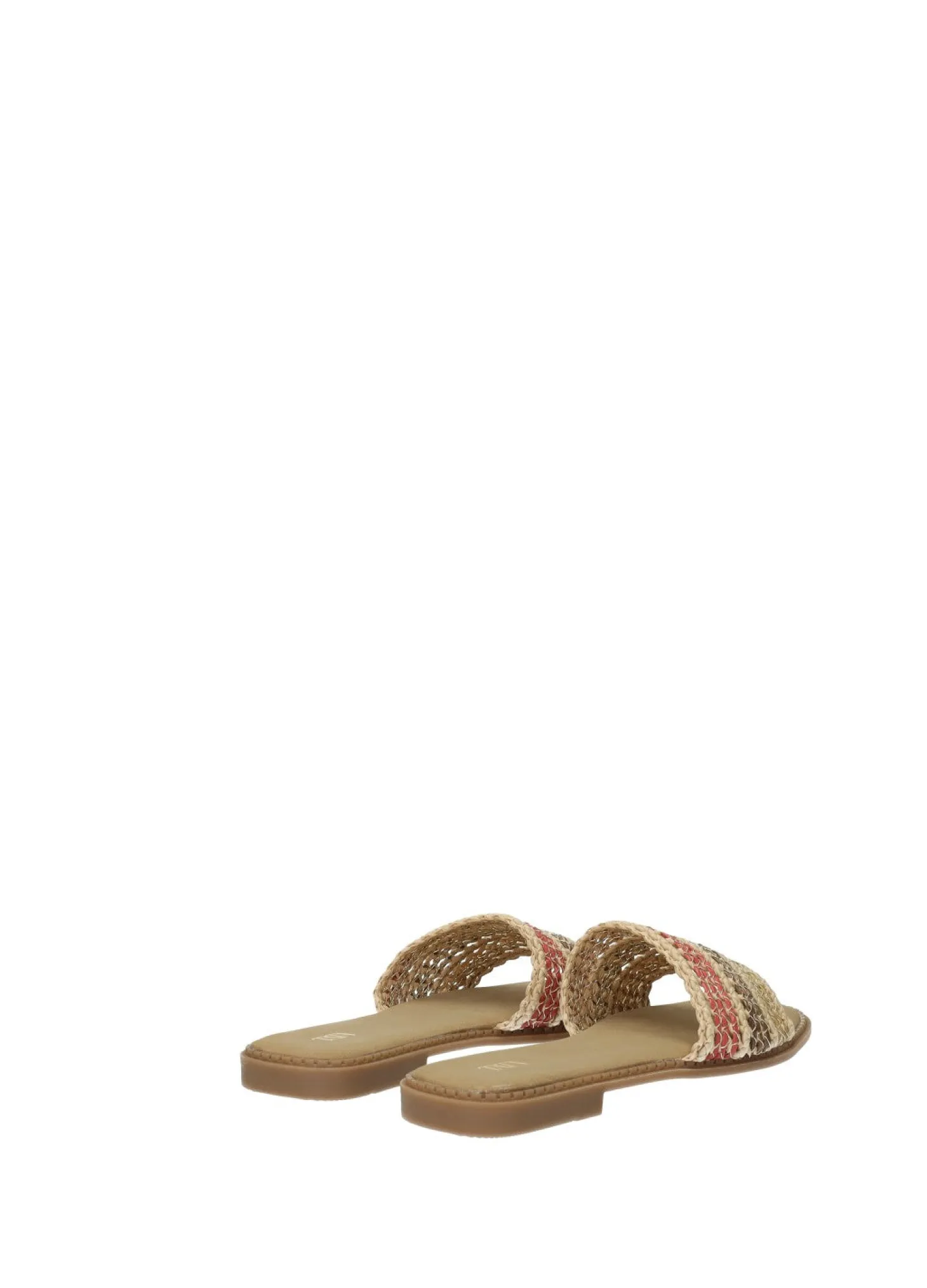 Sandali bassi in rafia con suola in gomma.
