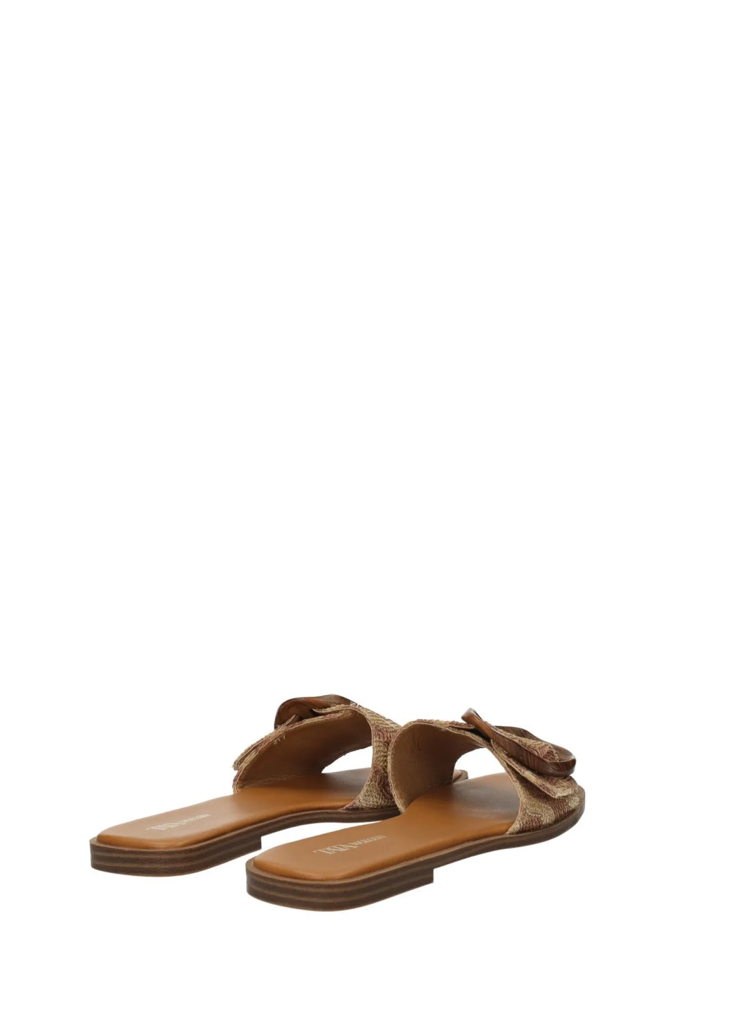 Sandali in tessuto con fibbia effetto legno.