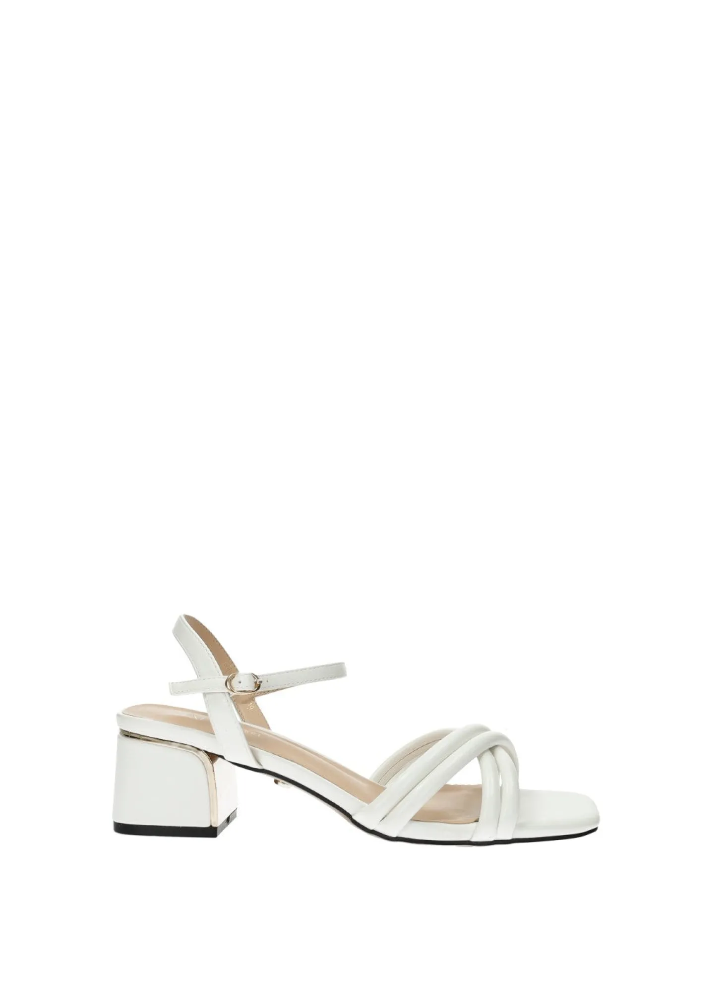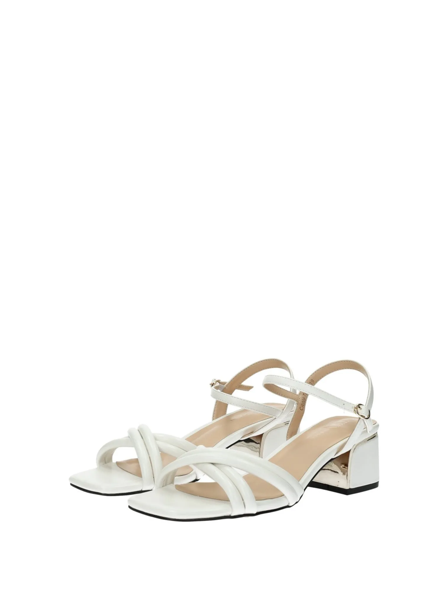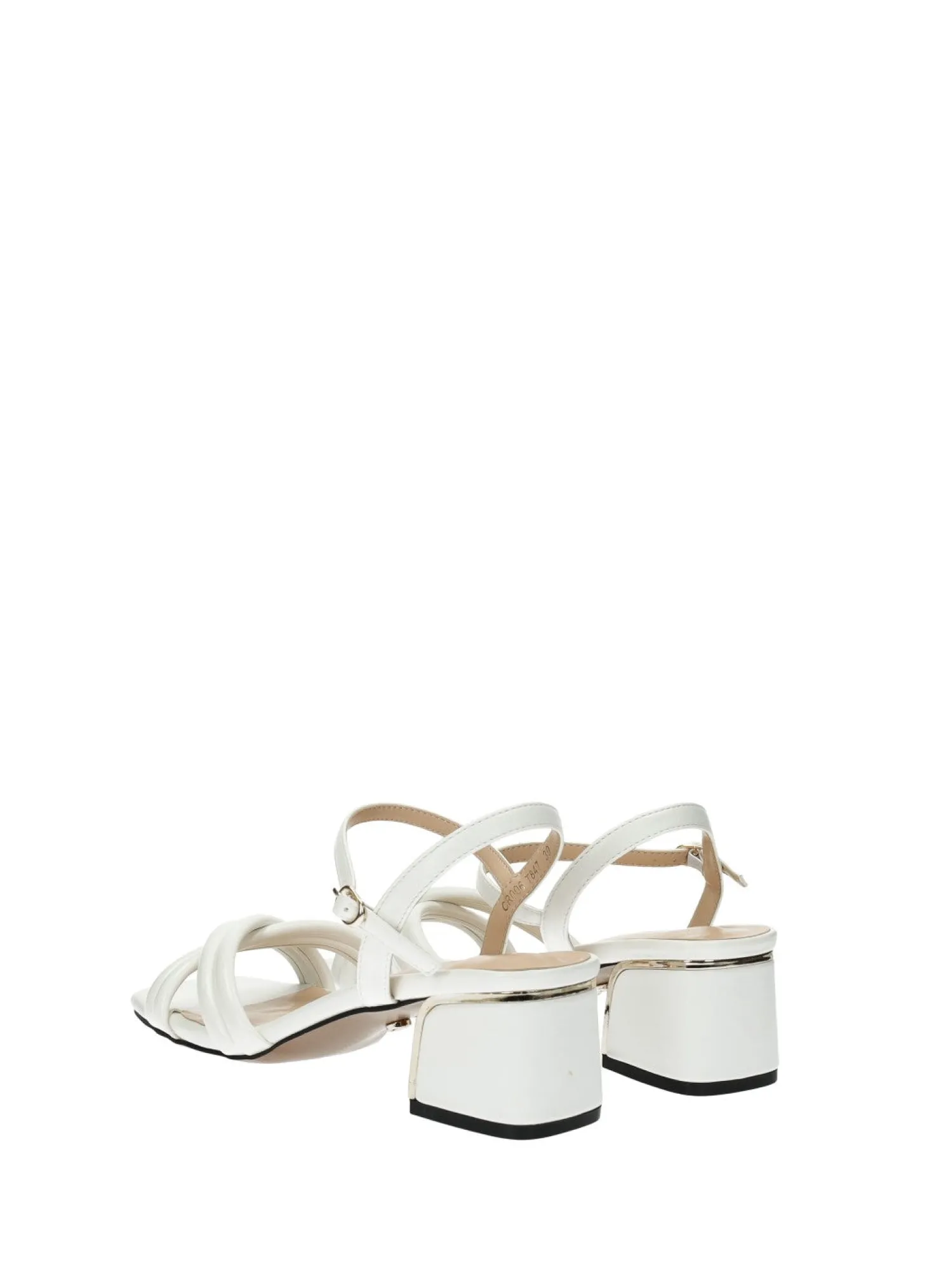 Sandali effetto pelle con listini incrociati e tacco di 5 cm.