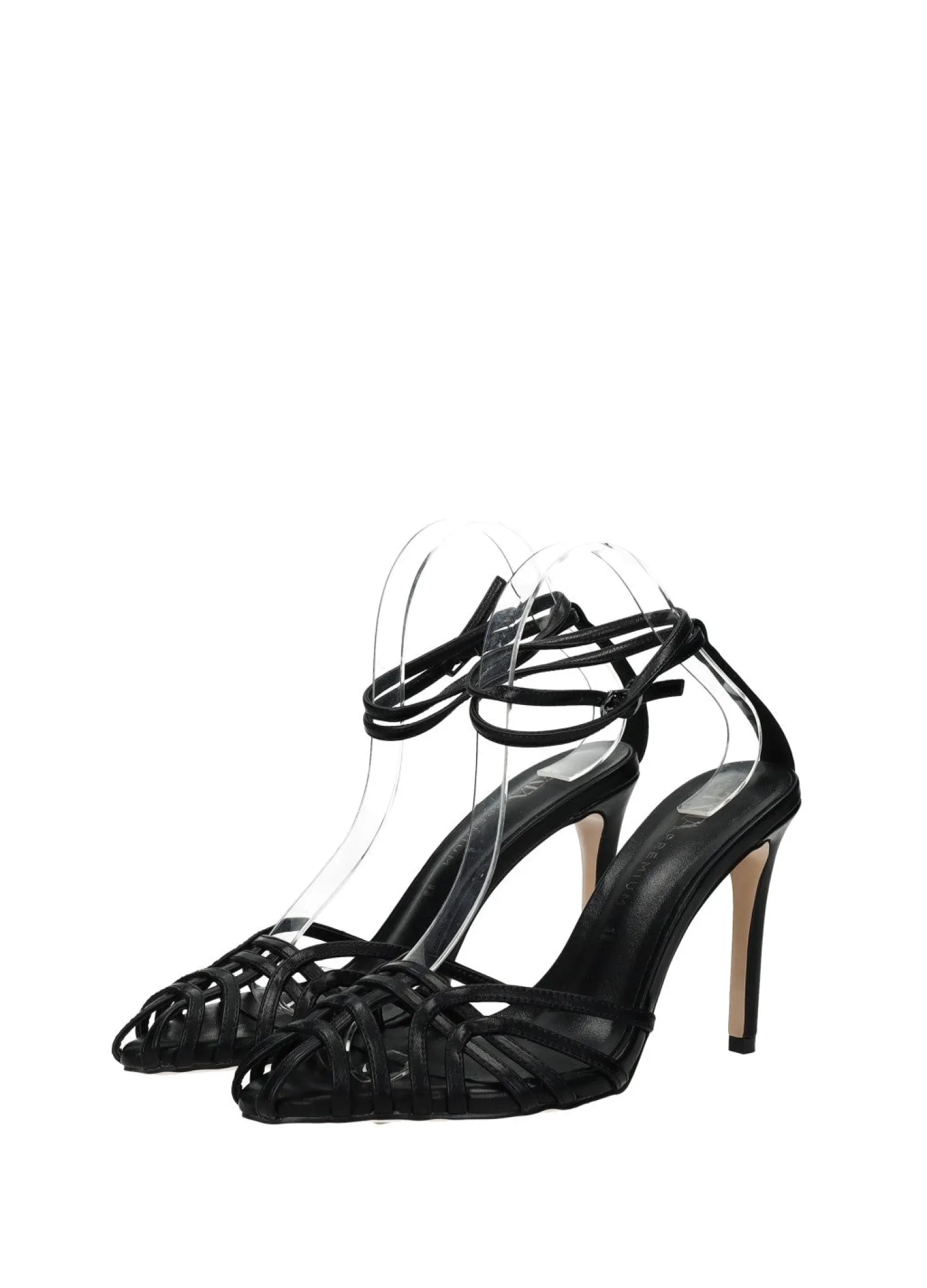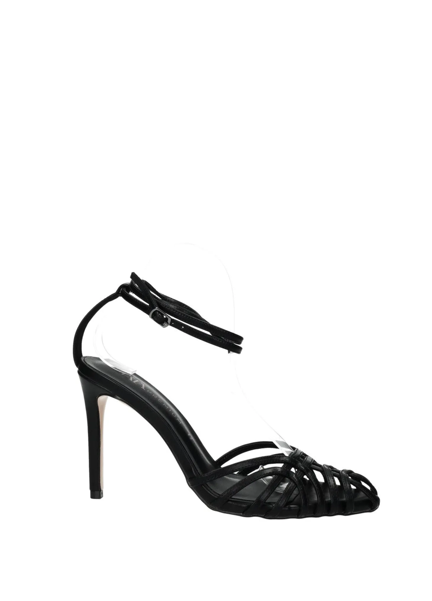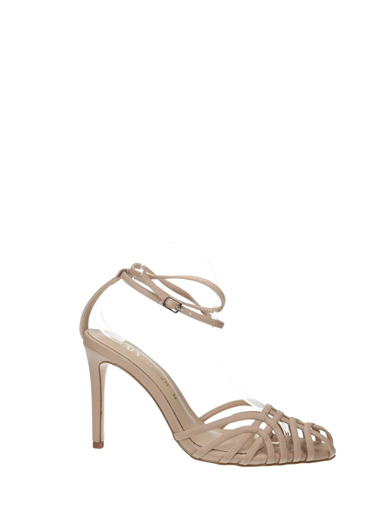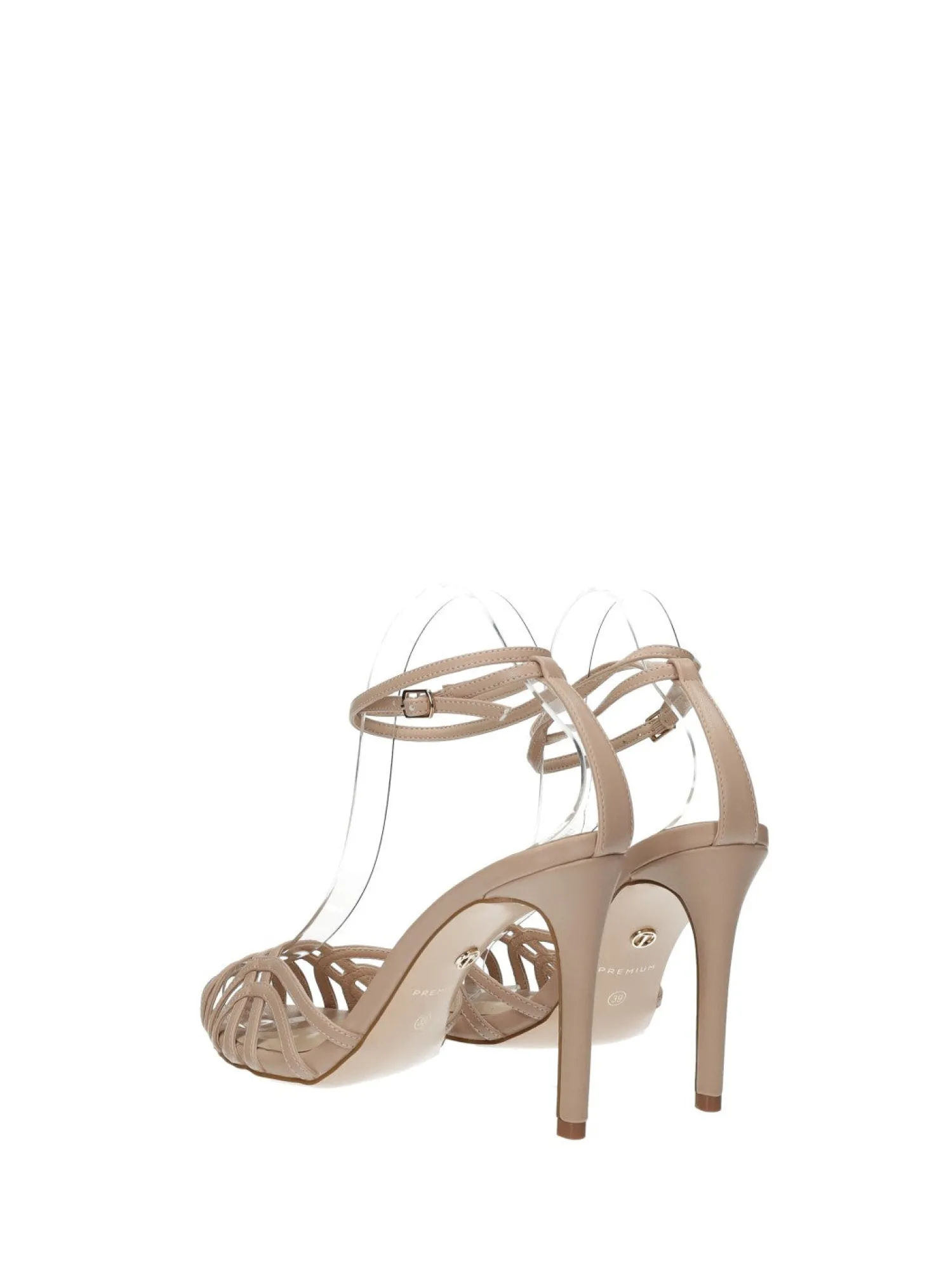 Sandali effetto pelle con listini incrociati e tacco di 10 cm.