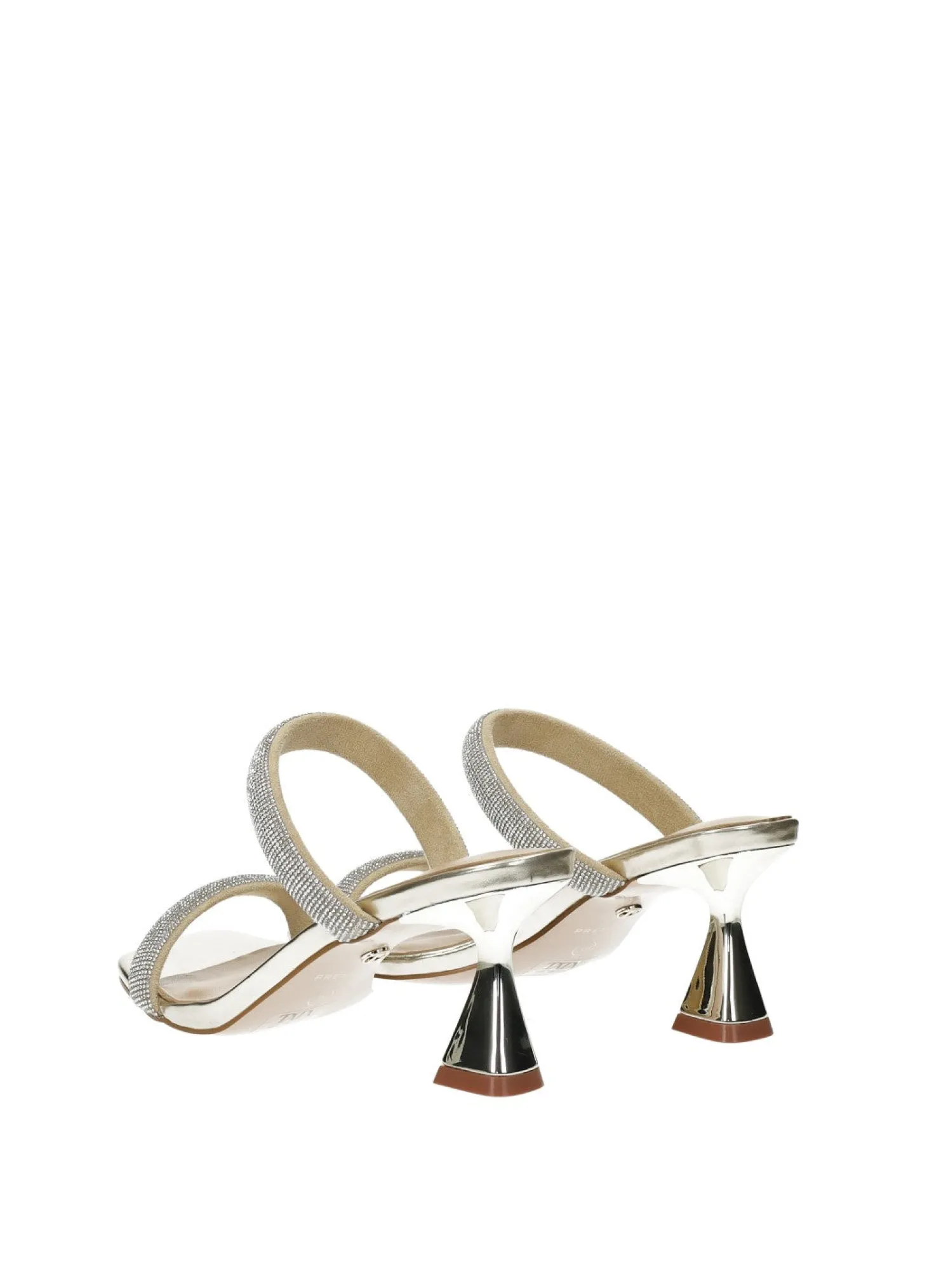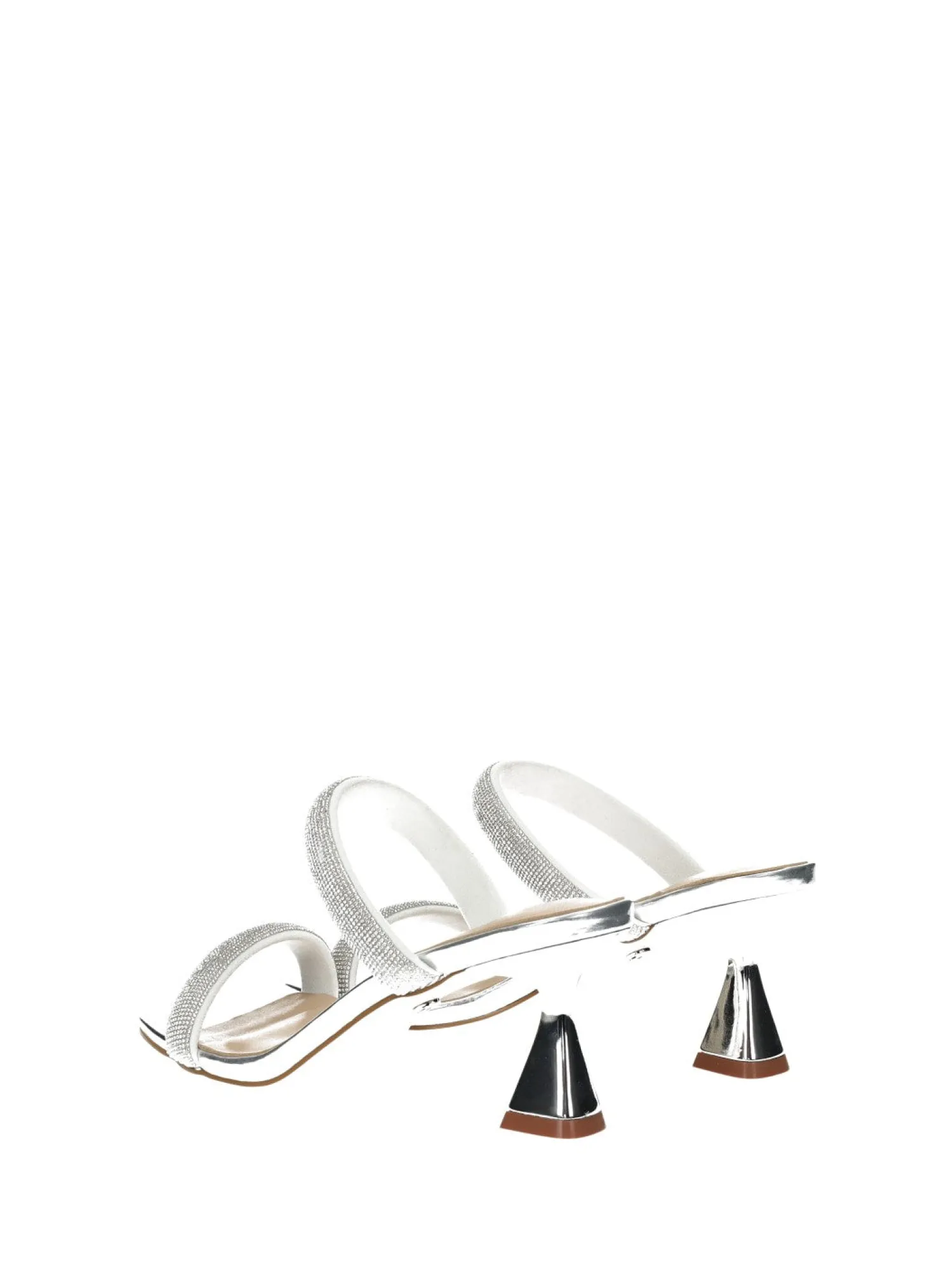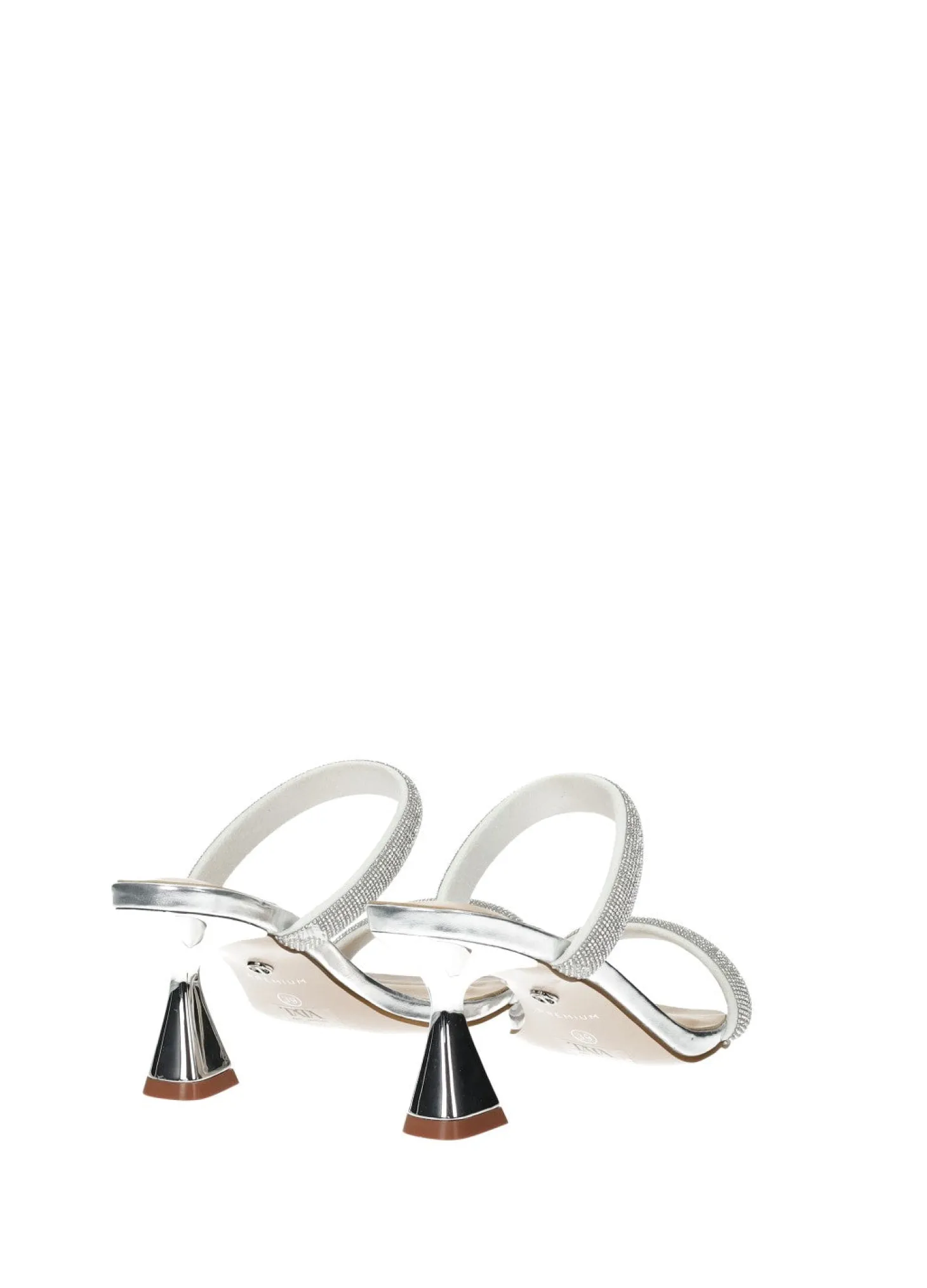 Sandali effetto pelle metallizzati con tacco di 7 cm e listini strass.