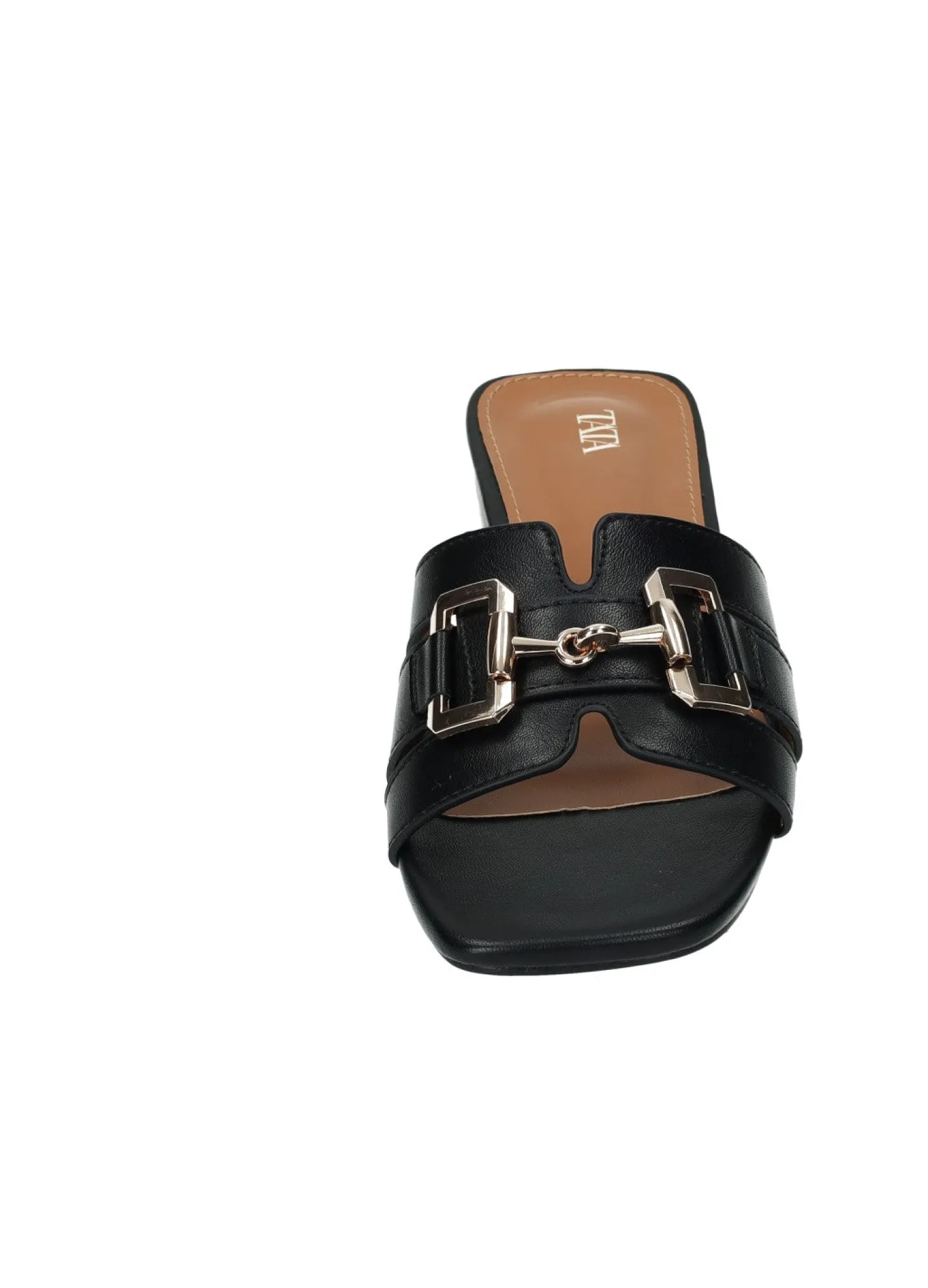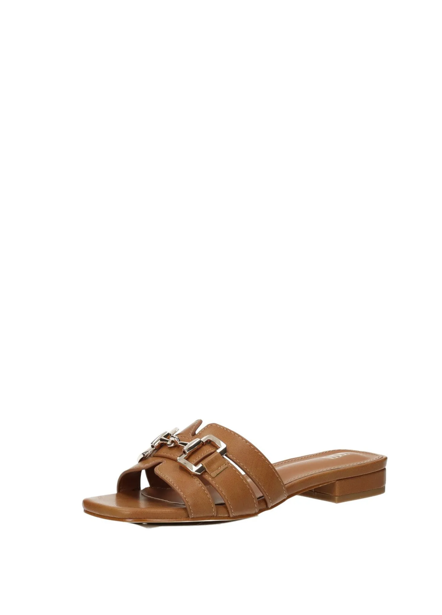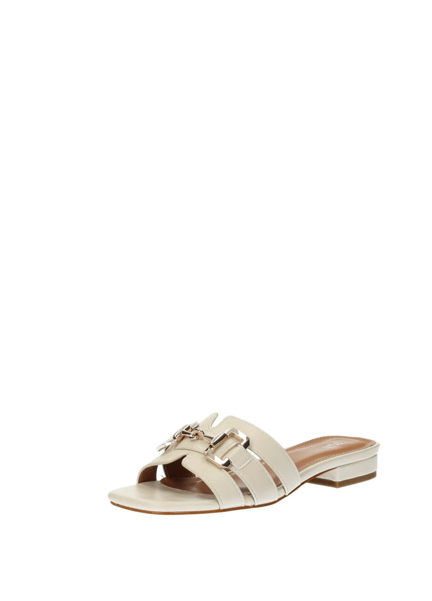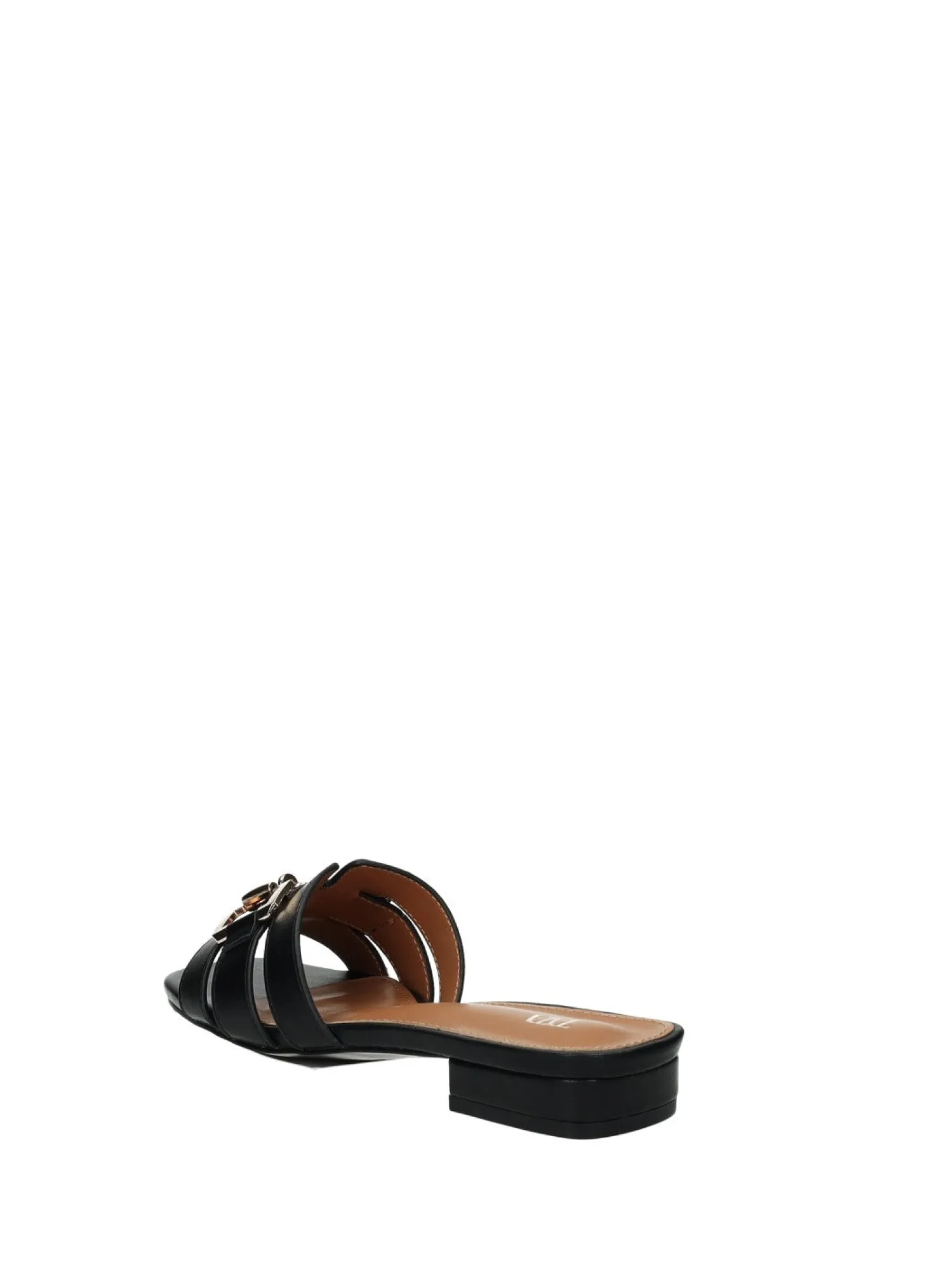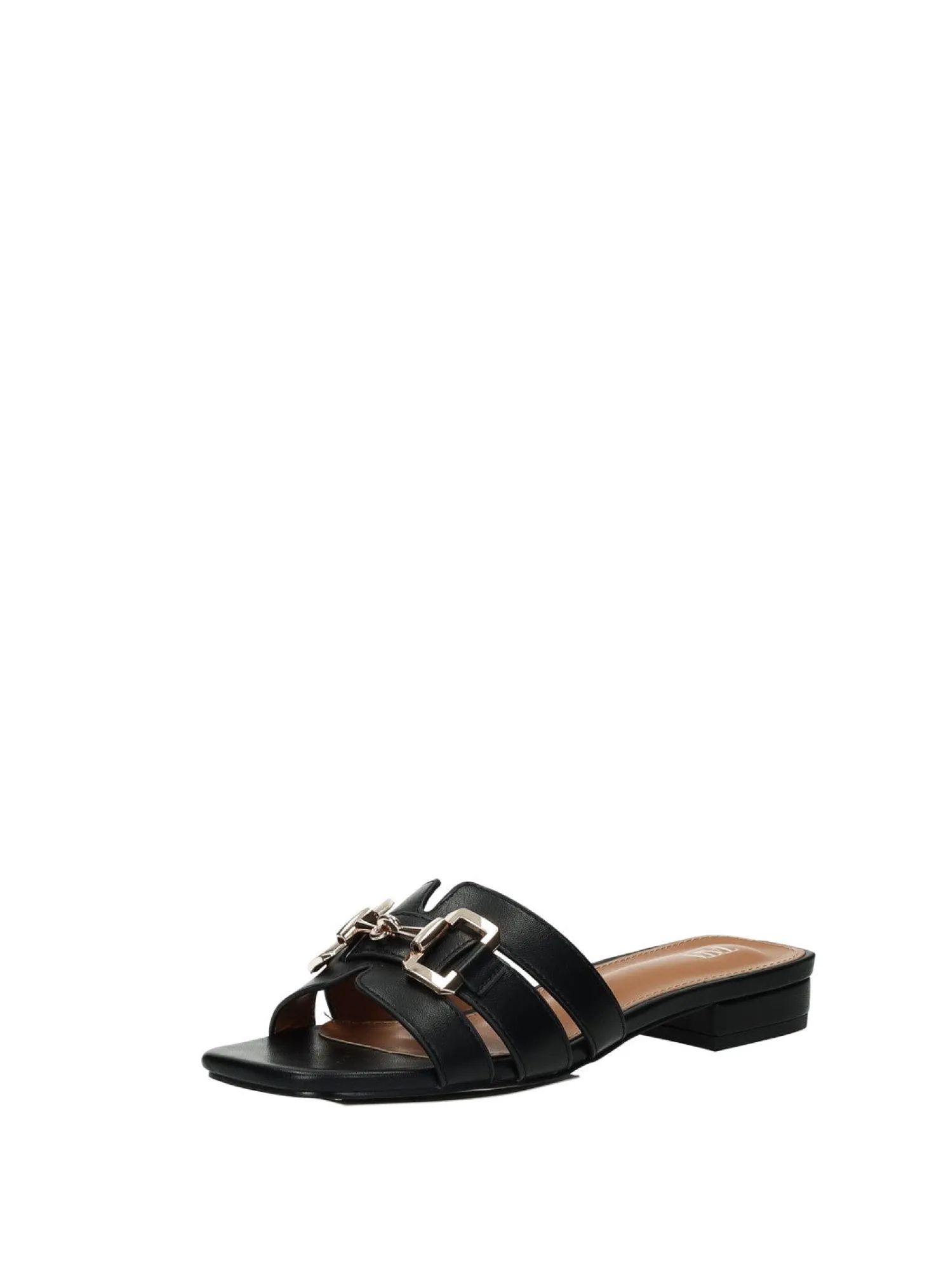 Sandali effetto pelle con morsetto e fondo in gomma.