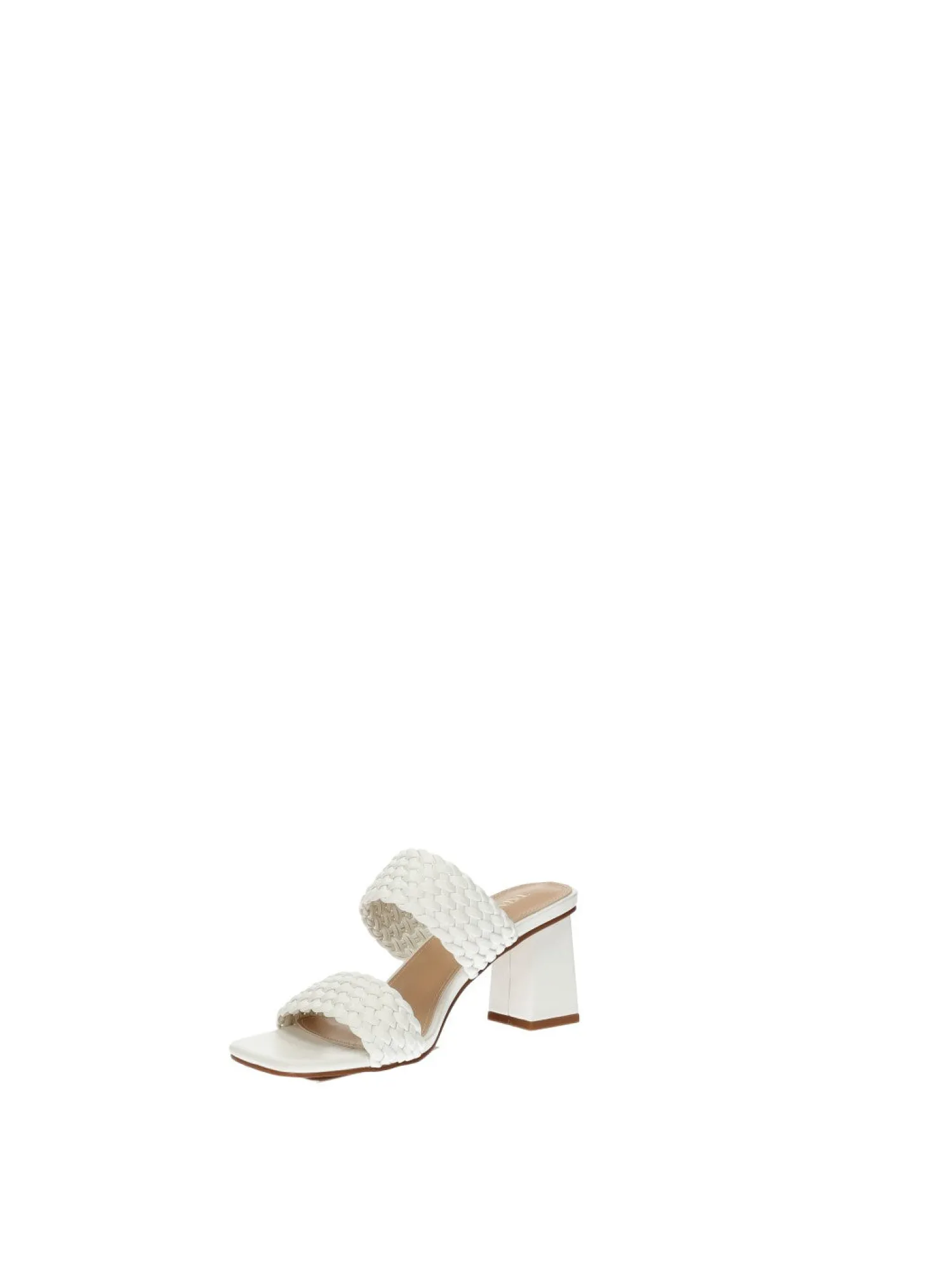 Sandali effetto pelle con tacco largo di 6.5 cm e doppia fascia intrecciata.