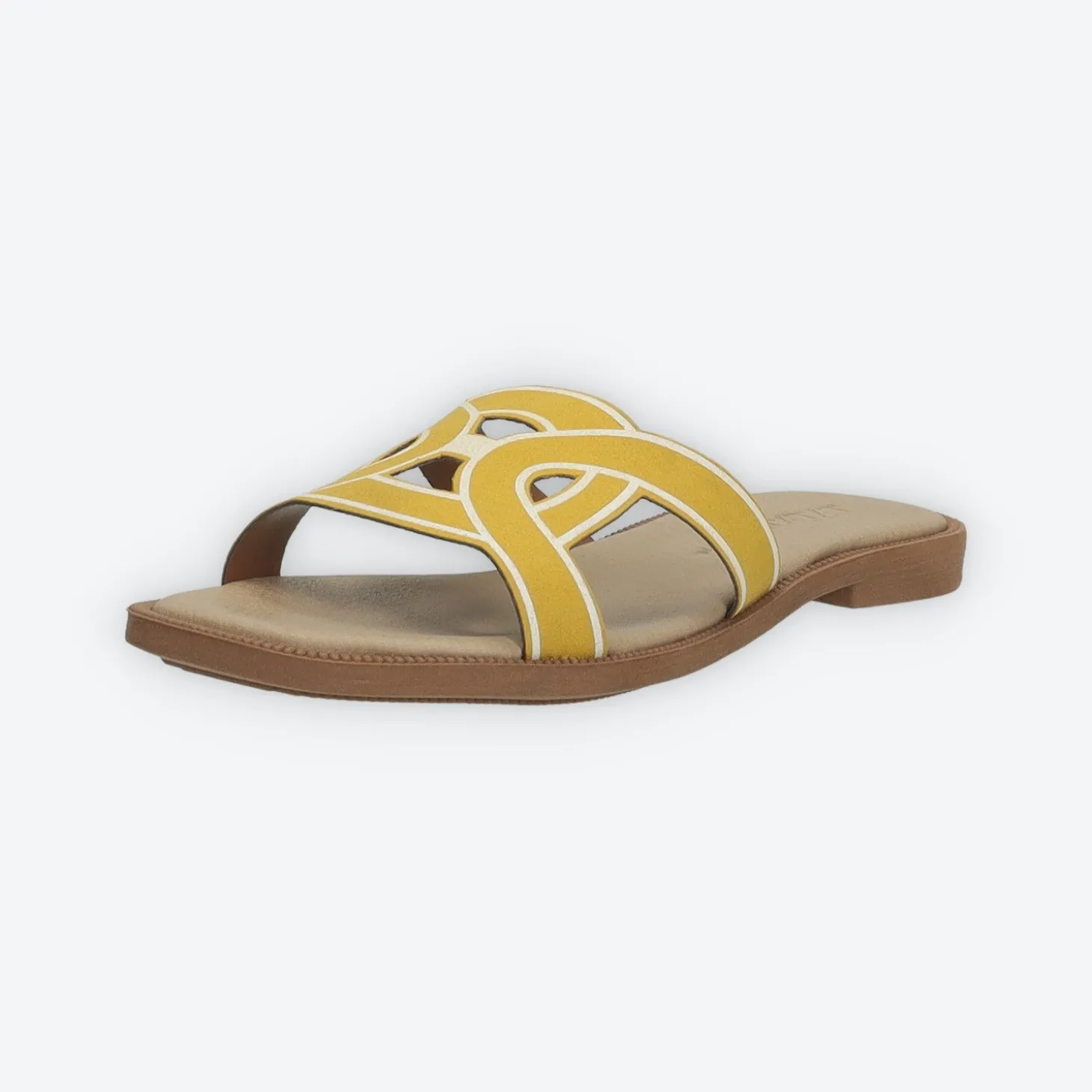 I sandali flat sono un capolavoro di eleganza che fonde praticità e glamour. Realizzato in ecopelle martellata. il modello presenta cinturini intrecciati a creare un motivo che mette in mostra la silhouette del piede.Made in Italy