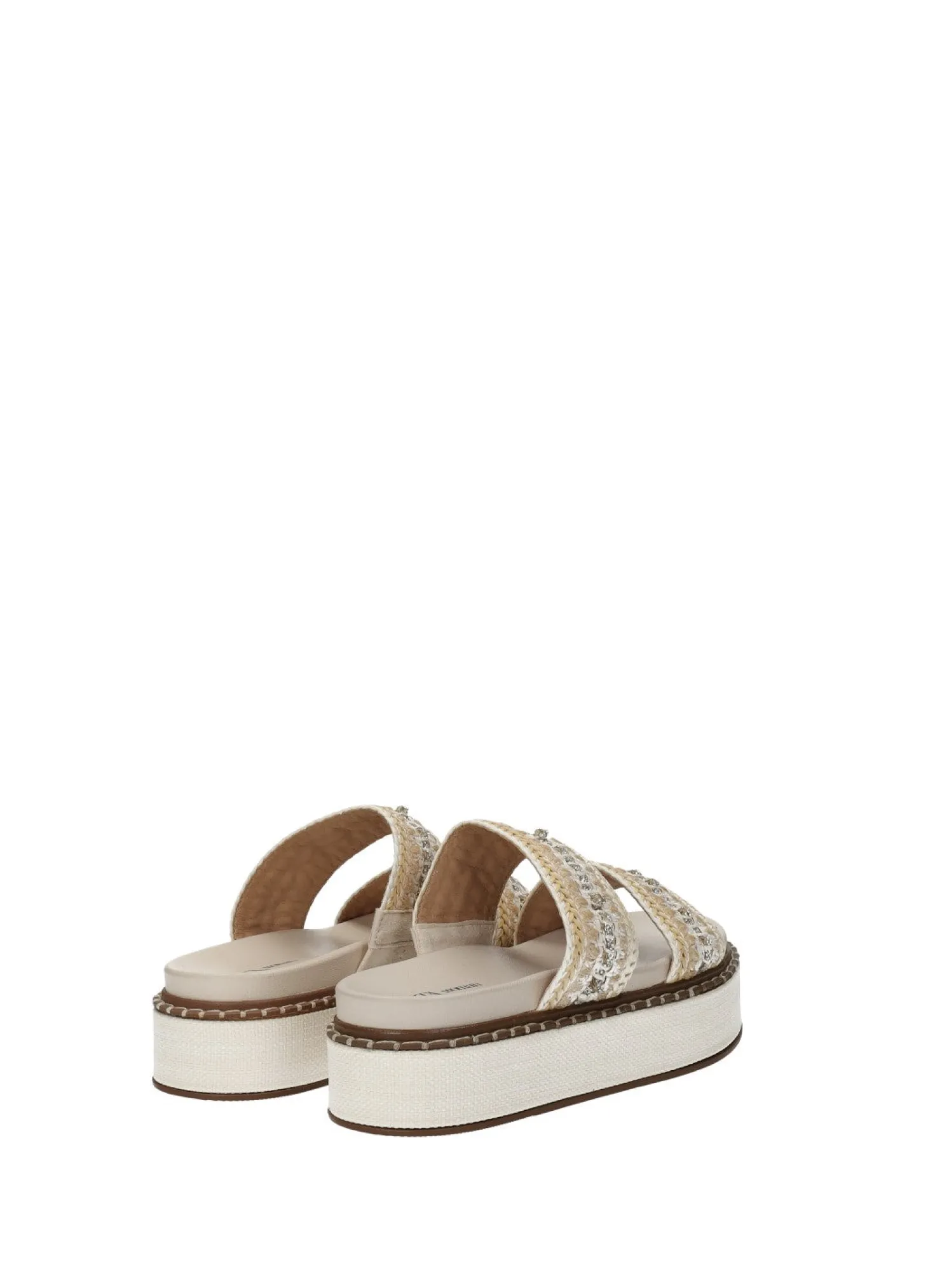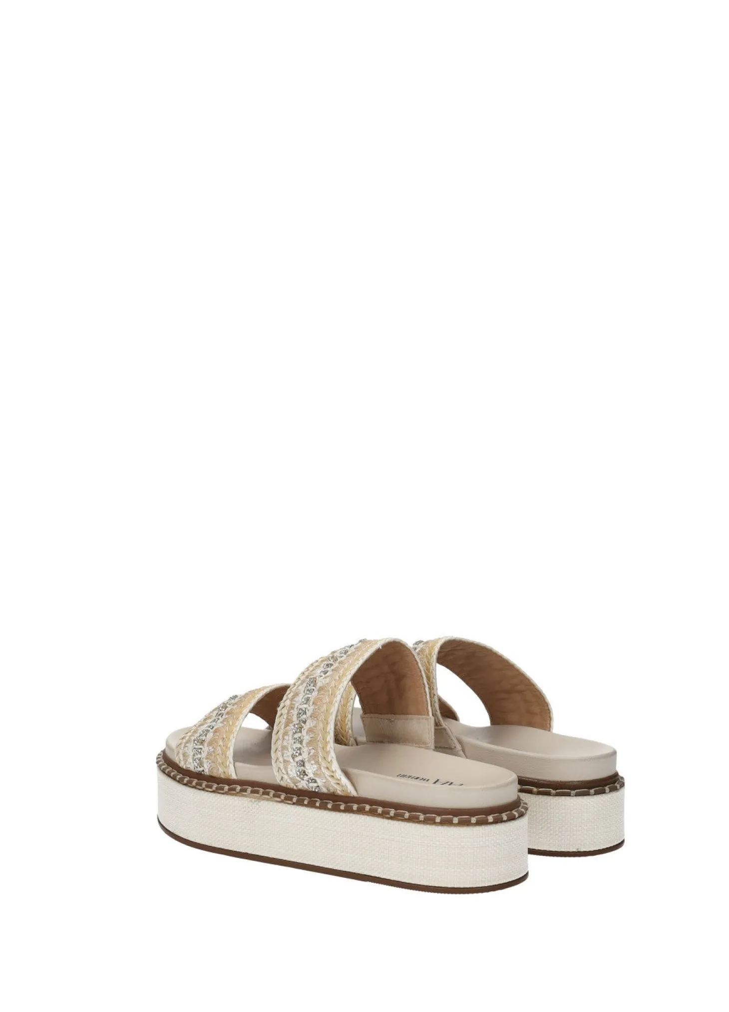 Sandali in rafia con tomaia ricamata e zeppa di 3.5 cm.