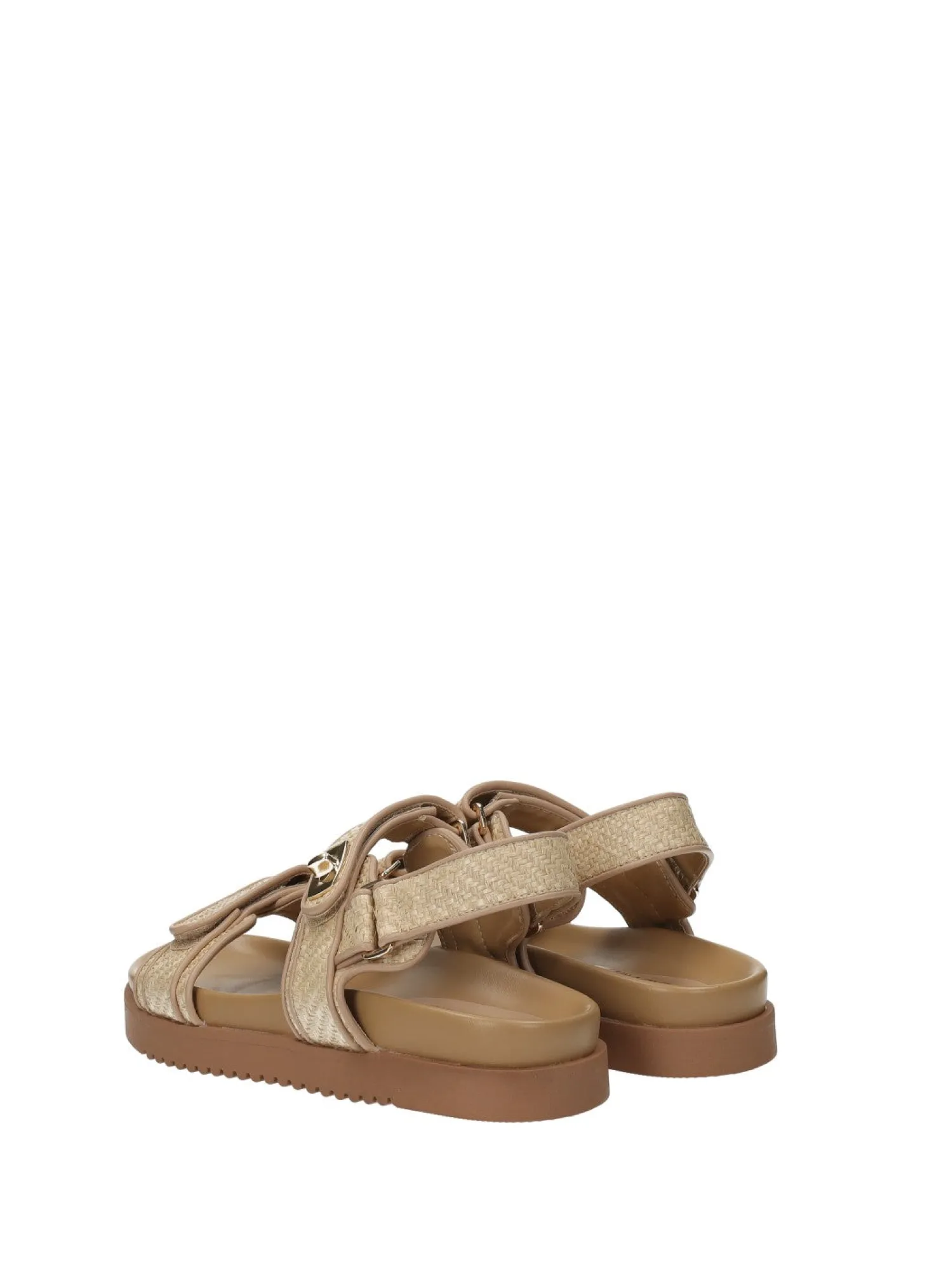 Sandali in rafia ed ecopelle con fondo in gomma.