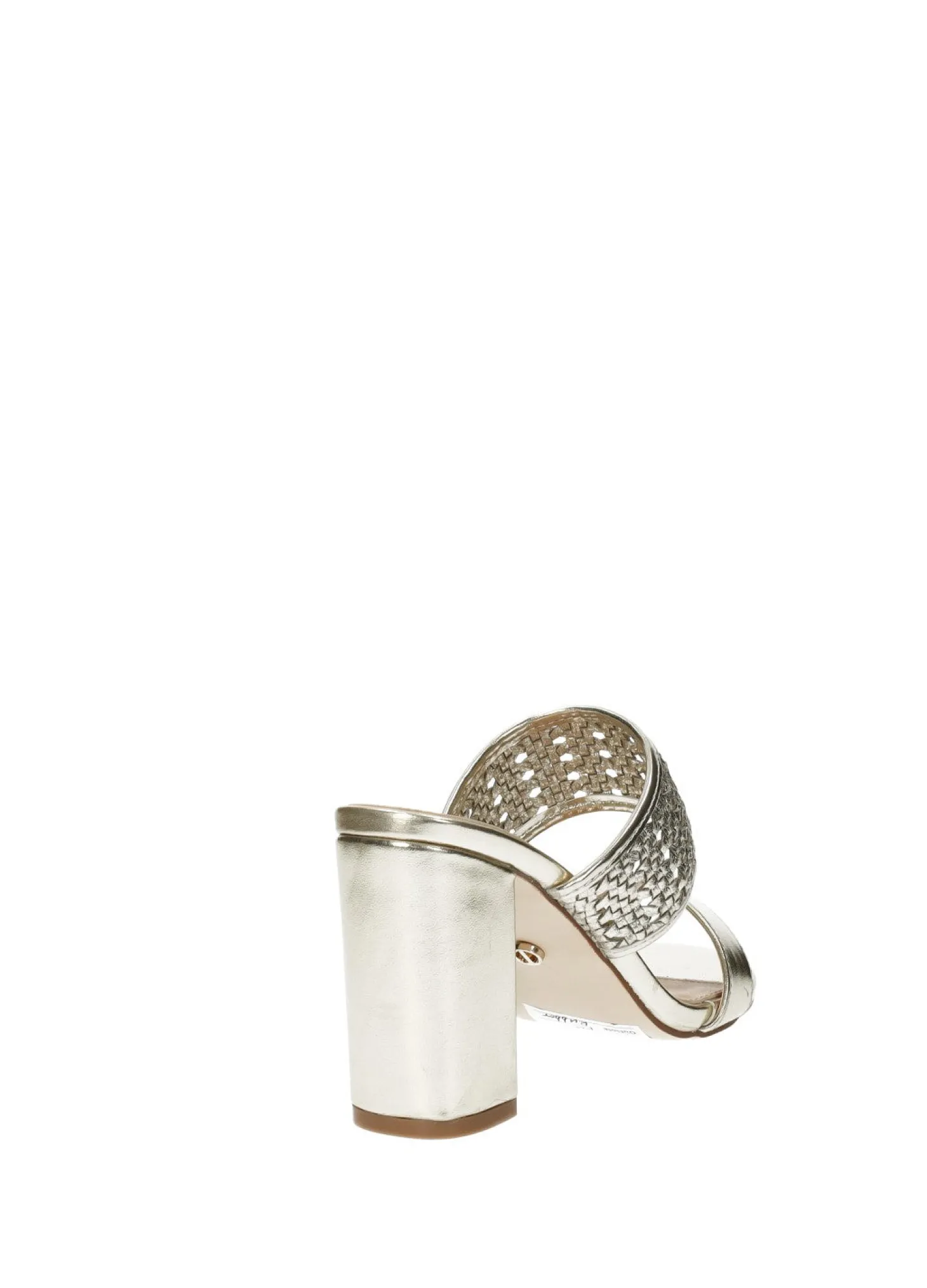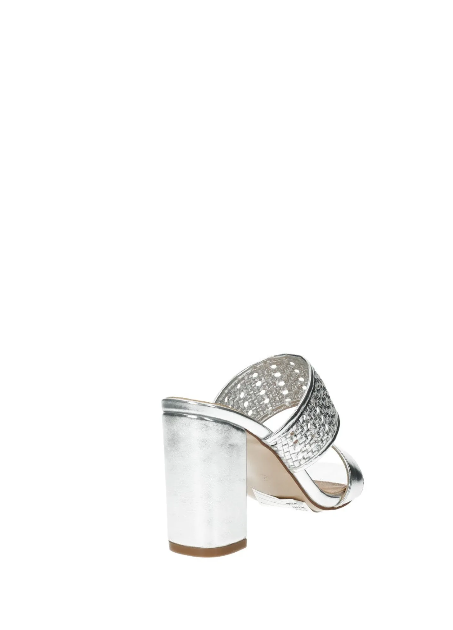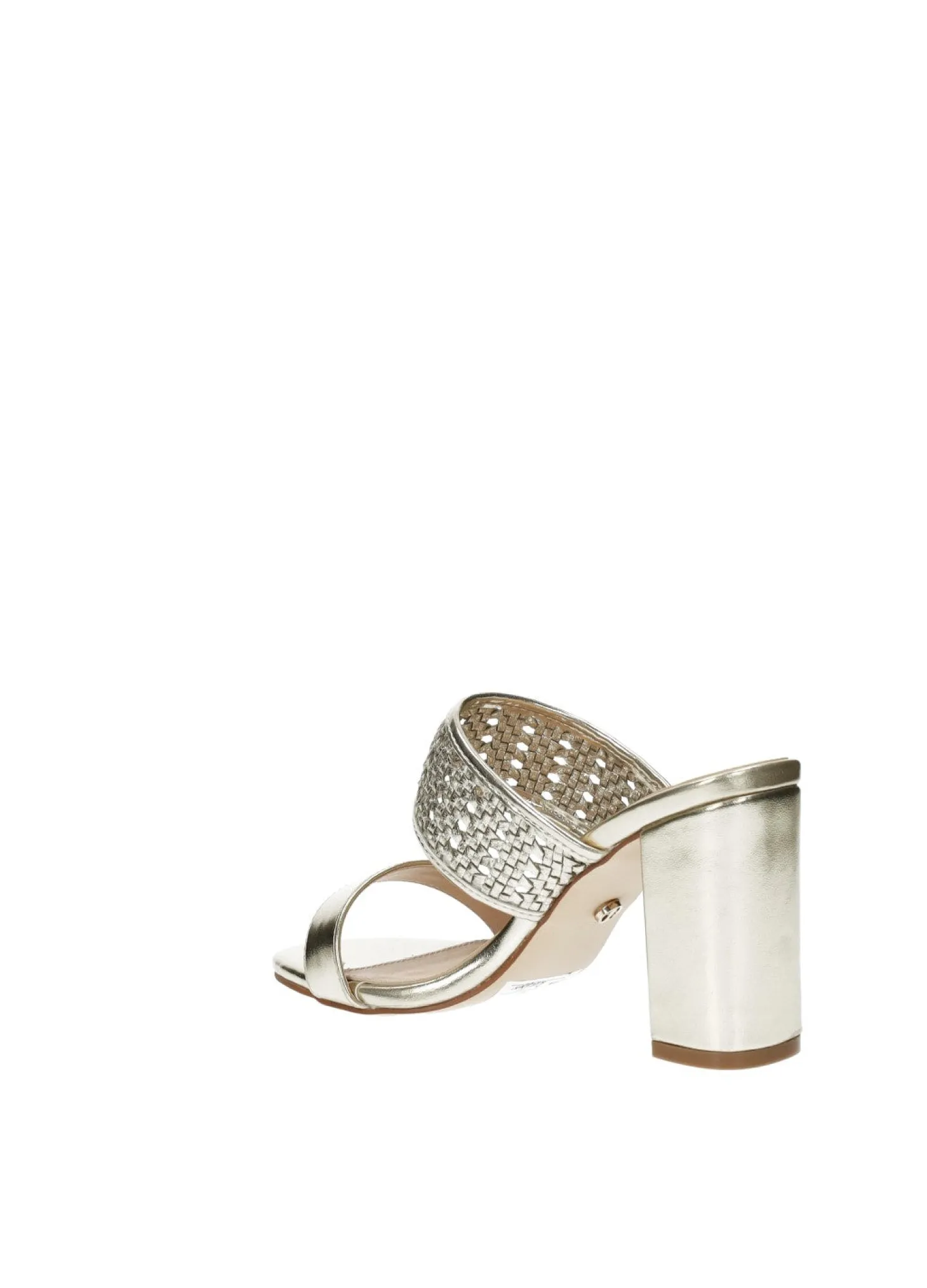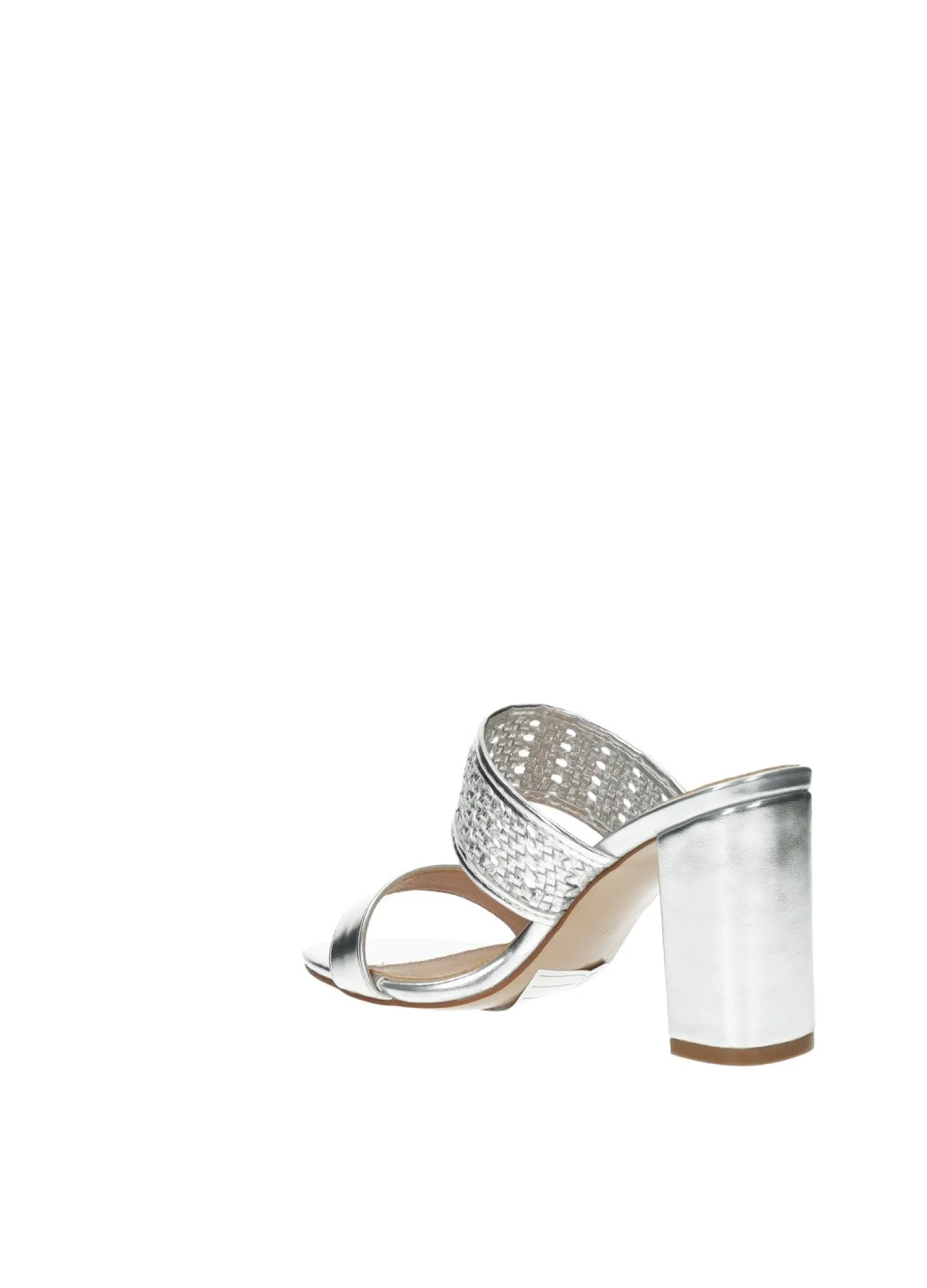 Sandali intrecciati laminati in ecopelle con tacco di 8.5 cm.