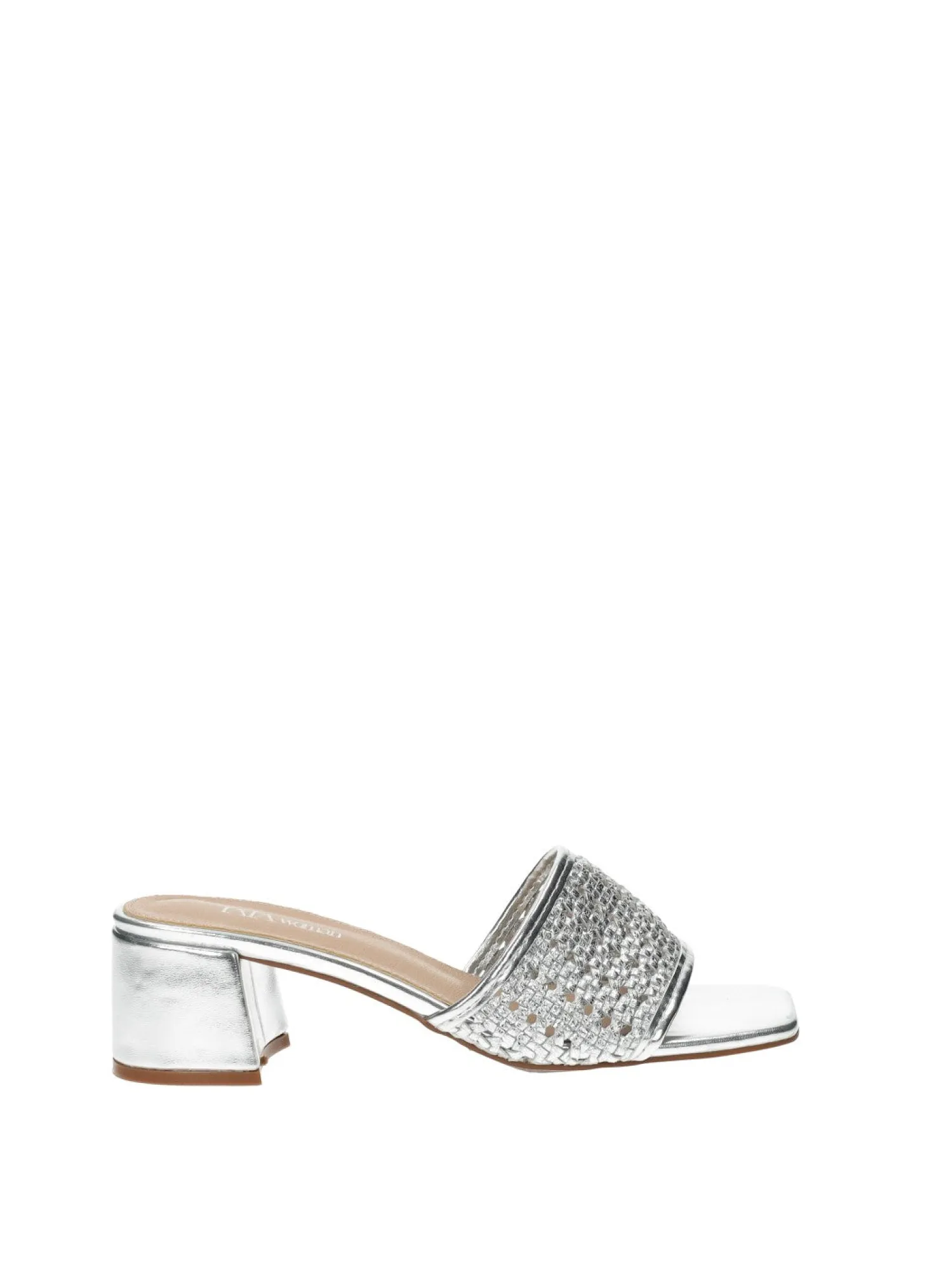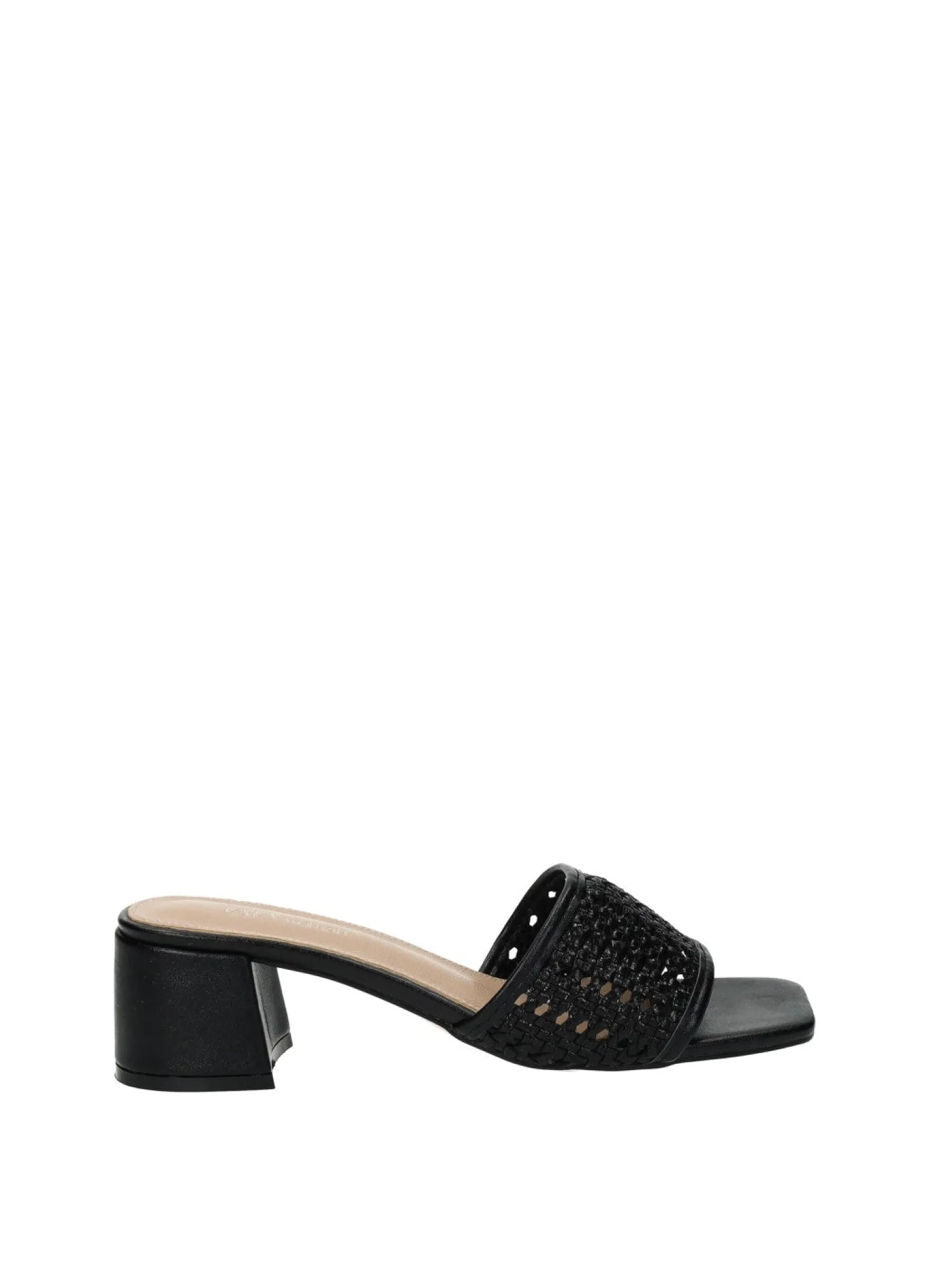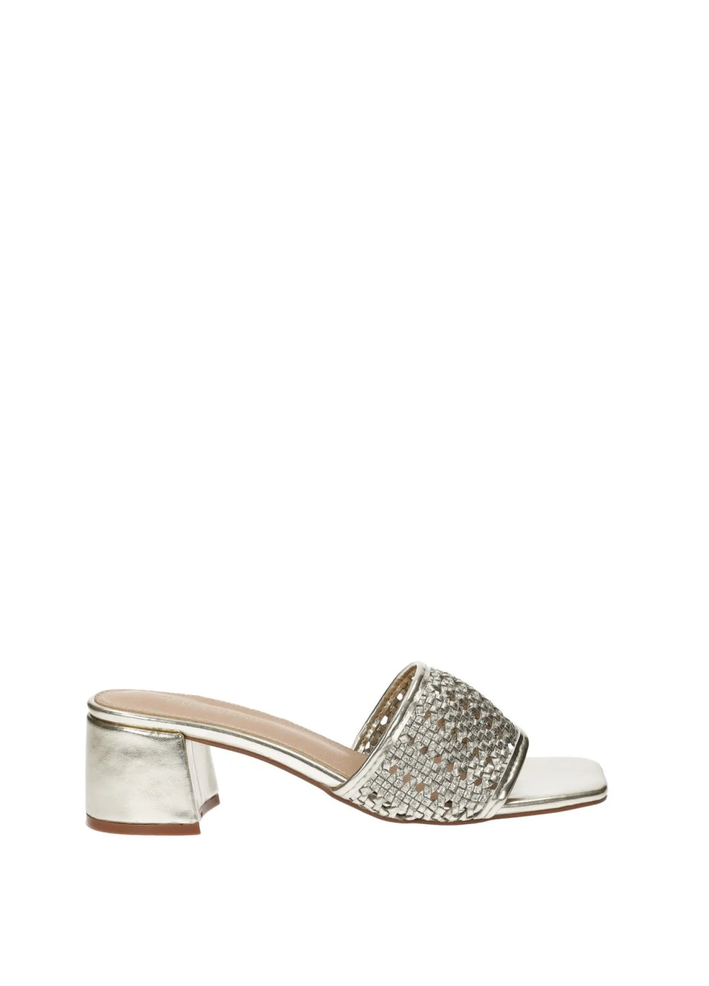 Sandali in ecopelle con tacco di 5 cm e trama ad intreccio.