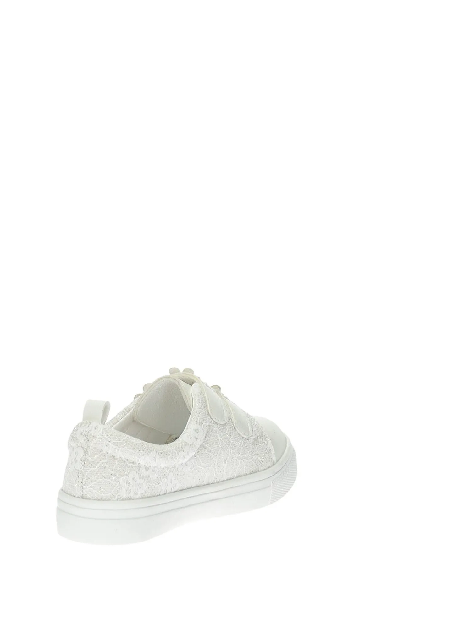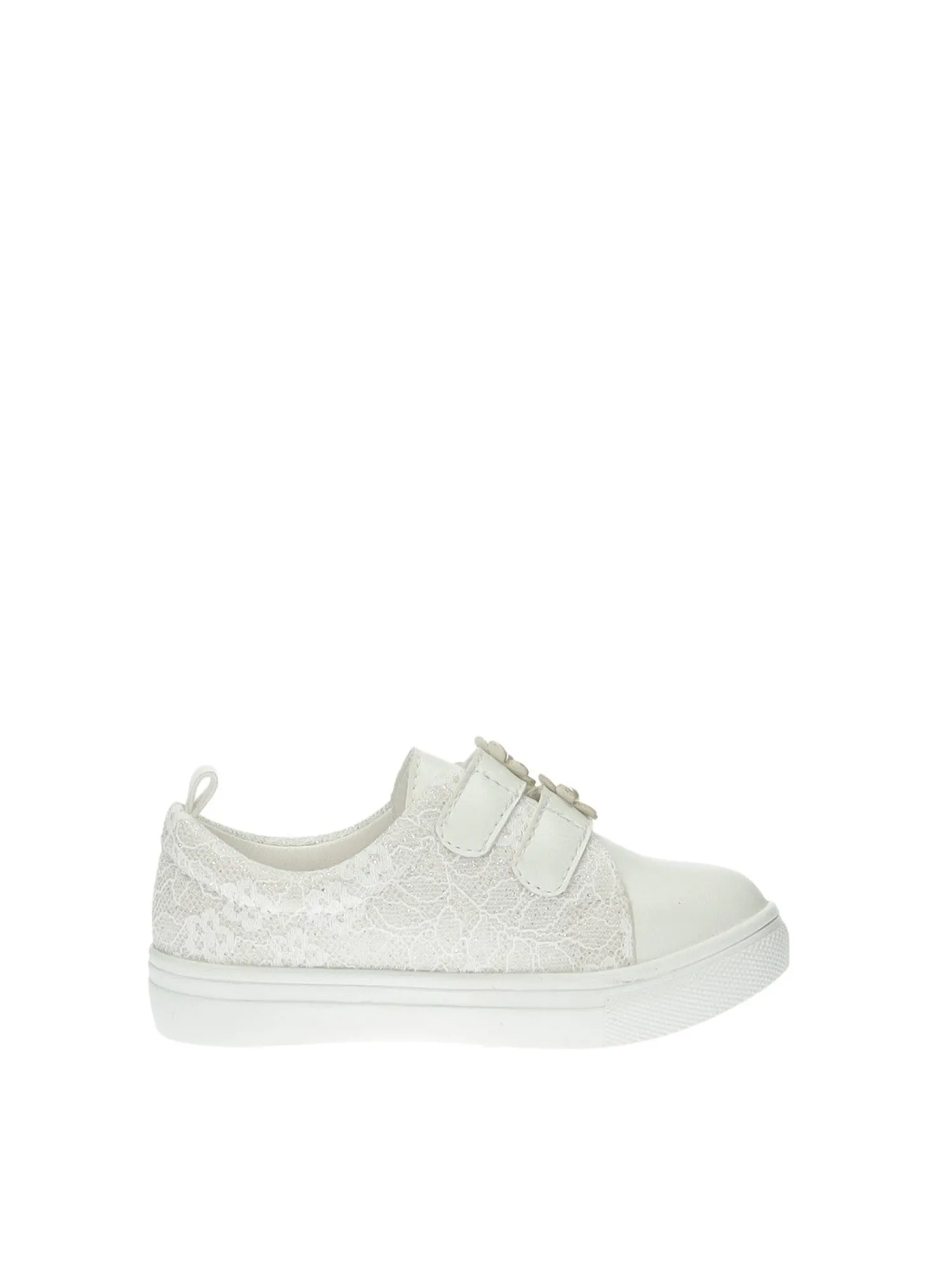 Sneakers effetto pelle e pizzo con fasce a strappo decorate.