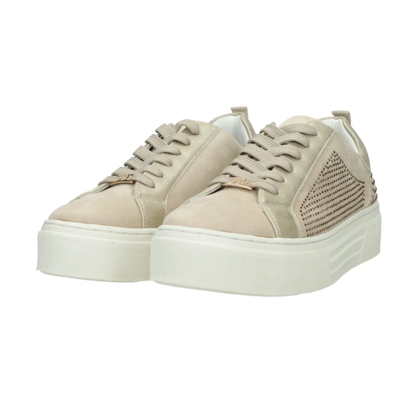 Sneakers modello platform.Tomaia completamente ricoperta da strass luminosi.Chiusura stringata.Sottopiede in memory.Tiretto posteriore.Altezza tacco: 5 cm Altezza plateau: 3 cm