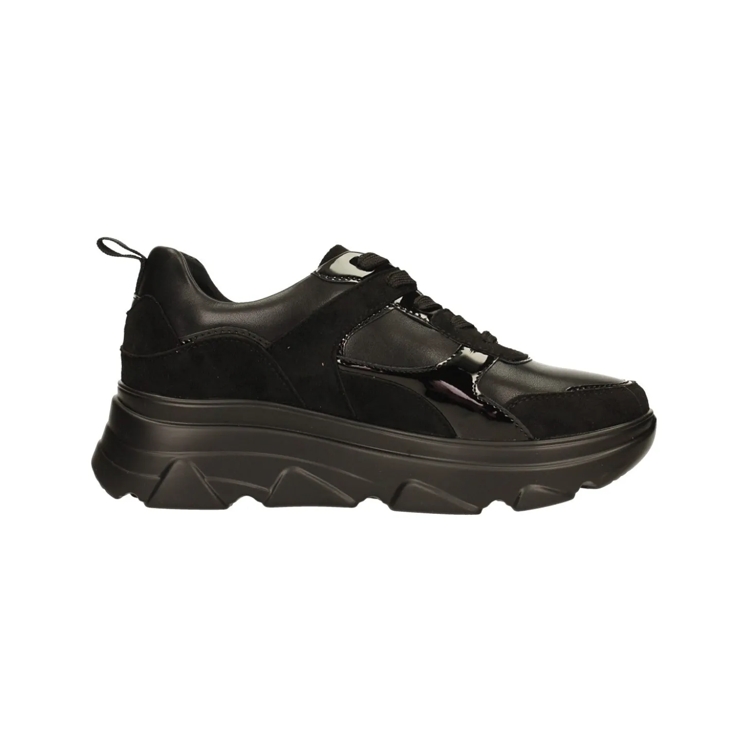 Sneakers con inserti in vernice e scamosciati.Sottopiede in vera pelleTacco alto 5cm