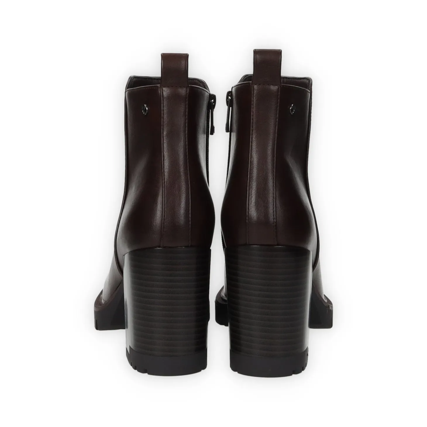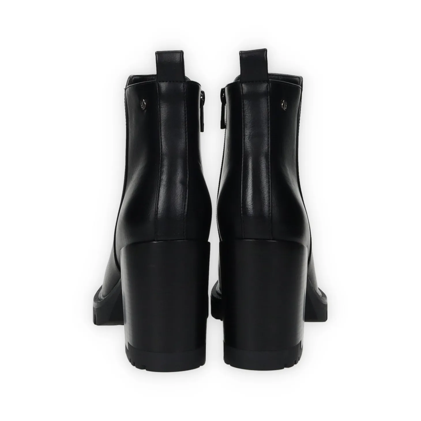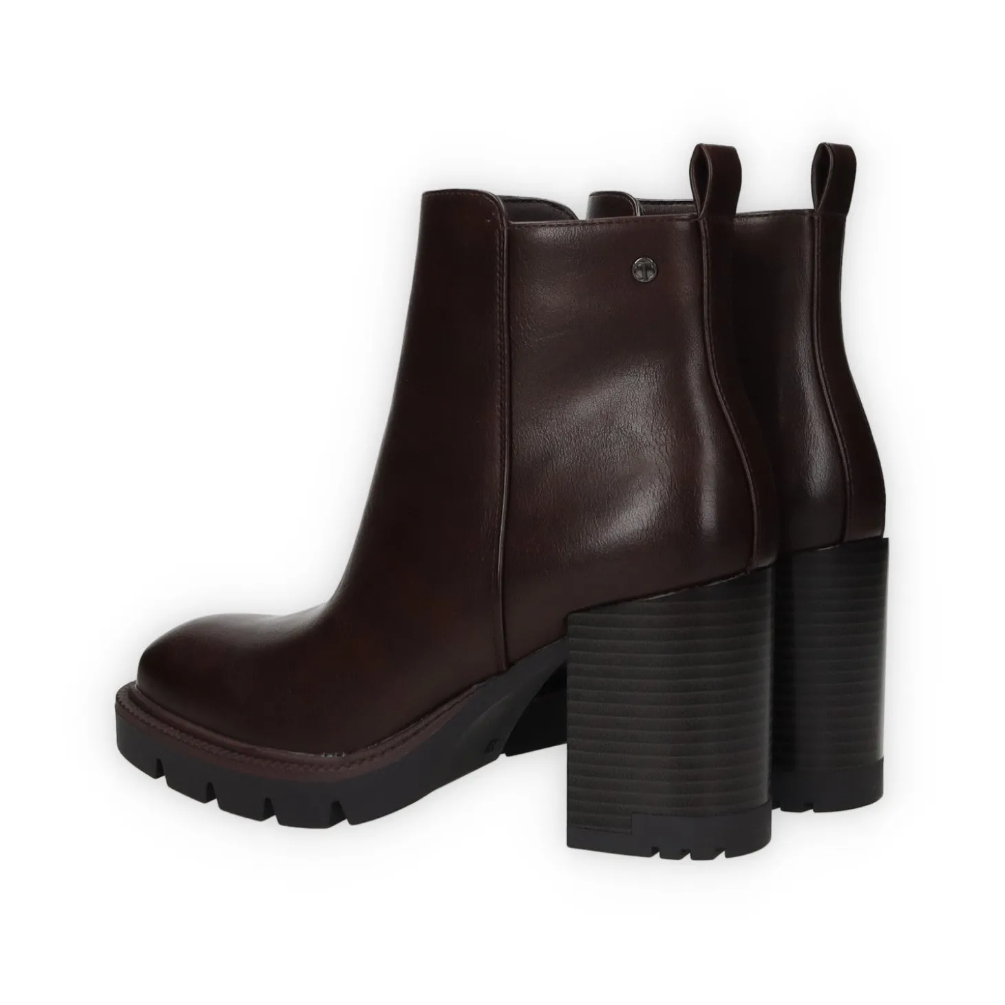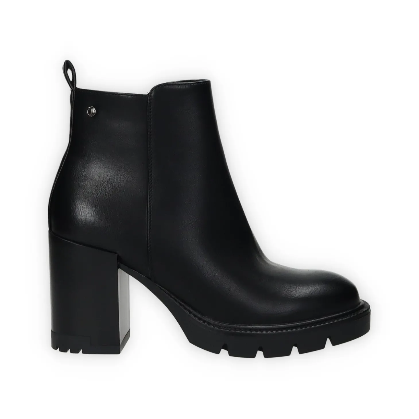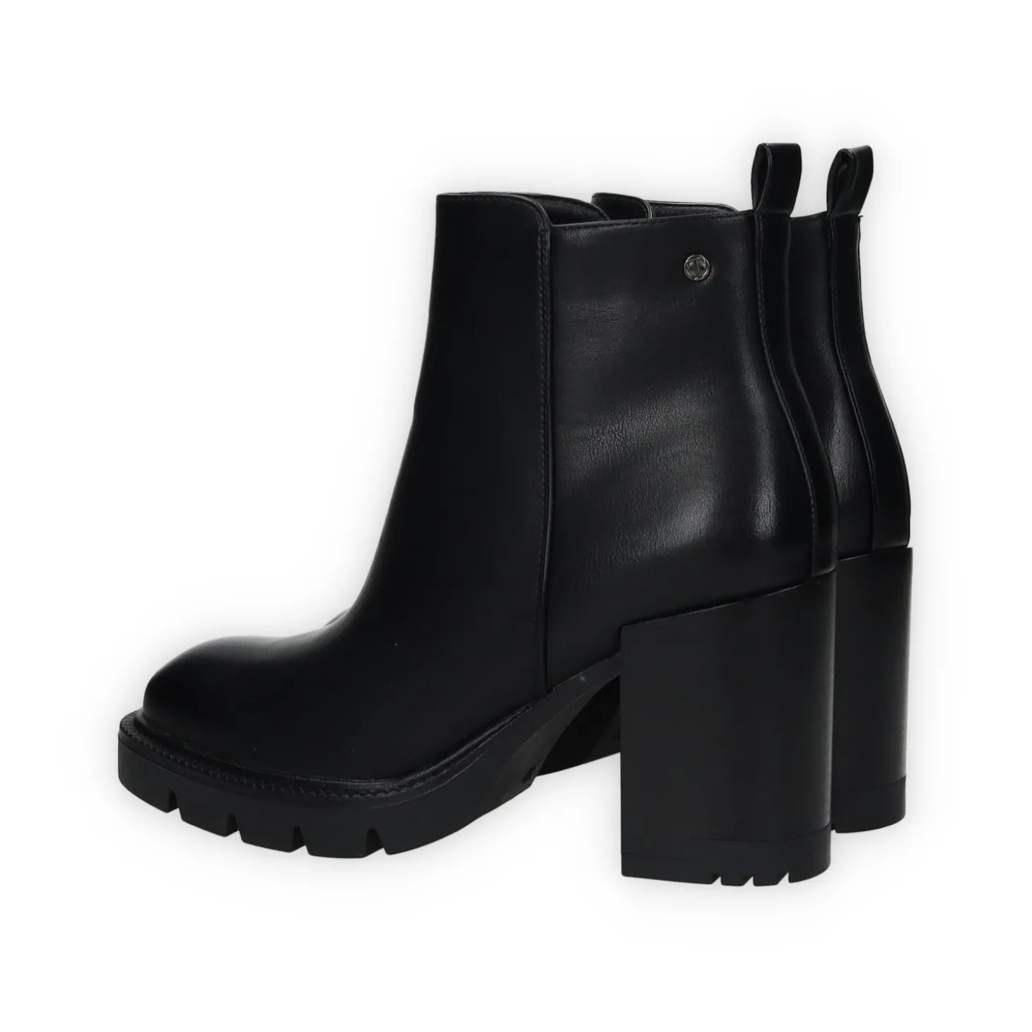 Stivaletti in ecopelle con tacco di 7 cm e tirante sul retro.
