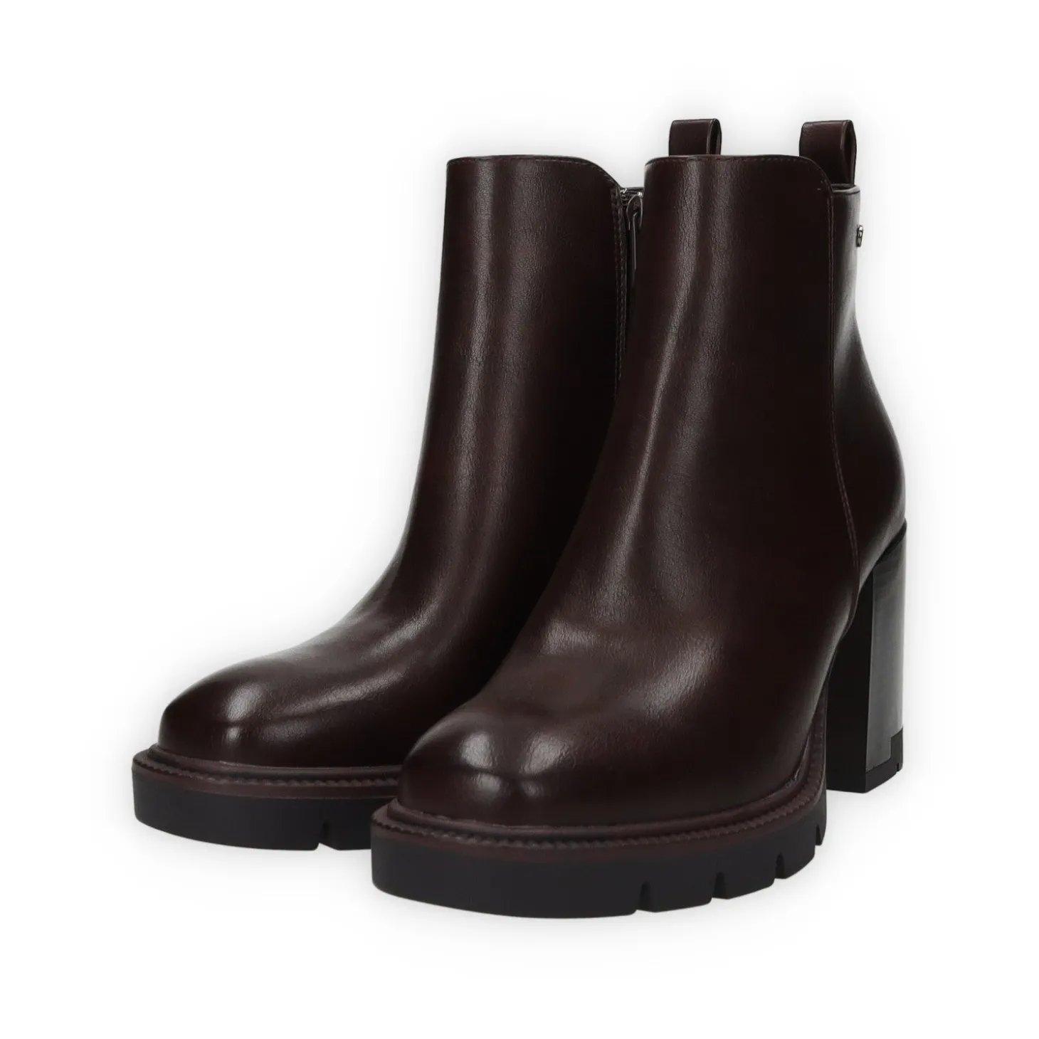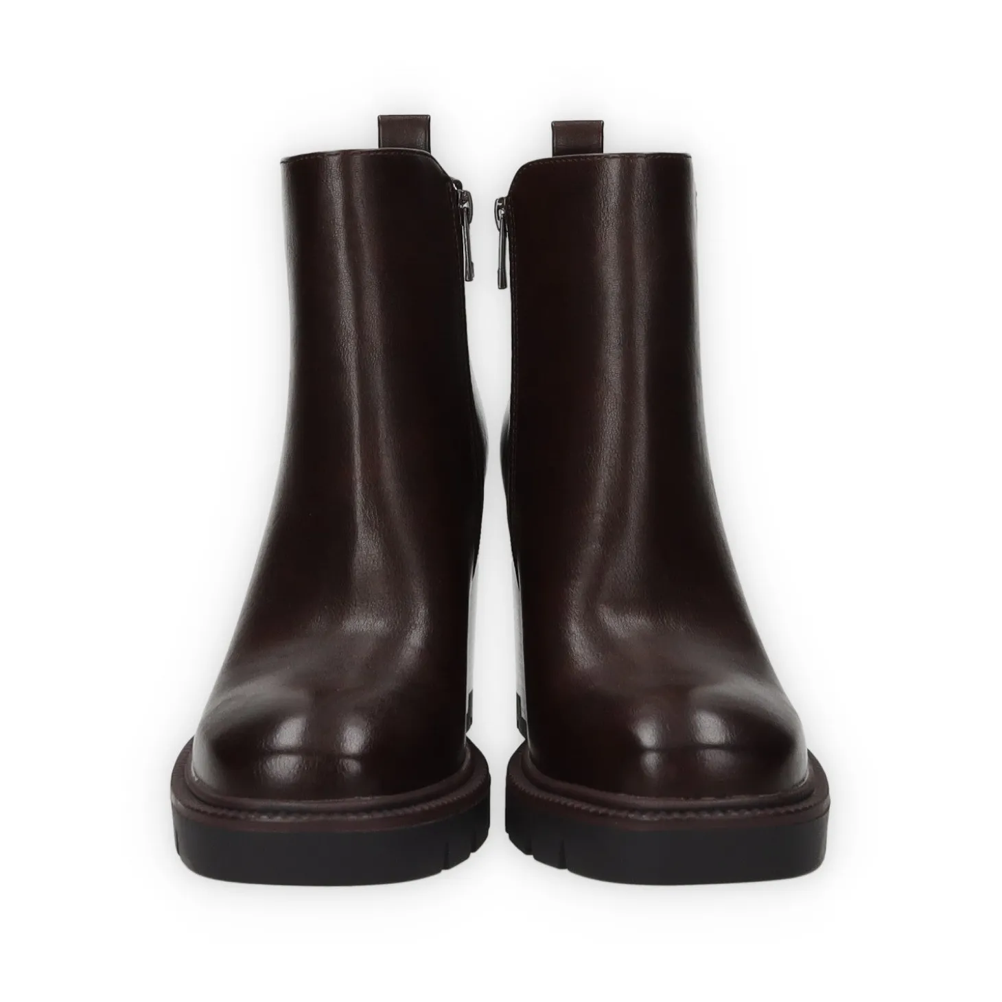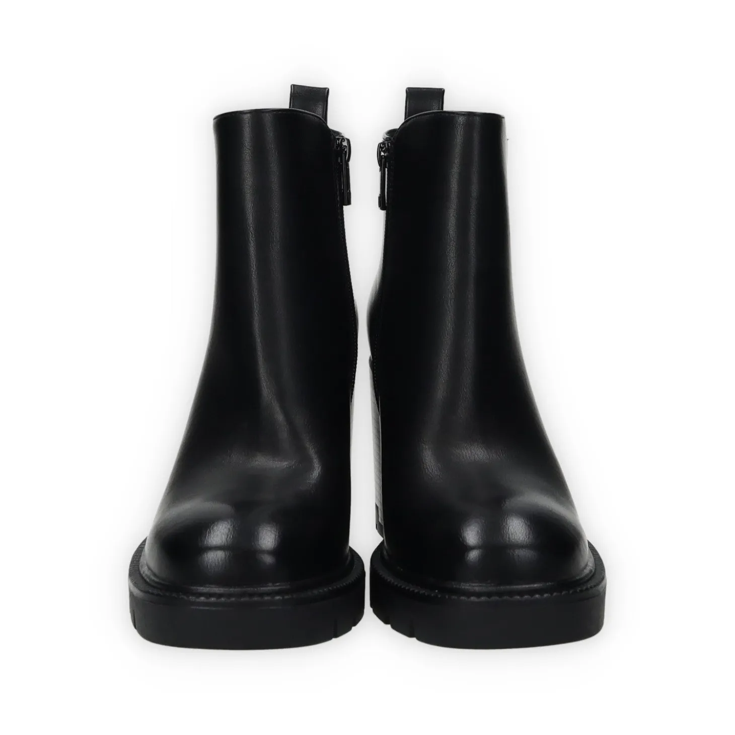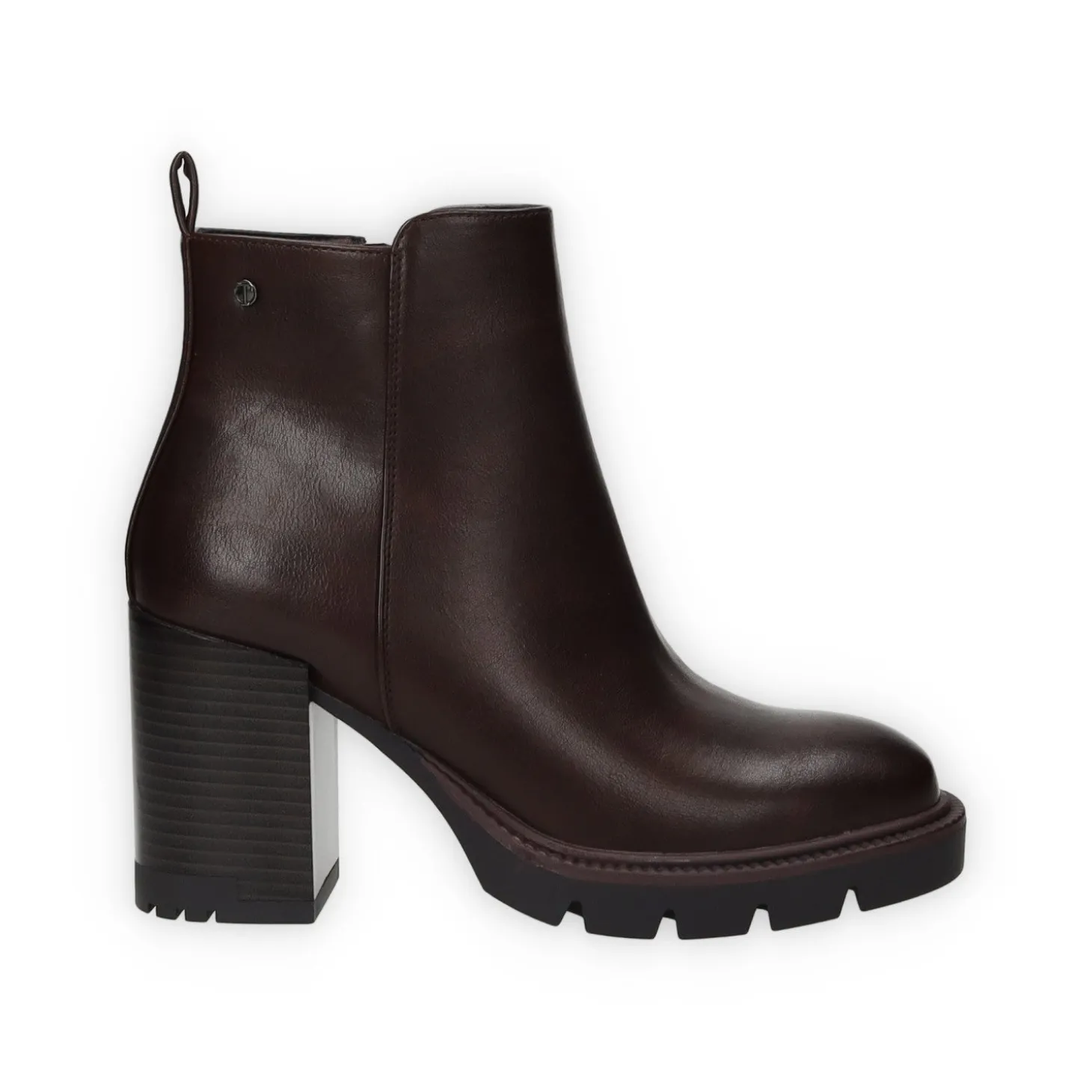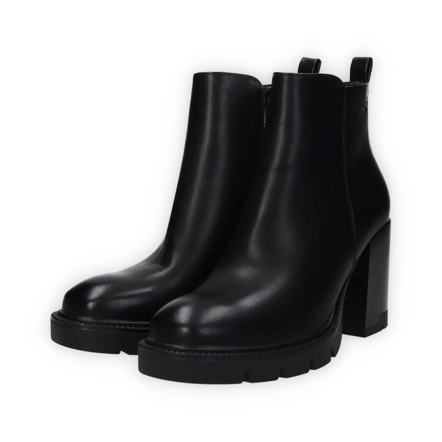 Stivaletti in ecopelle con tacco di 7 cm e tirante sul retro.