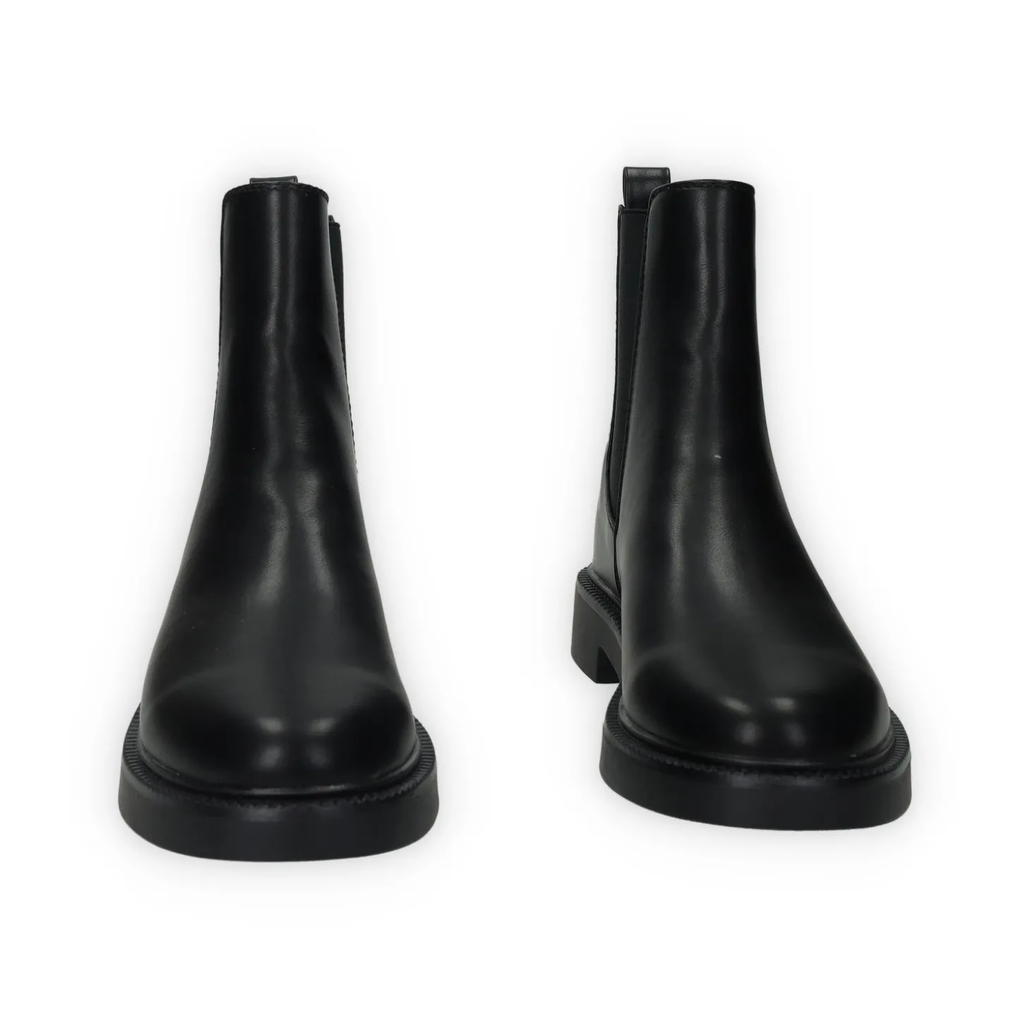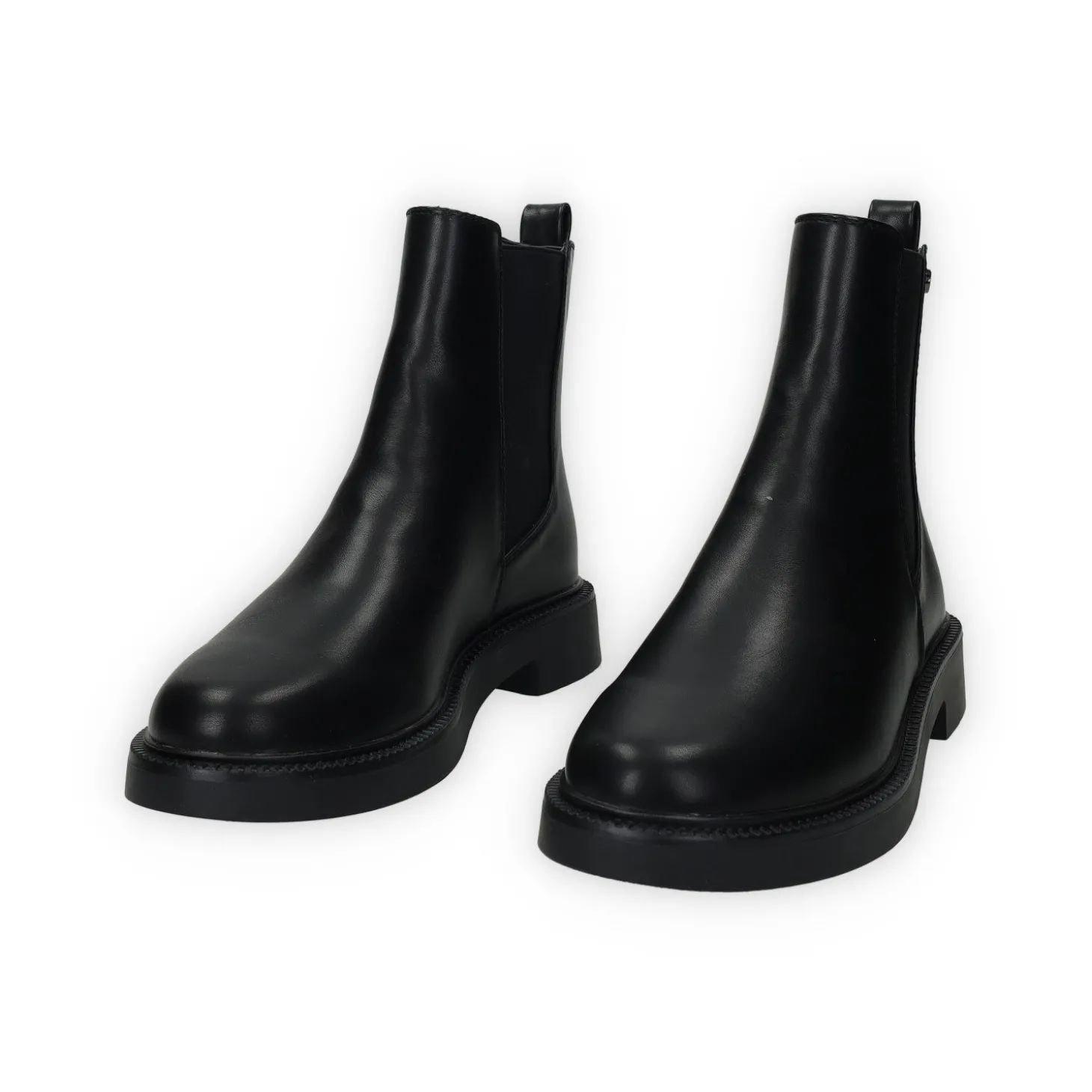 Stivaletti in ecopelle con fasce laterali elasticizzate e tacco di 2.5 cm.