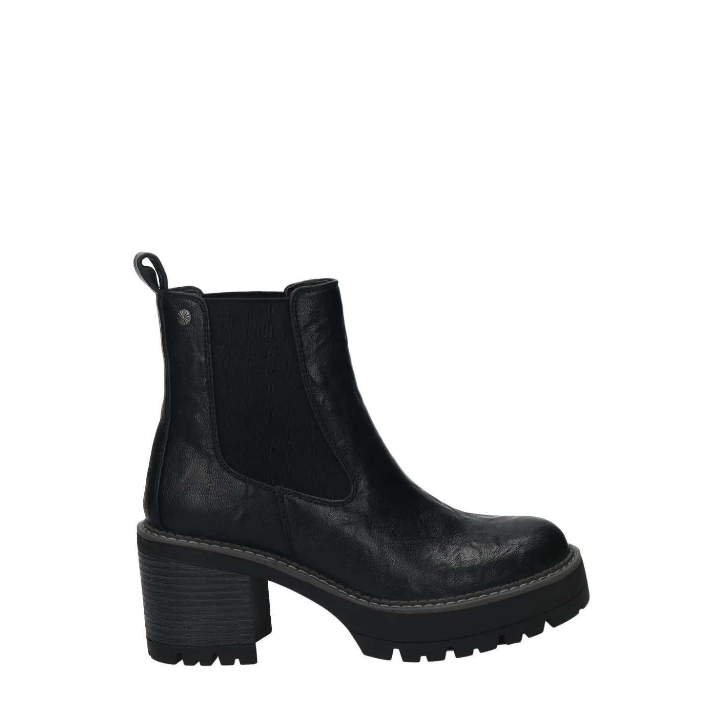 Stivaletti in ecopelle con fasce elasticizzate laterali e tirante sul retro.