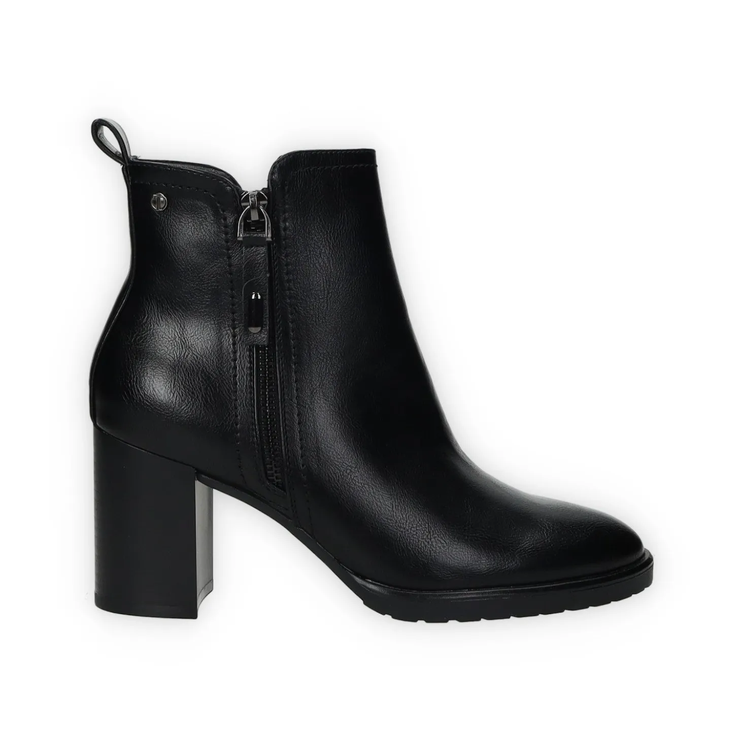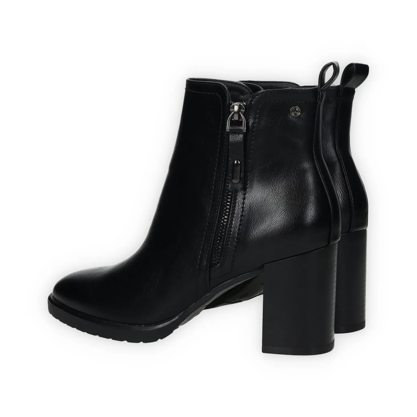 Stivaletti in ecopelle con tacco di 6 cm e tirante sul retro.