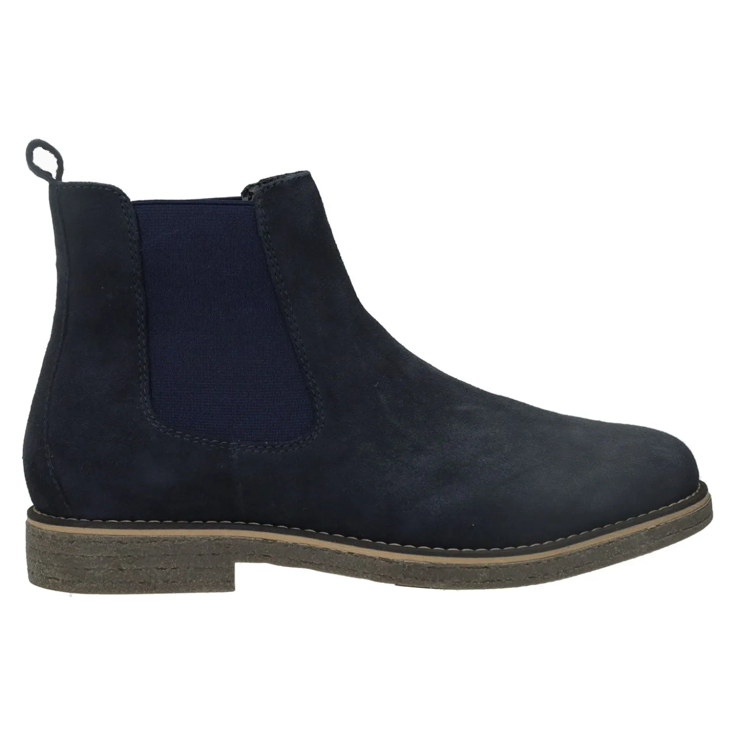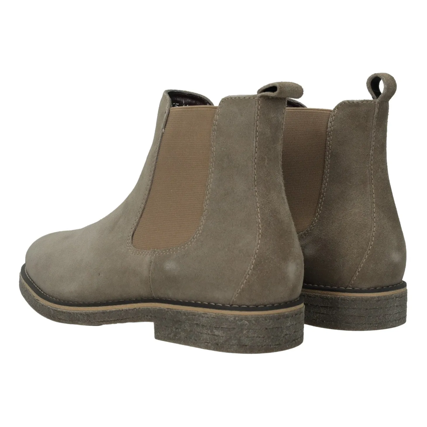 Stivali modello chelsea con tiretto posteriore per facilitare l’inserimento del piede.Fascia elasticizzata laterale.Impunture a vista.