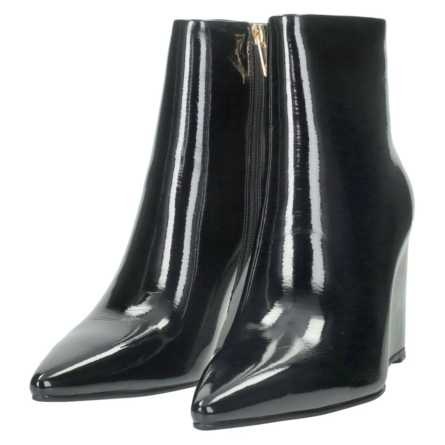 Gli stivaletti presentano una vestibilità morbida e flessibile. Sfoggiano tacchi con zeppa e una silhouette con punta affusolata.Chiusura con cerniera.Altezza gambale: 17cmCirconferenza gambale: 26cmAltezza tacco: 9cm