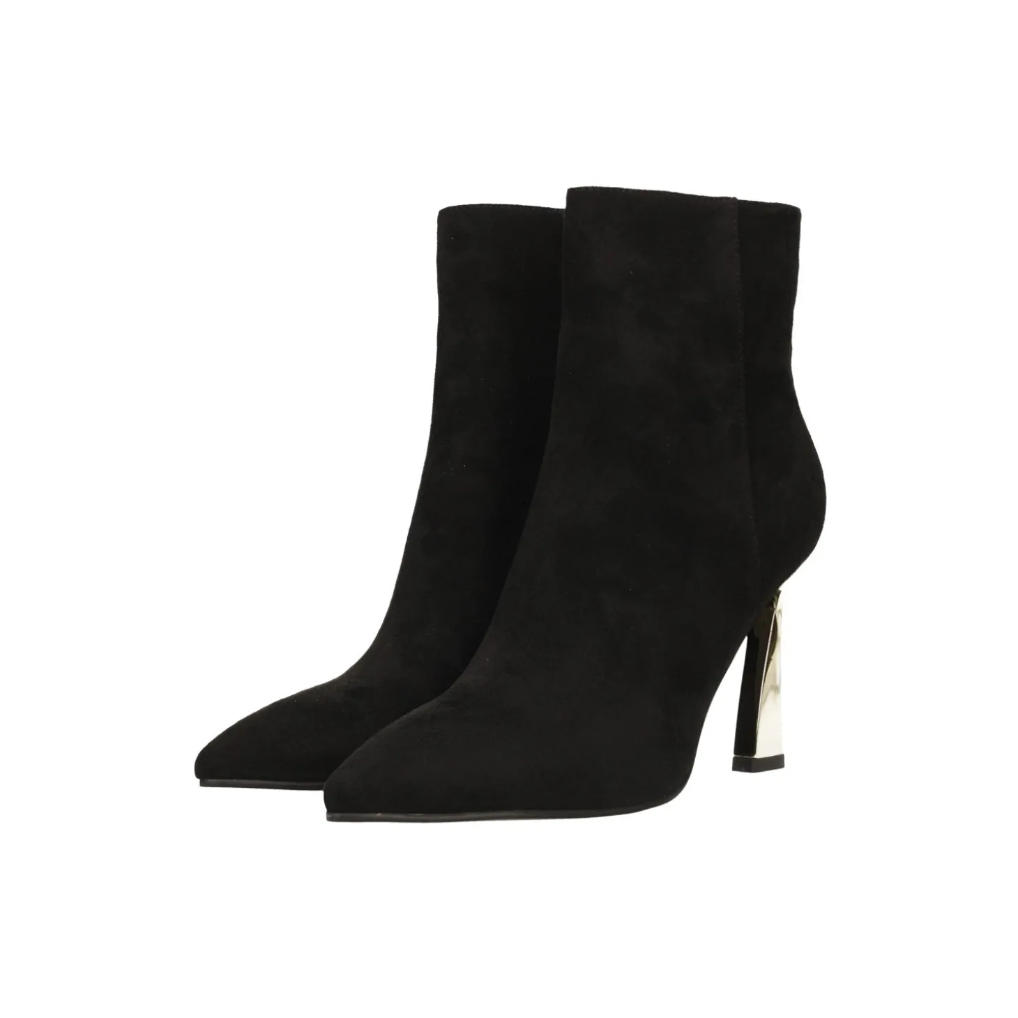 Stivaletti a punta in microfibra.Zip laterale interna.Altezza gambale: 16cmCirconferenza gambale: 29cm Tacco a rocchetto alto 10cm