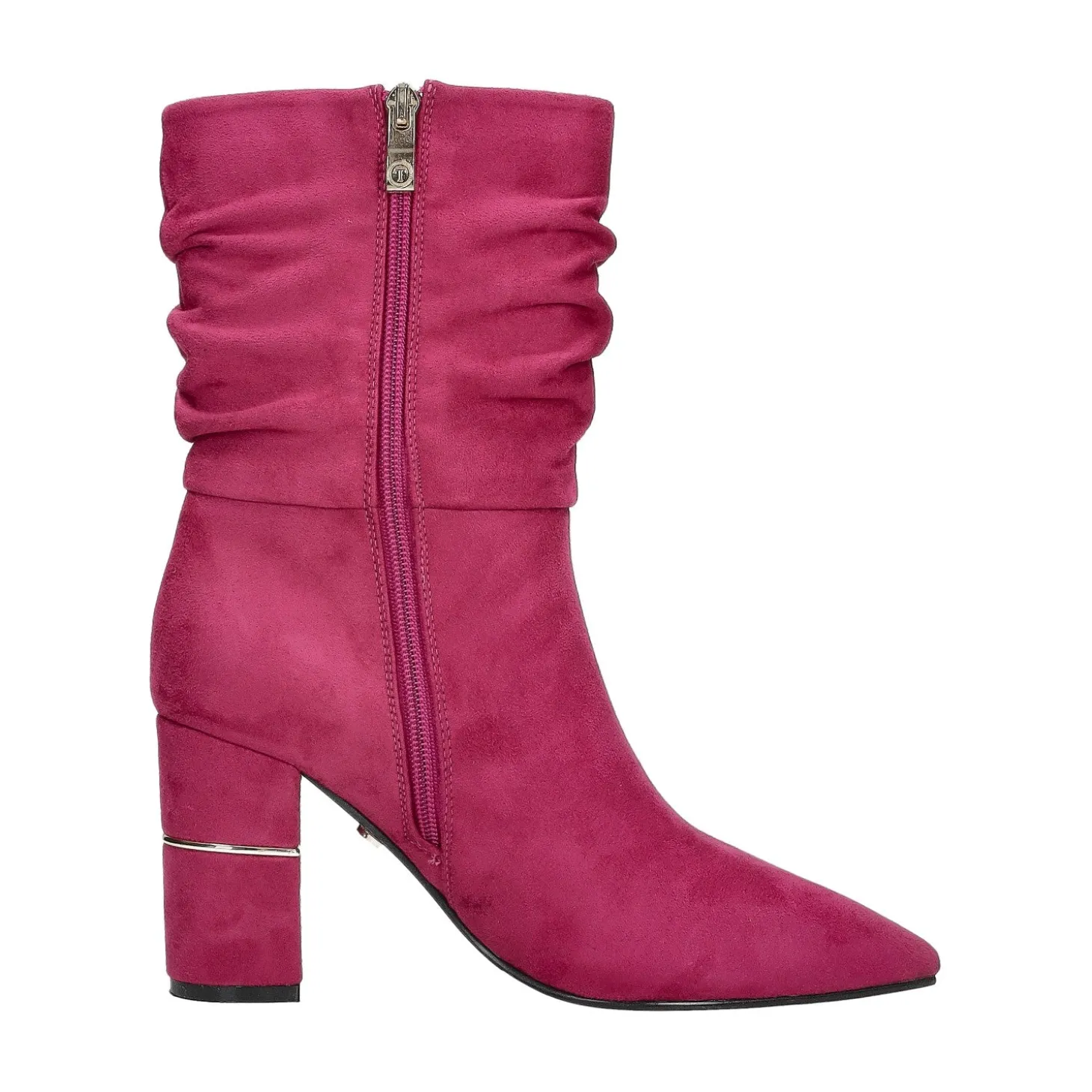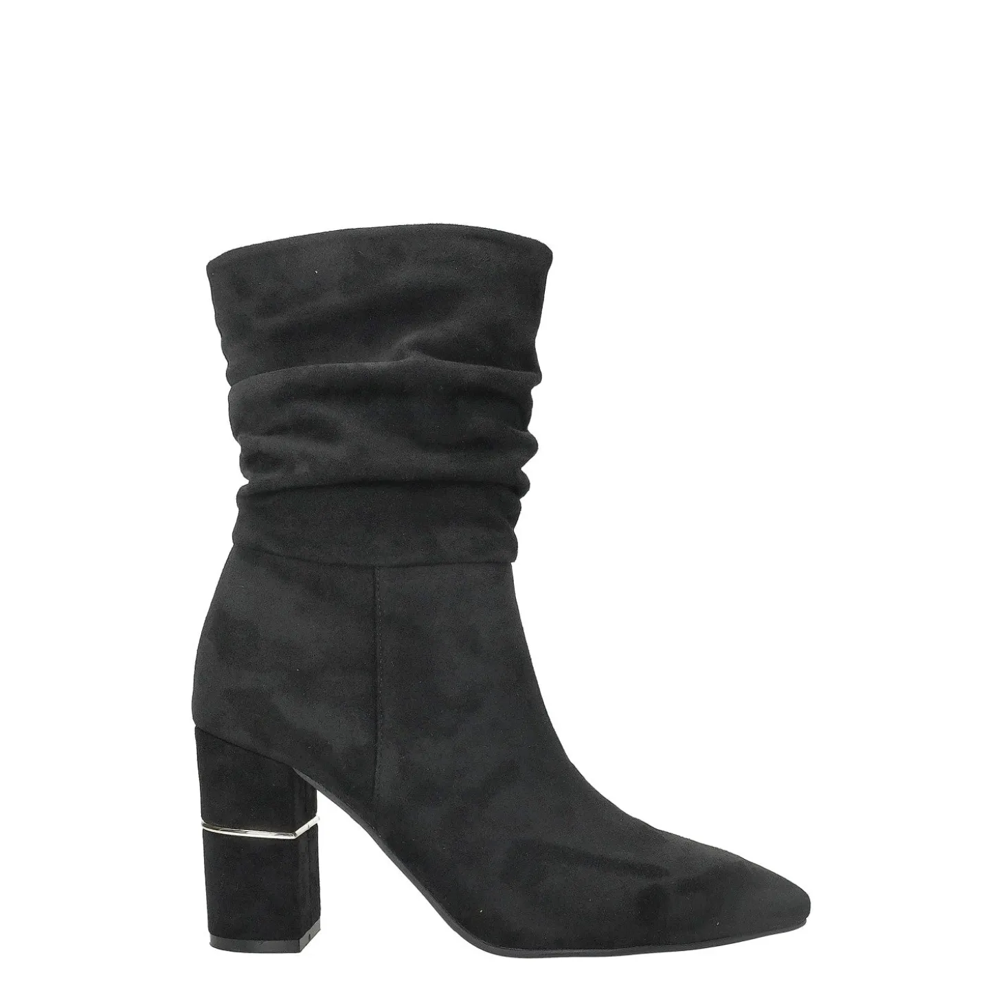 Stivaletti con struttura morbida che si raccoglie sulle caviglie. punte affusolate e tacchi doppi.Chiusura con zip laterale.Dettaglio metallizzato sul tacco.Altezza gambale: 23cmCirconferenza gambale: 32cmAltezza tacco: 9cm