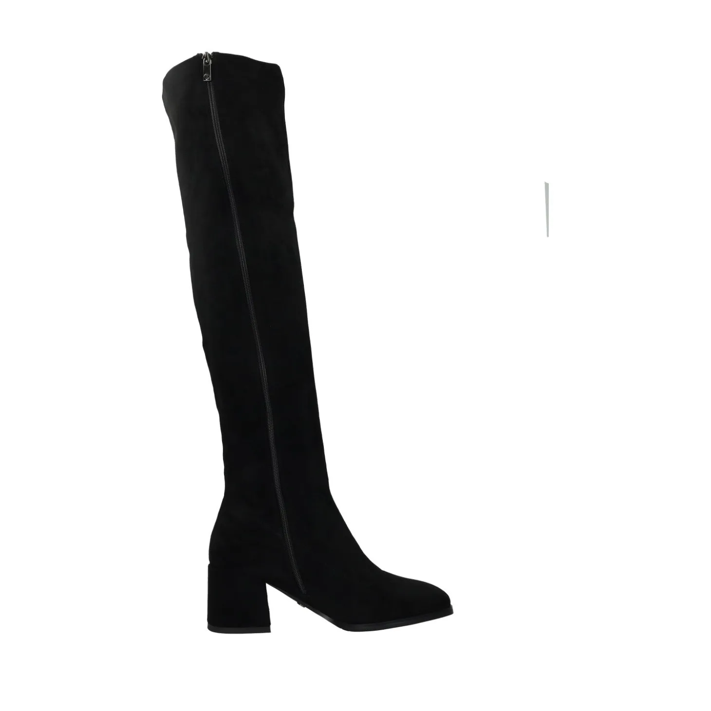 Gli stivali scamosciati non possono mancare nel guardaroba di una cool girl. Chiusura con zip e tacco chunky.Altezza gambale: 54cmCirconferenza gambale: 39cmAltezza tacco: 6cm