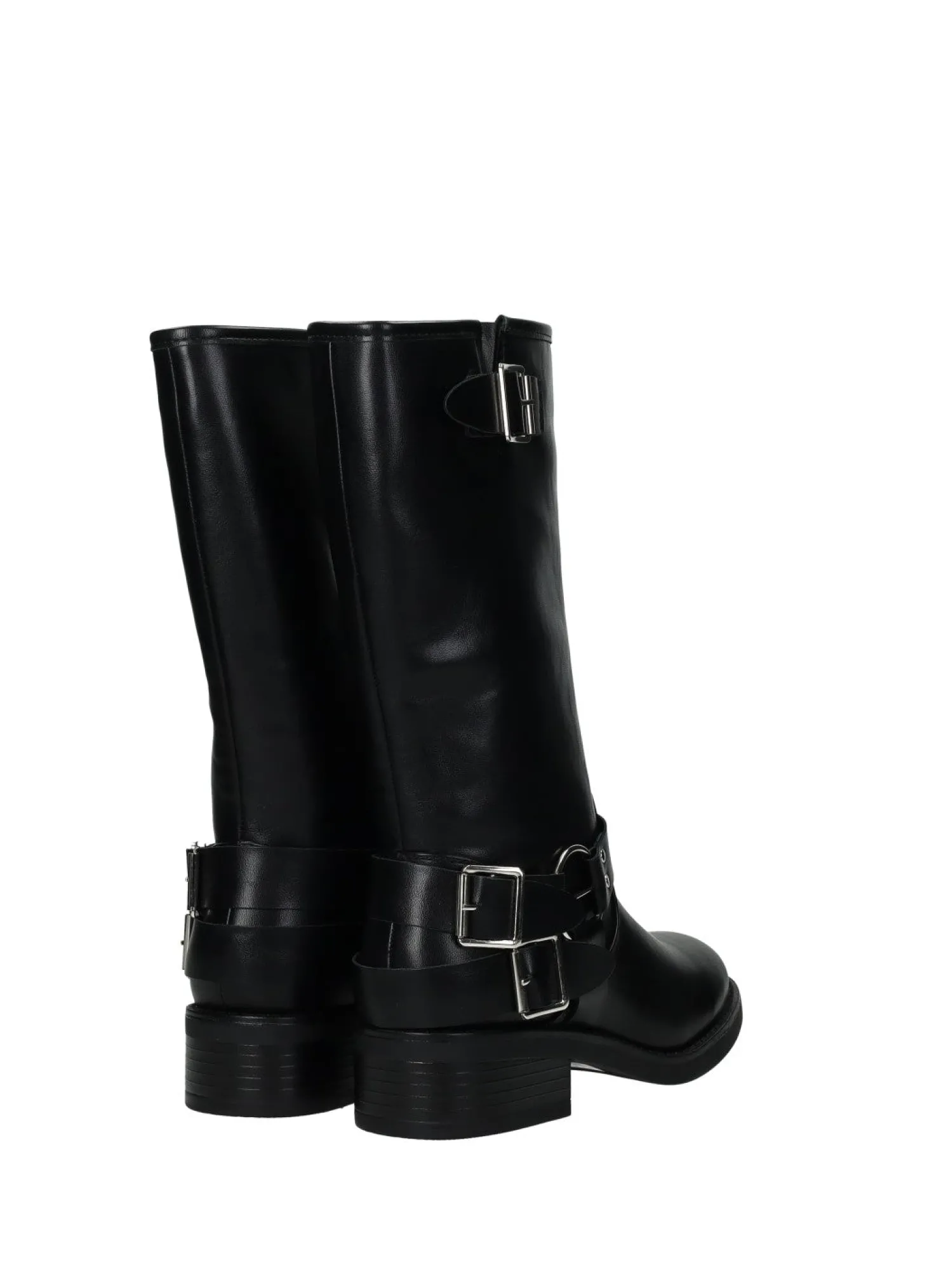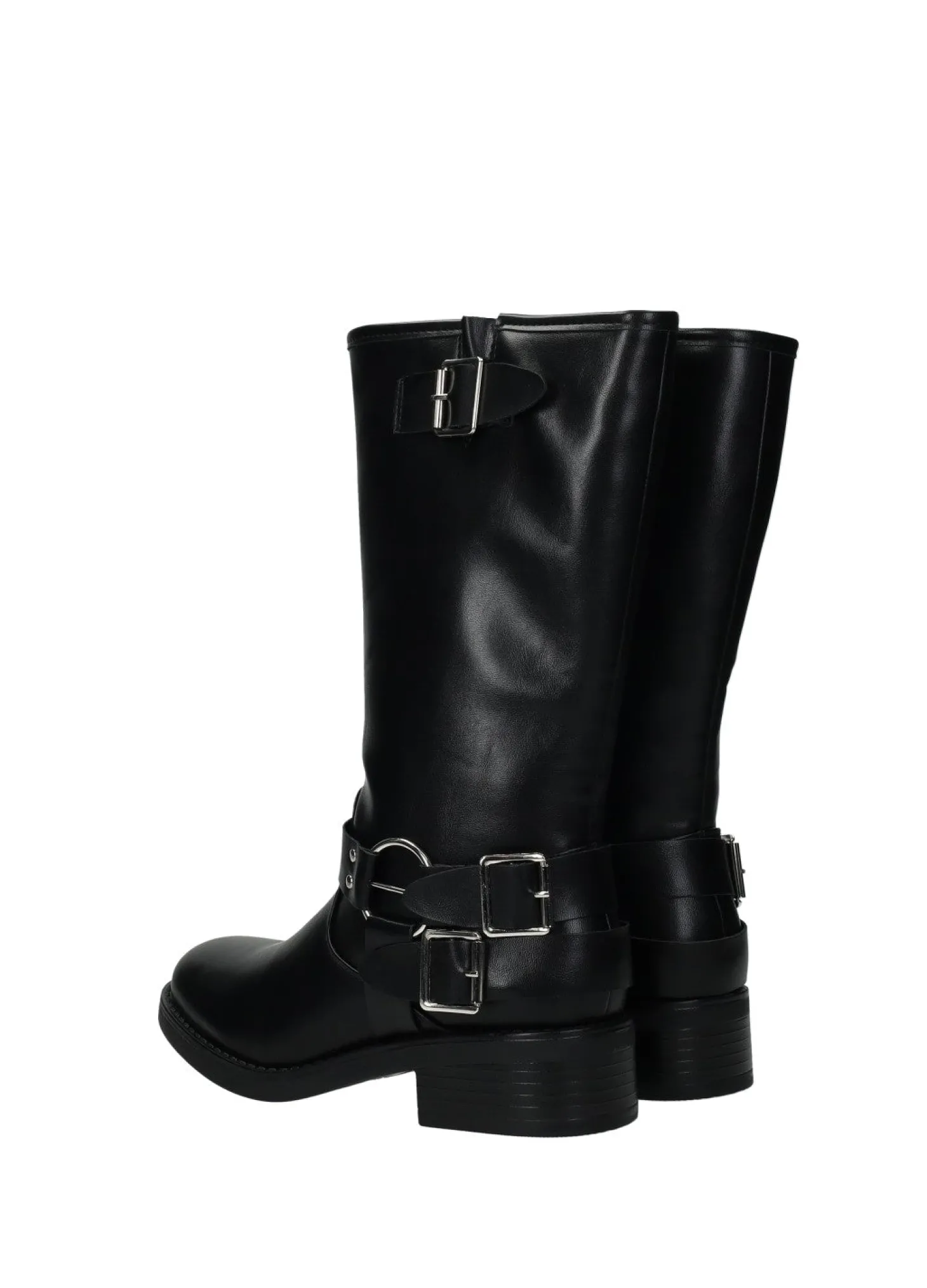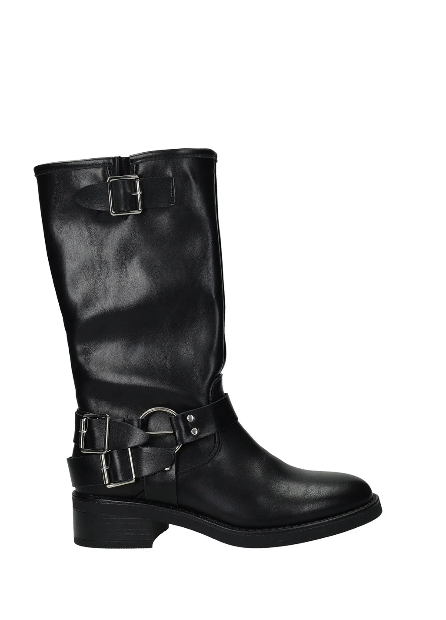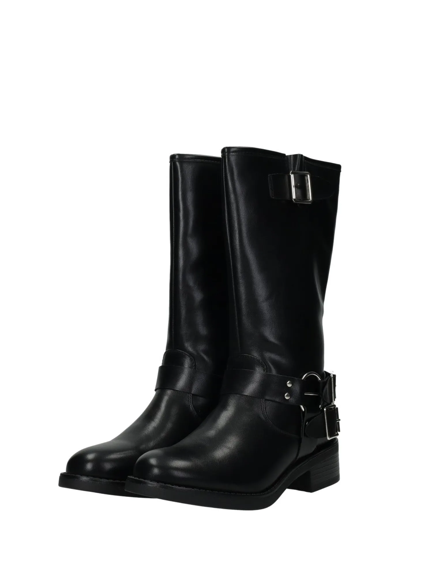 Stivali donna con fibbia laterale decorativa e gambale strutturato. La finitura effetto pelle e la suola antiscivolo rendono questo modello elegante ma pratico per tutti i giorni. La fibbia aggiunge un tocco grintoso che dona carattere ad ogni outfit. Perfetti con jeans e maxi cappotti. Tacco: 4 cm. Codice prodotto:MXL-002