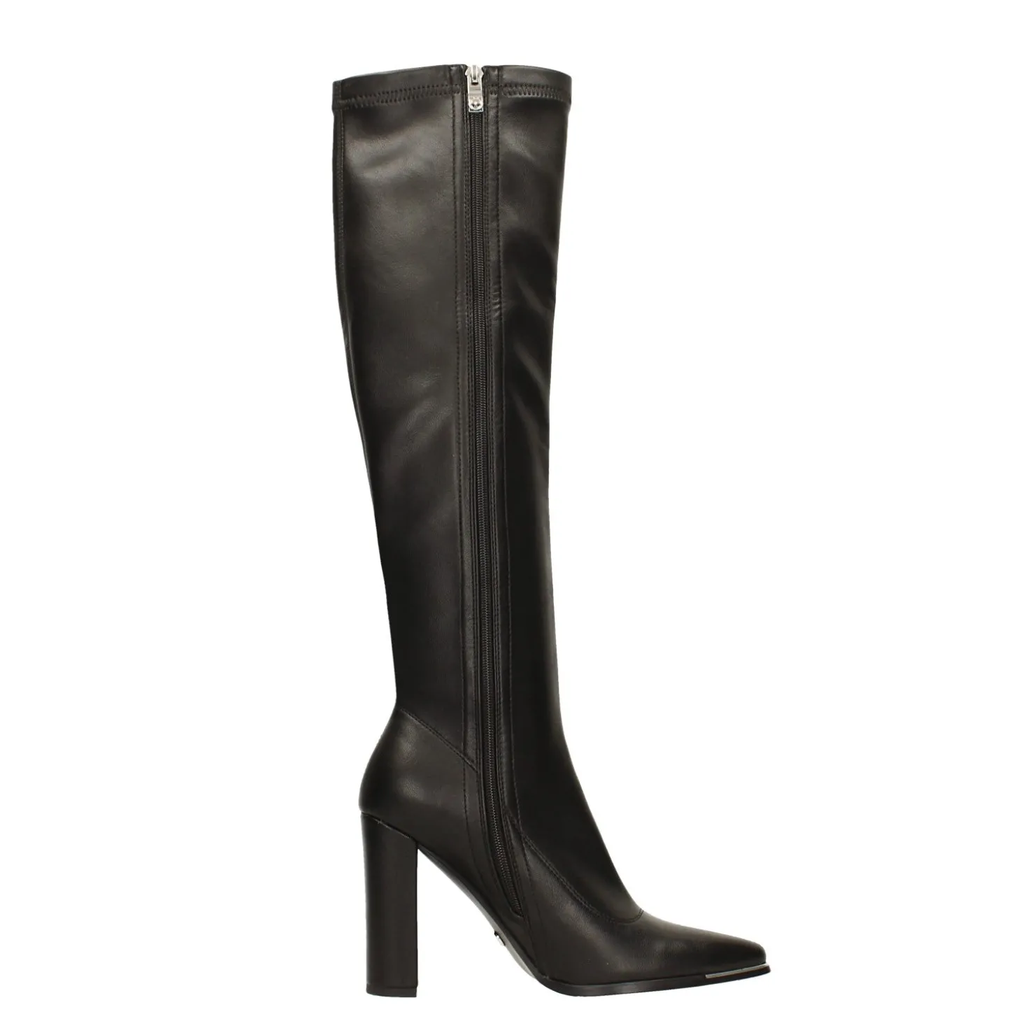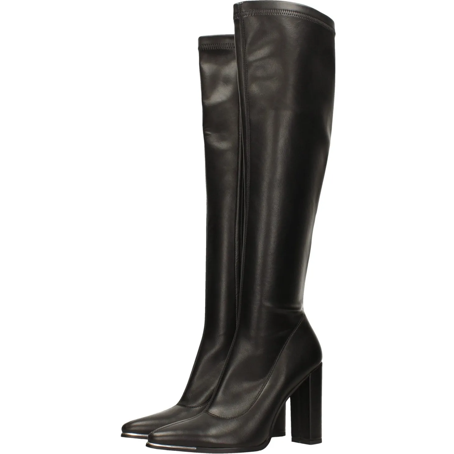 Stivali con profilo cromato in punta. Tacco alto 10cm