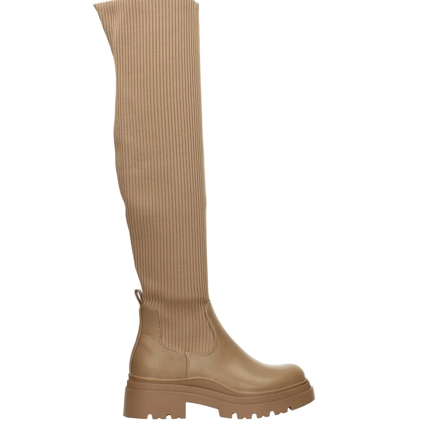 Stivali marroni con tomaia in tessuto elasticizzato. Tacco alto 5cm